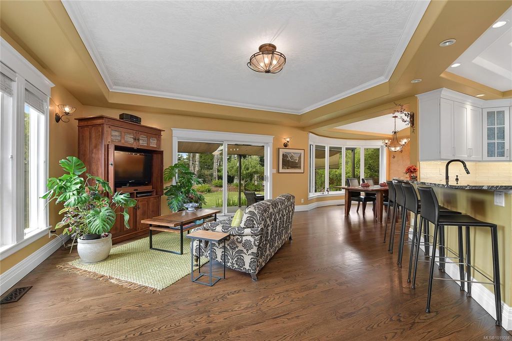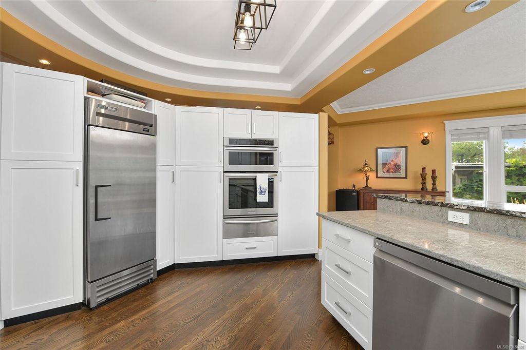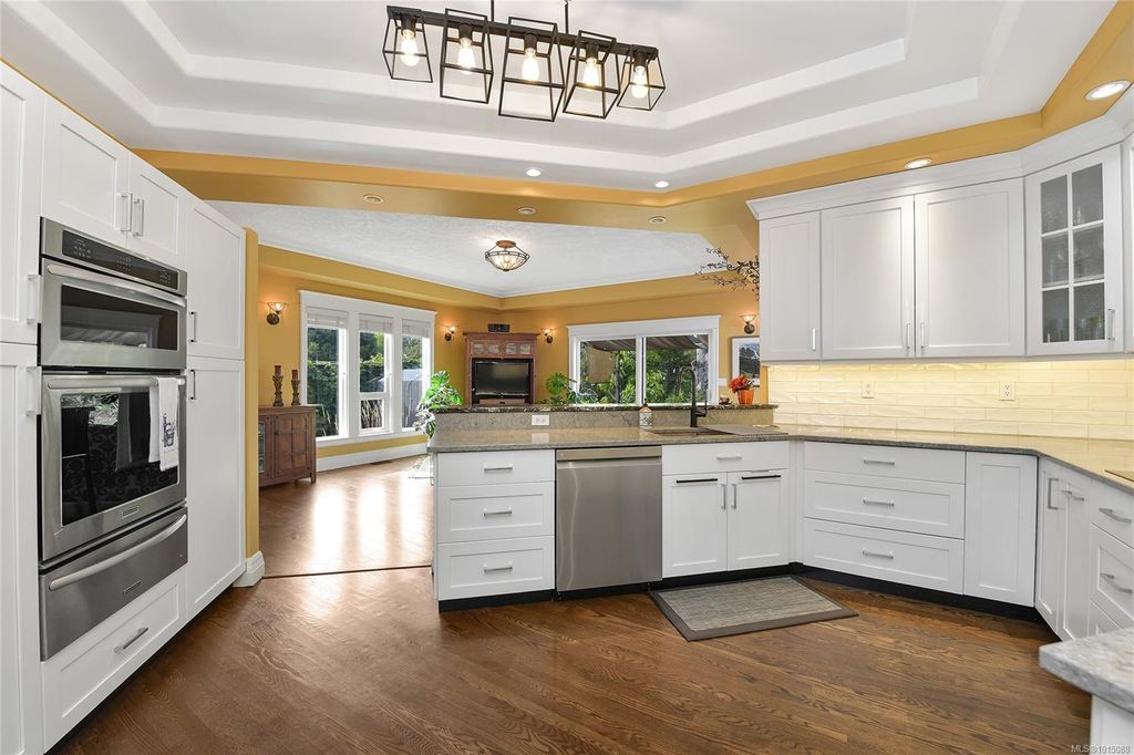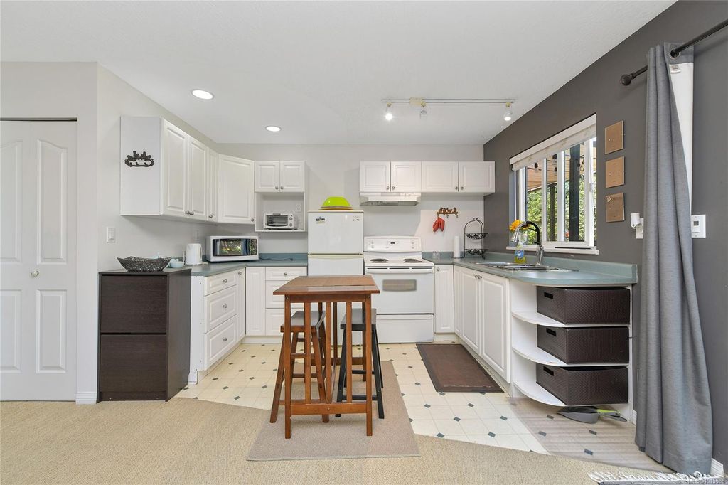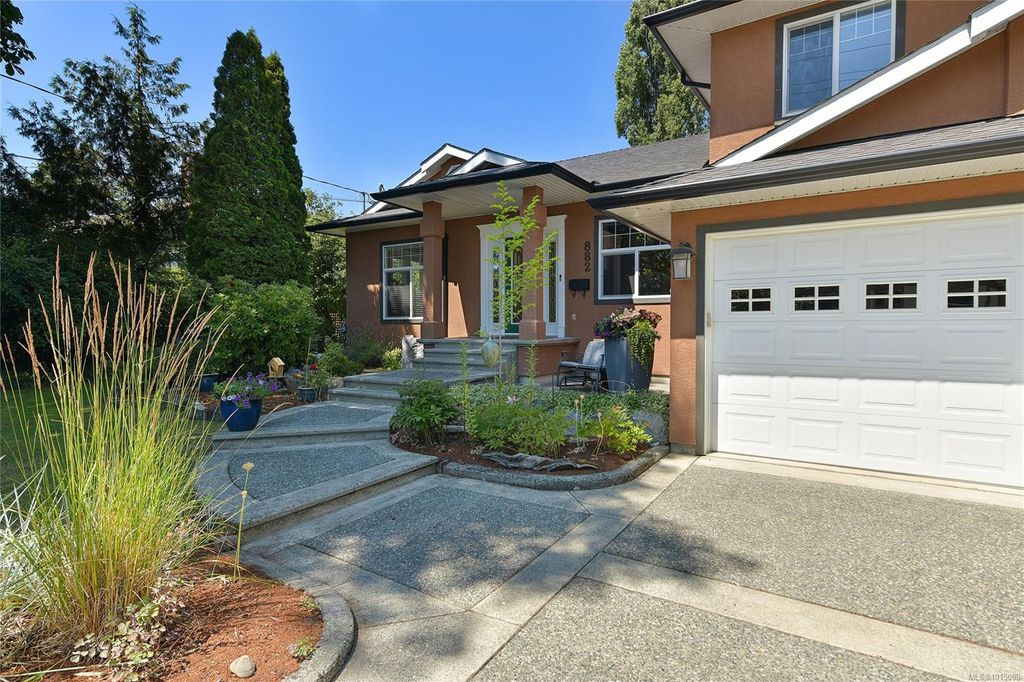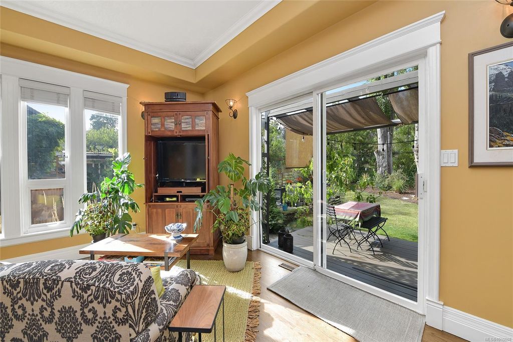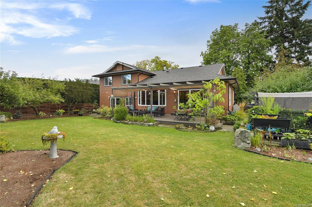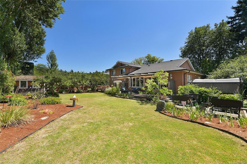 This special property is located at the end of a quiet no-through street adjacent to tranquil Swan Lake Nature Sanctuary. With nearly 2,800 square feet of living space boasting an open-concept main floor with 2 sitting rooms, home office, living room, dining, and thoughtfully designed kitchen with quartz countertops, breakfast bar and an array of cabinets equipped with wall oven, warming drawer and refrigerator. Wood floors throughout the main. The oversized deck seamlessly extends living space outdoors with pergola and a peaceful view of the landscaped yard including garden areas and storage shed. FOUR bedrooms located up including primary suite with ensuite as well as a lower level for additional storage. Also featured is a ground-level one-bedroom suite ideal for a nanny, in-laws, teenagers, or extended family. Conveniently situated, providing easy access to the Peninsula, Westshore, downtown Victoria and close to shopping, parks, and the Galloping Goose Trail.