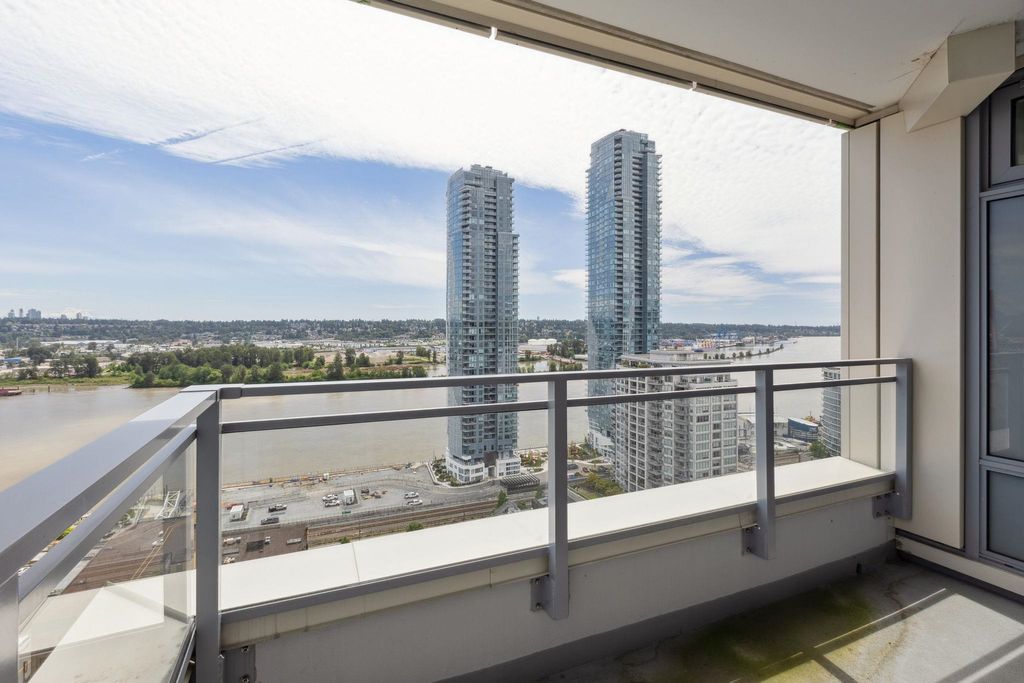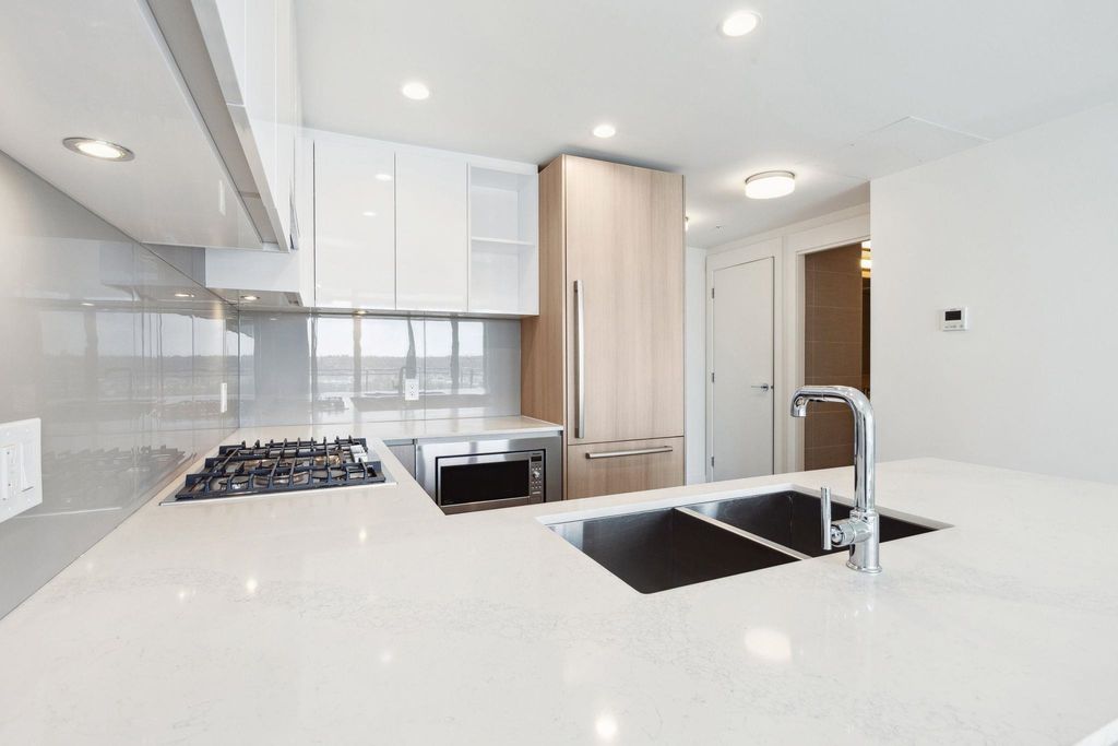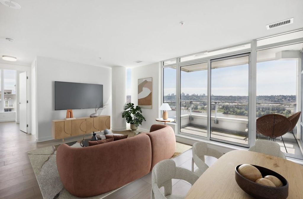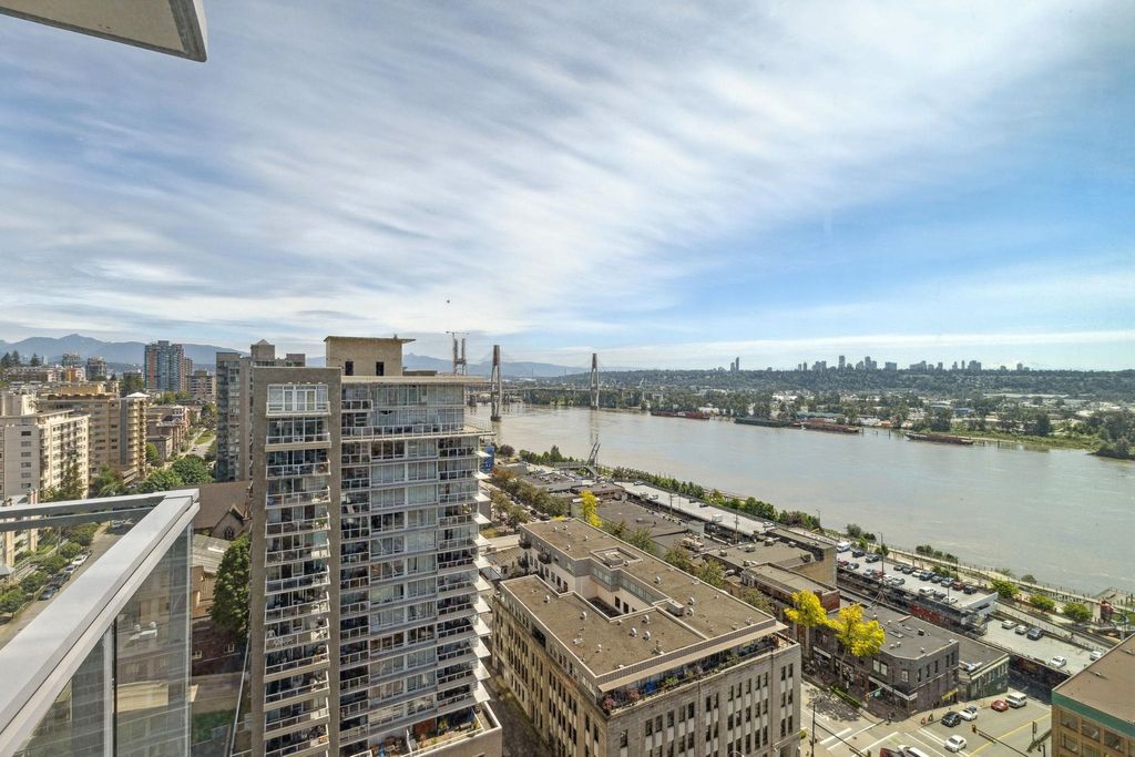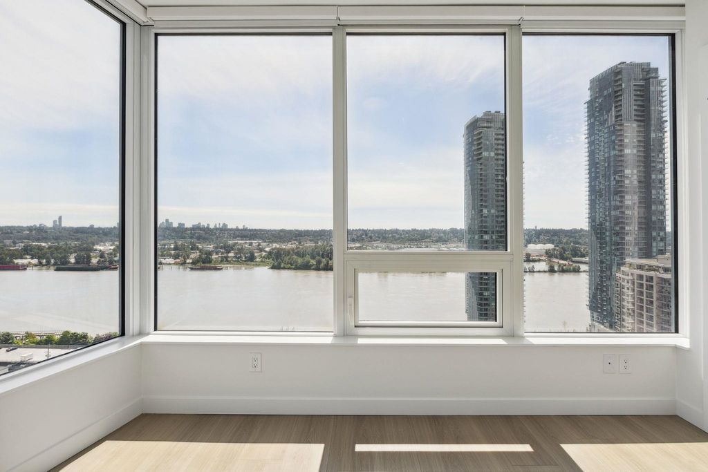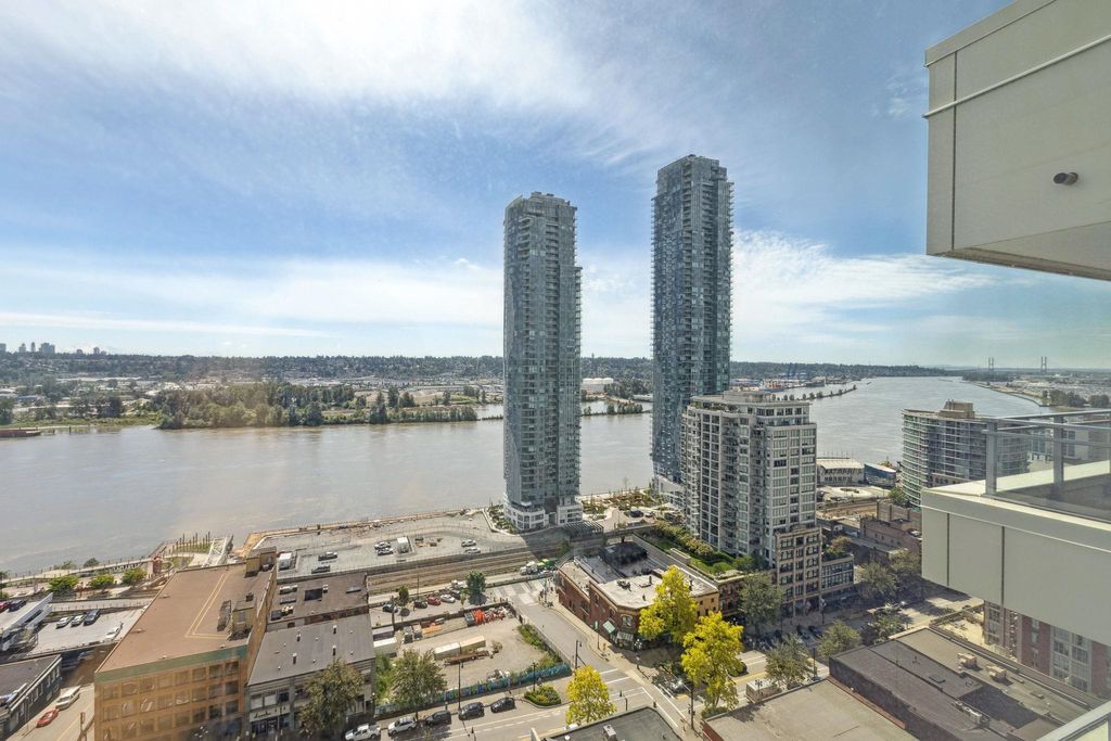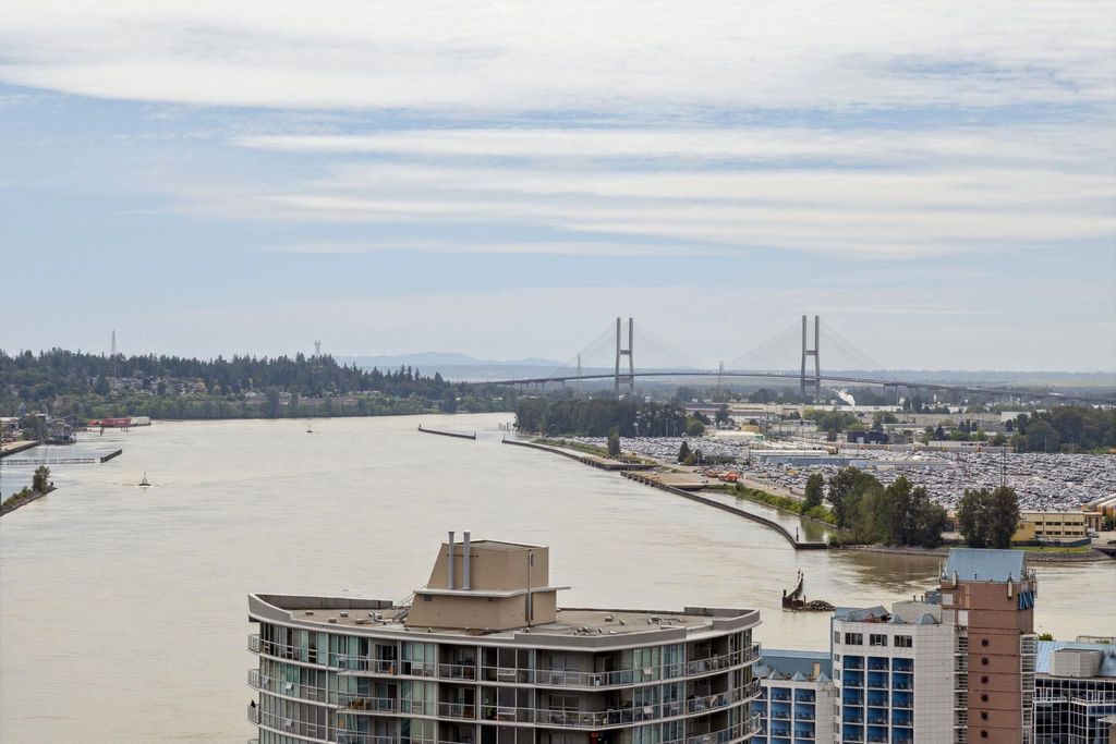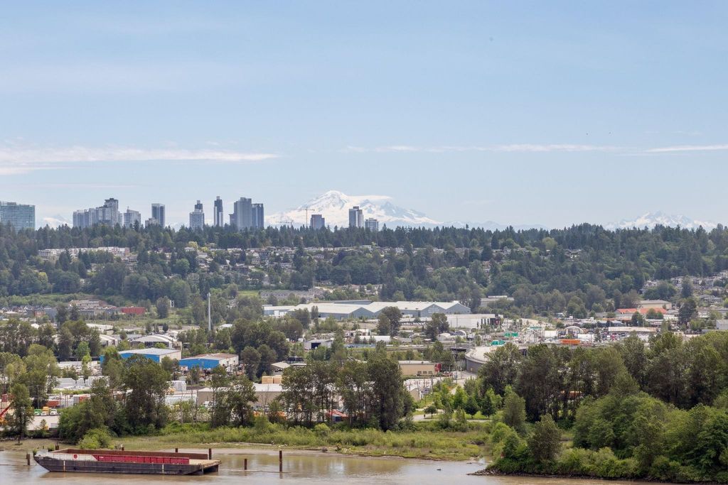 Huge price reduction! Best plan and view in the building. Corner two bedroom home that sits front seat to the iconic Lower Mainland views: Fraser River, Mountains, the whole Valley and even Mt. Baker! This bright, corner home has it all; floor to ceiling windows, gourmet kitchen, full size Bosch appliance package with french door style fridge, polished quartz countertops, Kohler double-sink, 9 ft ceilings, A/C, a great layout, parking, storage, and stress free 2-5-10 year warranty! The amenities include a 30,000 sqft outdoor garden space, fitness center, workspace, & meeting room, lounge, community garden, pet/car wash station, concierge desk and a guest suite. Steps away from two skytrain stations, Safeway, parks, coffee shops, Piva, El Guapo, the Quay and so much more!