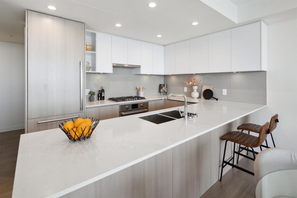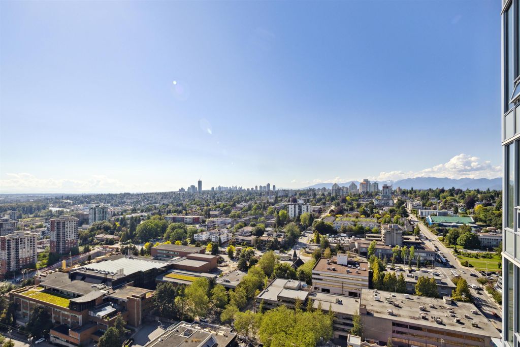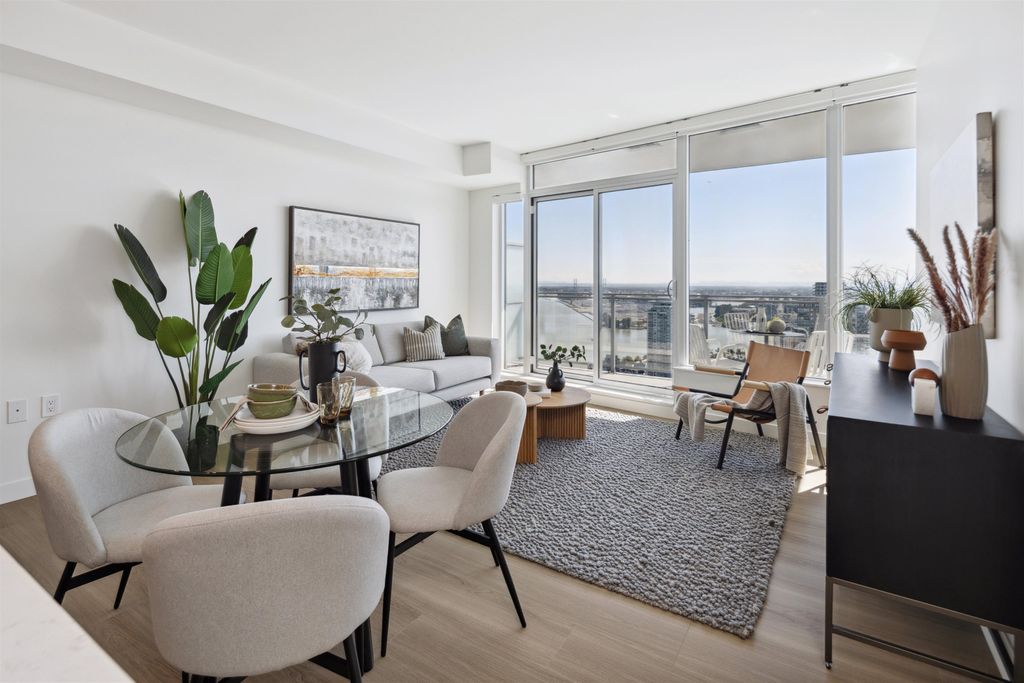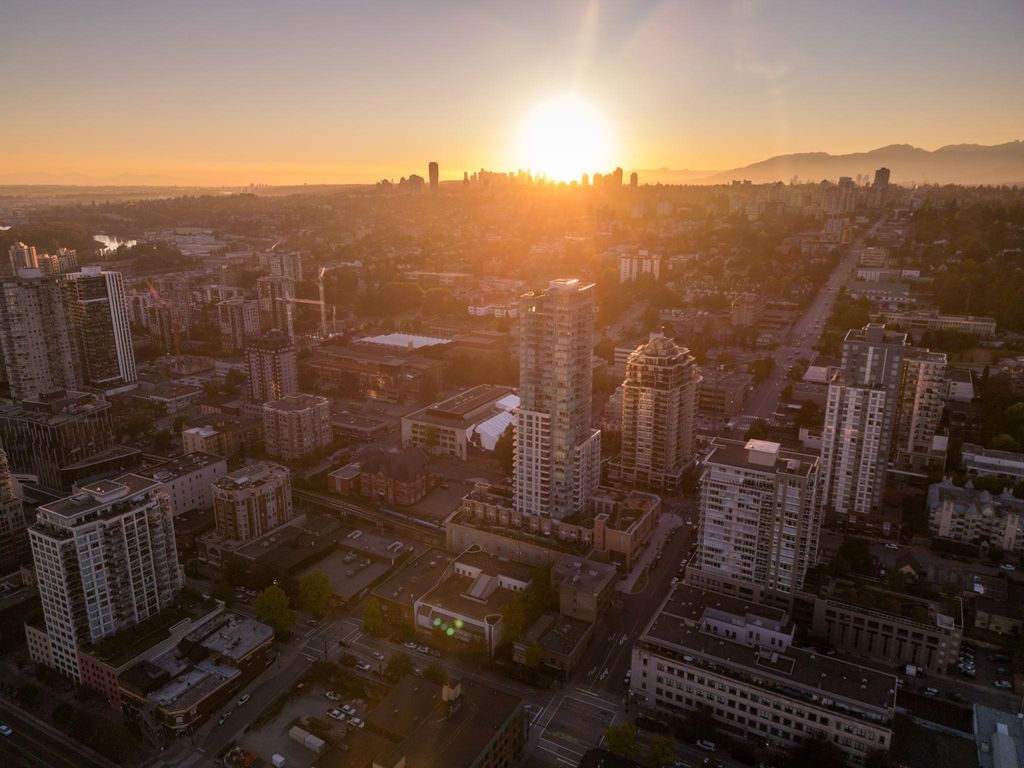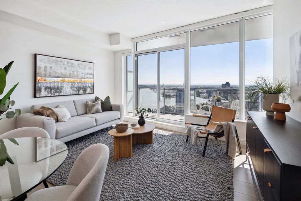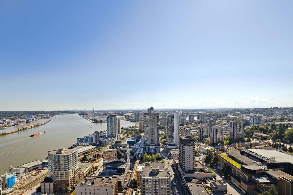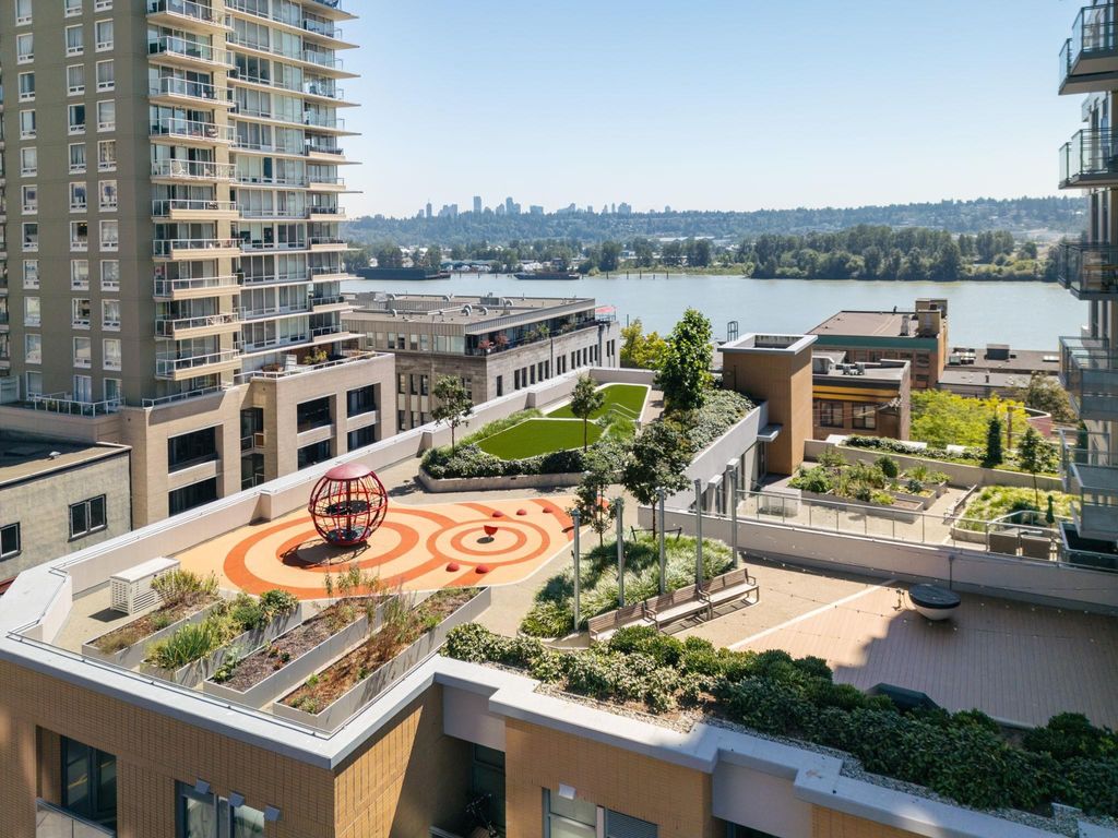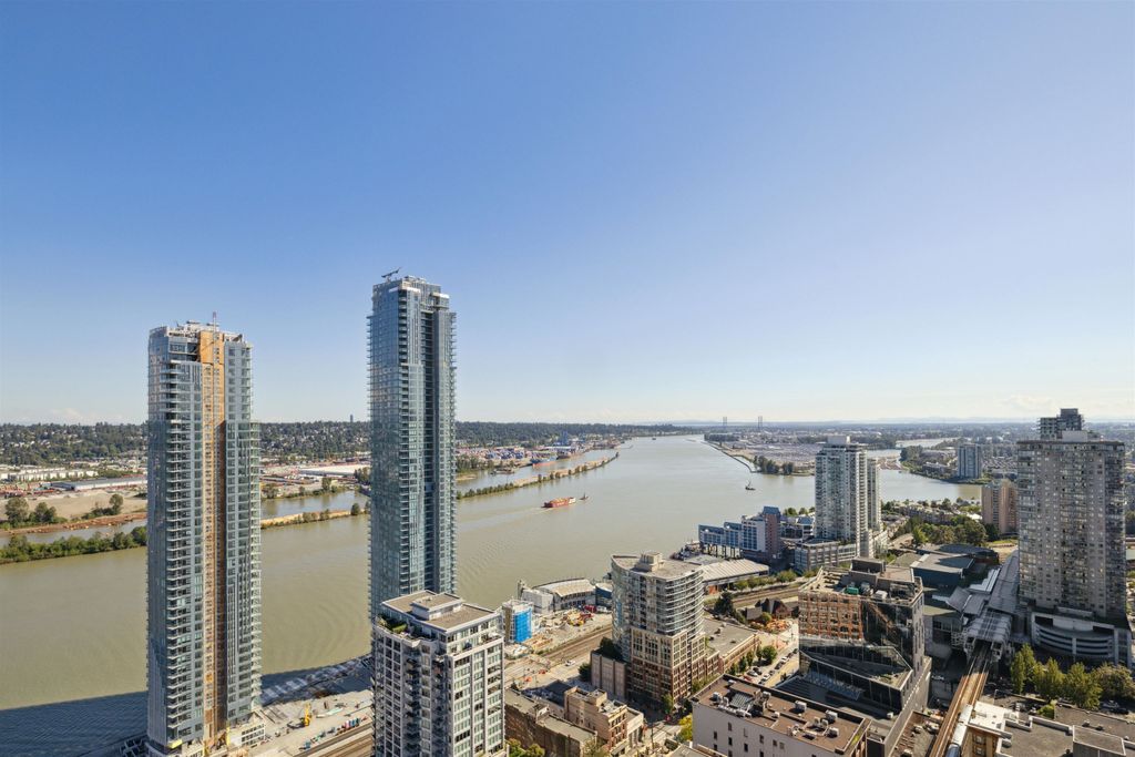 Brand New Move-in ready! Sub Penthouse level "C1b" plan is the biggest 2 bedroom plan. It boasts stunning south west city, sunset and river vistas within its 951 sq ft interior. Enjoy polished quartz countertops, sleek Kohler sinks, and energy-efficient Bosch appliances in this 2 Bedroom + Den suite. Ergonomic kitchen with bar seating that faces into the spacious living room. Modern cabinetry and thoughtful design elements enhance the space. Sizable balcony to enhances your living area creating seamless indoor/outdoor lifestyle. Discover recreation at the 2nd, 4th, & 5th floor outdoor courtyards. With rapid transit and boundless amenities mere blocks away, seize the opportunity to reside 33 storeys above New Westminster's bustling heart. OPEN HOUSE Sun APR 11, 2-4!