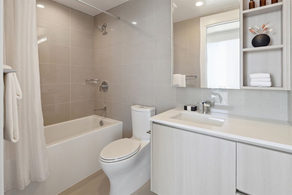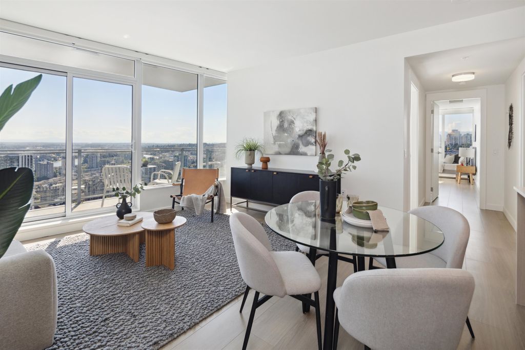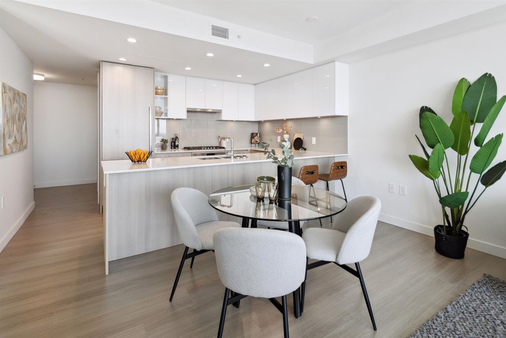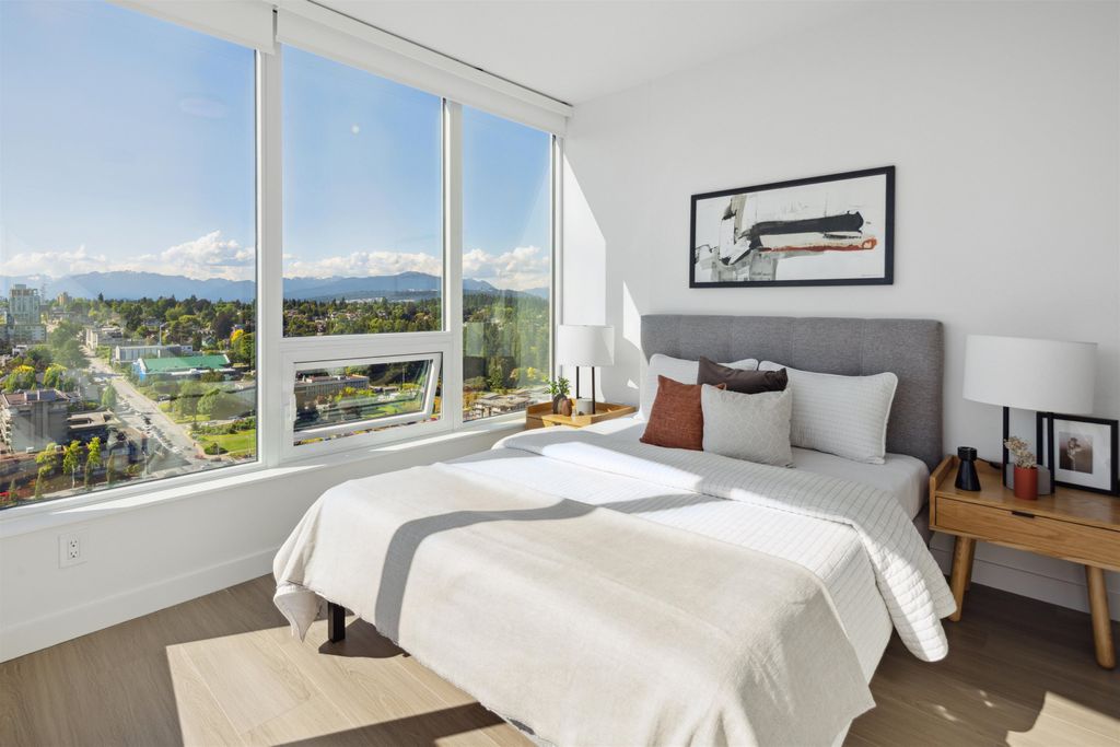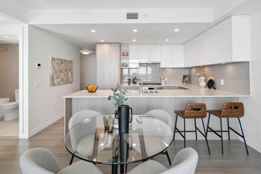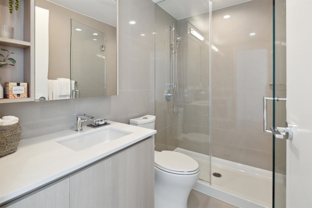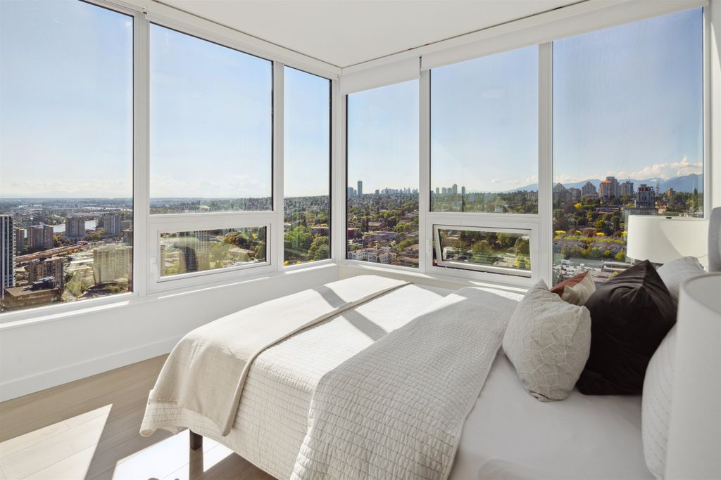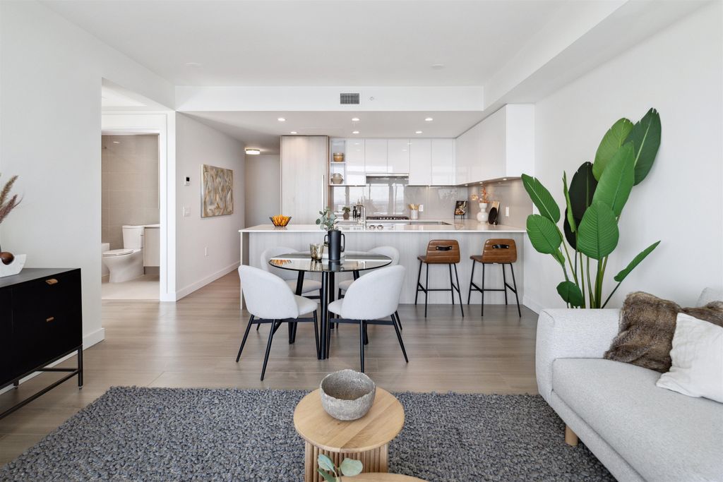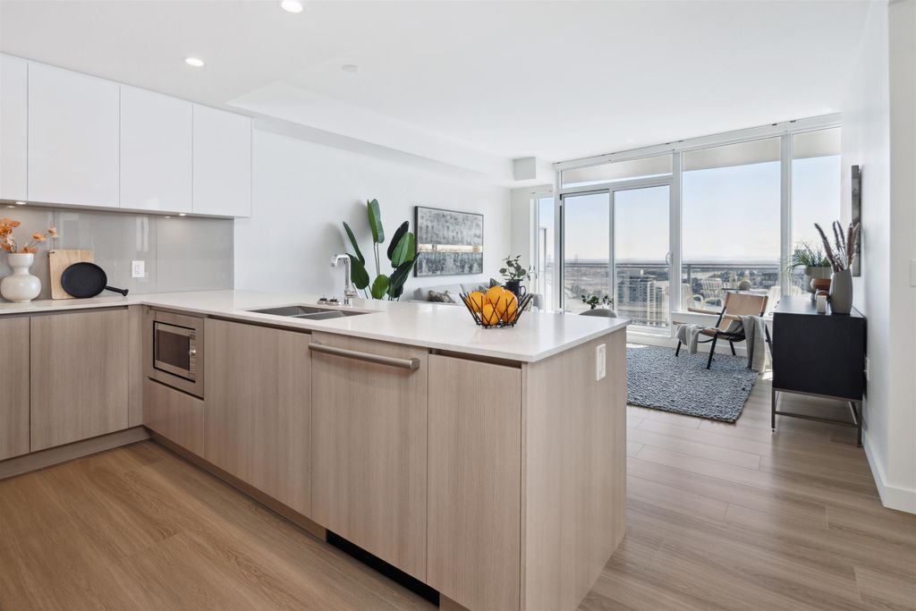 Brand New Move-in ready! Sub Penthouse level "C1b" plan is the biggest 2 bedroom plan. It boasts stunning south west city, sunset and river vistas within its 951 sq ft interior. Enjoy polished quartz countertops, sleek Kohler sinks, and energy-efficient Bosch appliances in this 2 Bedroom + Den suite. Ergonomic kitchen with bar seating that faces into the spacious living room. Modern cabinetry and thoughtful design elements enhance the space. Sizable balcony to enhances your living area creating seamless indoor/outdoor lifestyle. Discover recreation at the 2nd, 4th, & 5th floor outdoor courtyards. With rapid transit and boundless amenities mere blocks away, seize the opportunity to reside 33 storeys above New Westminster's bustling heart. OPEN HOUSE Sun APR 11, 2-4!