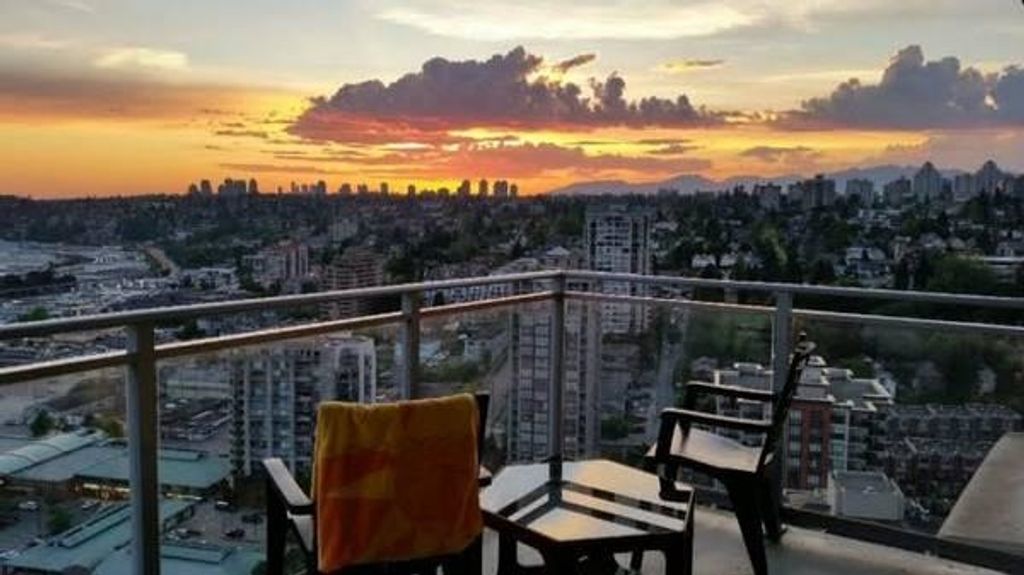 THE AZURE, hottest location in Downtown New West. High up on the 33rd floor, this Rare corner unit with almost 1000 sqft of open living, amazing north, west, and south river views is available. Directly connected to the building is New West Skytrain station, Bus exchange, and Plaza 88: (Safeway, Shoppers Drug Mart, CIBC, RBC, Landmark Cinemas, Starbucks, and more). Just steps from your building is the ecclectic shops and cafes of DT New West, the revitalized waterfront, and market Quay. The New West condo market is surging and with a long term tenant in place, this is a turn key investment. Please contact listing agent for details and showing Schedule.