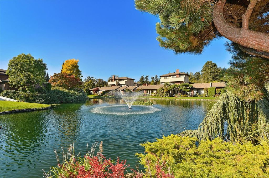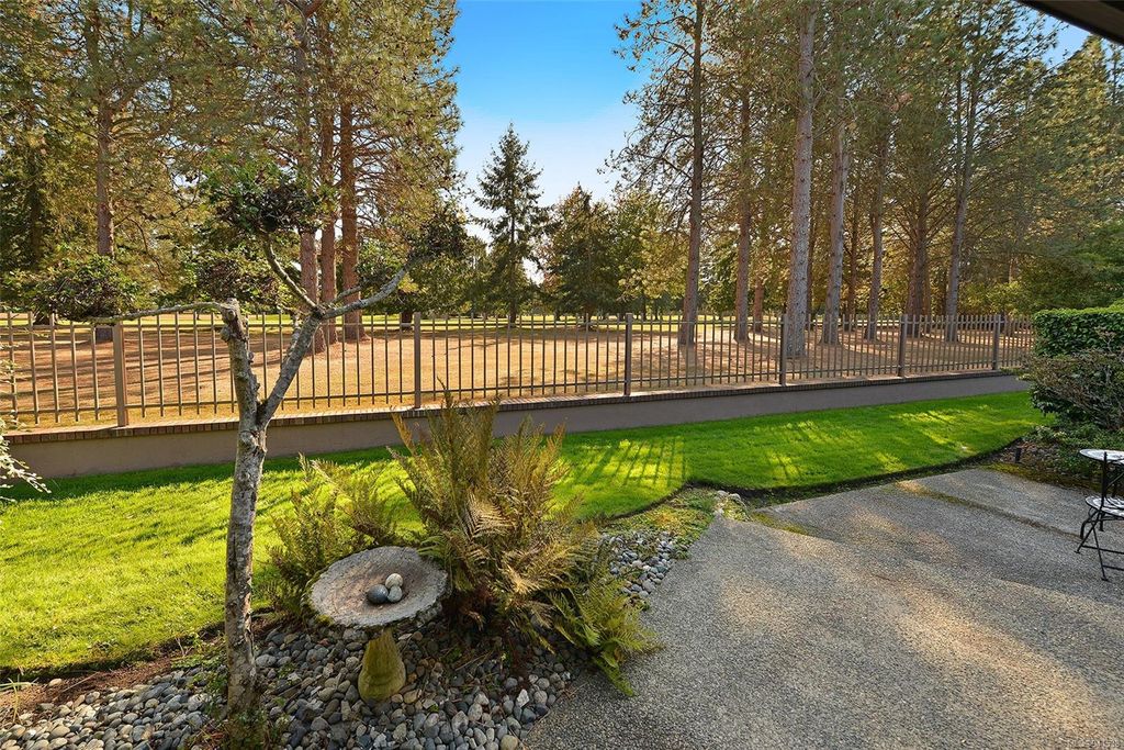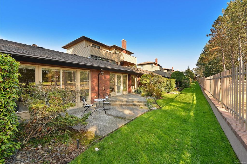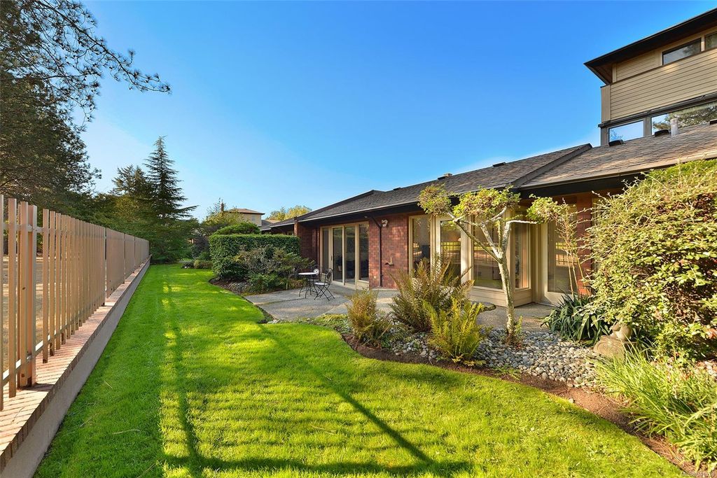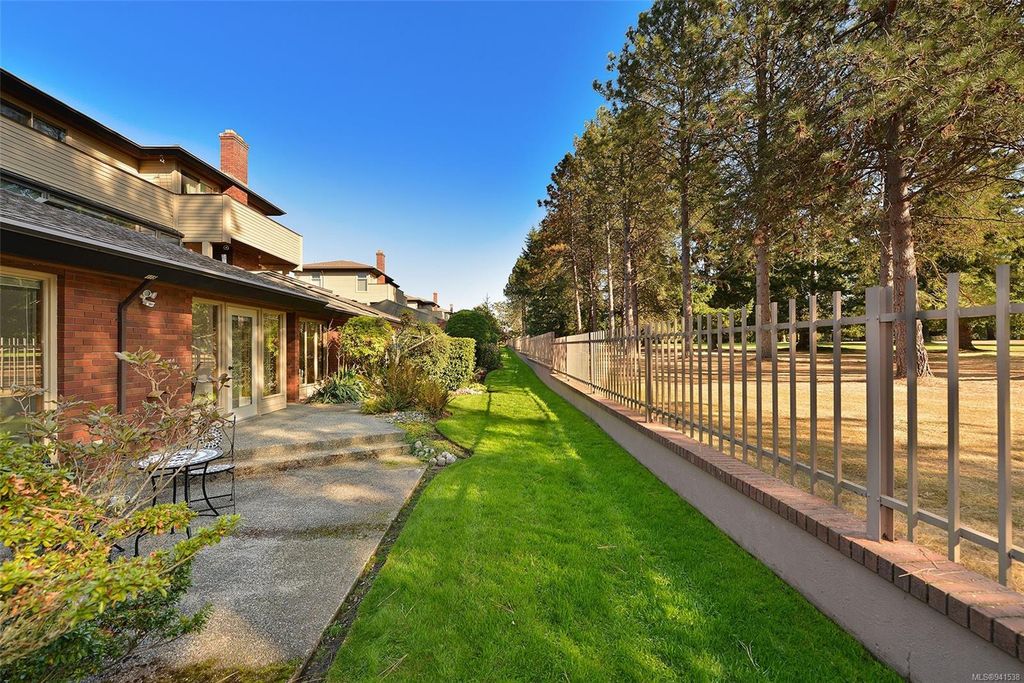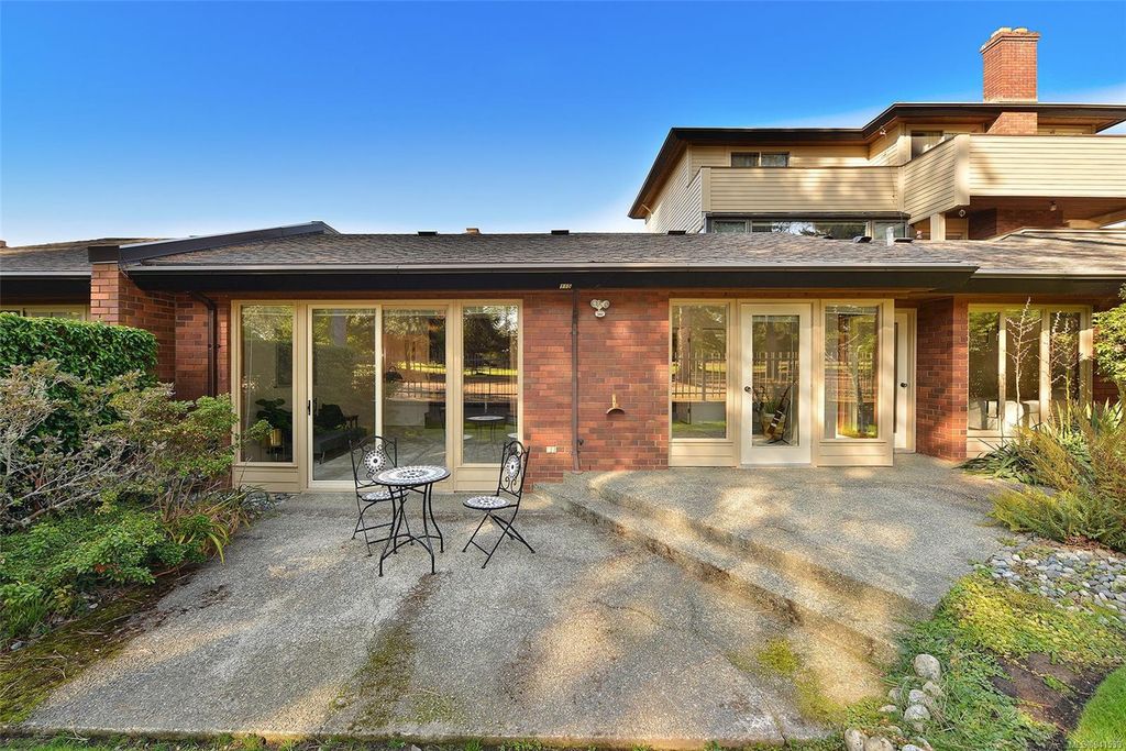 Uplands Estates! Quiet, private: A rare find. This lovely townhome offers over 1700 sqft all on one level with formal entrance, sunken living room, separate dining room, kitchen with eating space and superb south facing patios fronting on the Uplands Golf Course. In a gated centrally located development and wonderful parklike setting. Separate detached double garage plus storage. Largely in its original state, this home can be enjoyed as is or renovated to suit your decorating tastes. Nearby are varieties of shops, restaurants and services all within walking, cycling or a short drive. Beautiful and accessible beaches too and marine recreation opportunities like Cadboro Bay Sailing, Royal Victoria Yacht Club, Cattle Point boat launch and the Oak Bay Marina. Next door, Henderson Recreation Centre has great amenities; gym, fitness studio, outdoor tennis, and pitch and putt golf. This unique and marvellous home is ready for immediate possession.