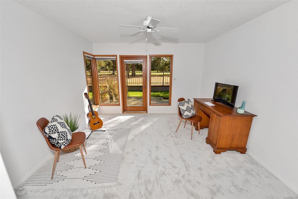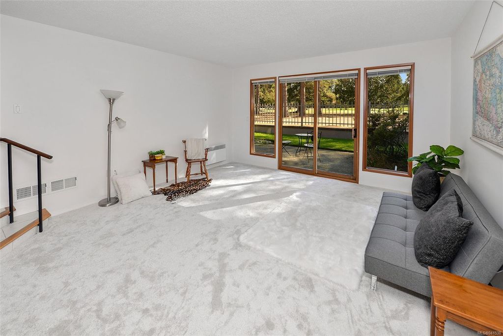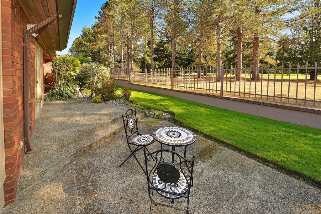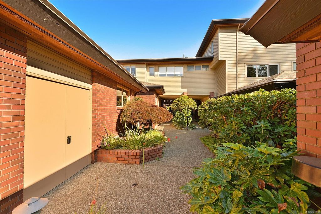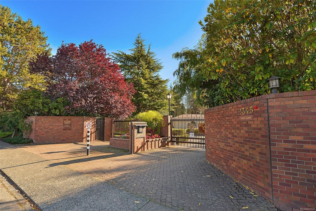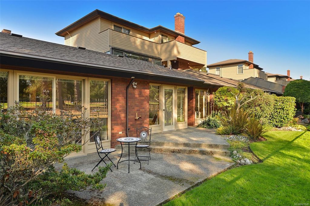 Uplands Estates! Quiet, private: A rare find. This lovely townhome offers over 1700 sqft all on one level with formal entrance, sunken living room, separate dining room, kitchen with eating space and superb south facing patios fronting on the Uplands Golf Course. In a gated centrally located development and wonderful parklike setting. Separate detached double garage plus storage. Largely in its original state, this home can be enjoyed as is or renovated to suit your decorating tastes. Nearby are varieties of shops, restaurants and services all within walking, cycling or a short drive. Beautiful and accessible beaches too and marine recreation opportunities like Cadboro Bay Sailing, Royal Victoria Yacht Club, Cattle Point boat launch and the Oak Bay Marina. Next door, Henderson Recreation Centre has great amenities; gym, fitness studio, outdoor tennis, and pitch and putt golf. This unique and marvellous home is ready for immediate possession.