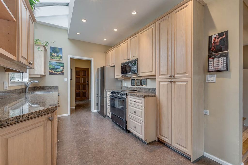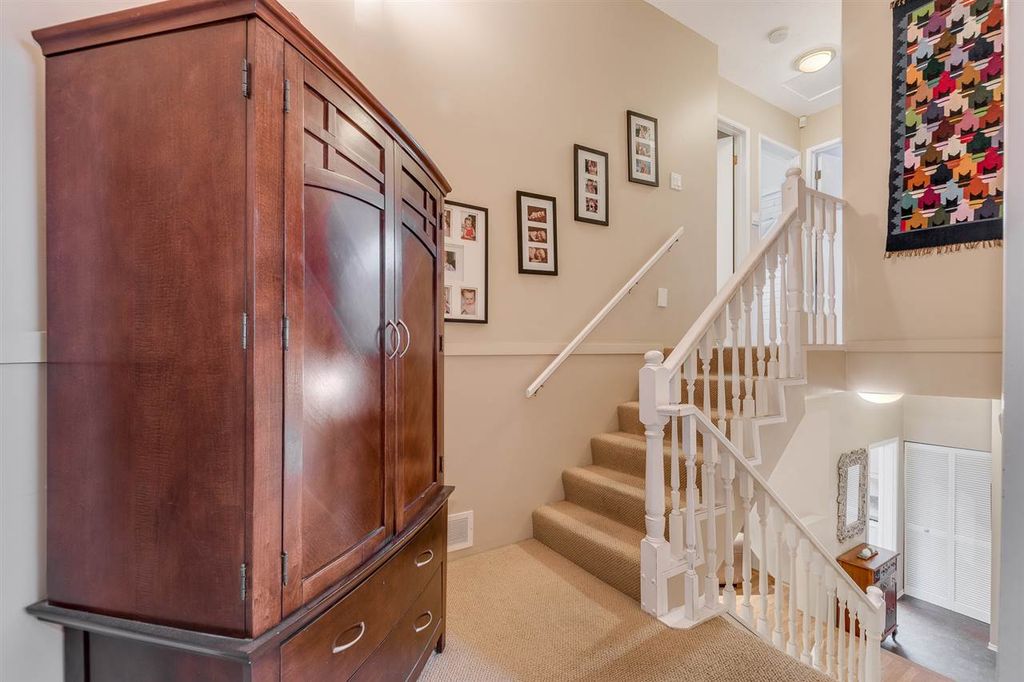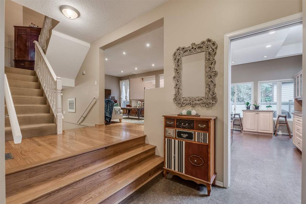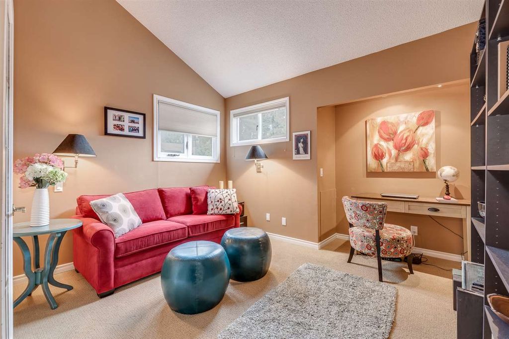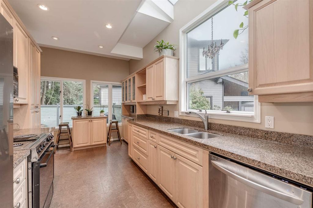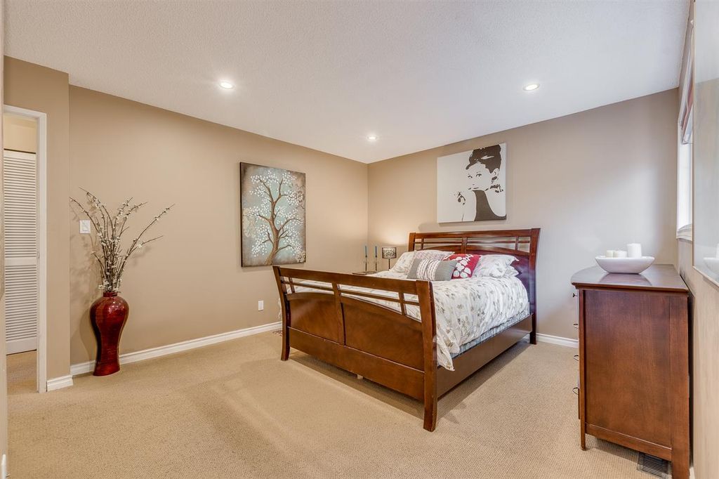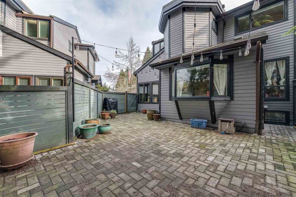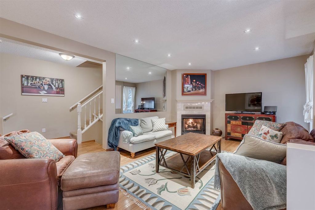 Spacious family home in the sought after Bayberry complex. This nicely updated end unit offers H/W floors, gas fireplace, generous room sizes and plenty of room for the growing family. You'll enjoy the large bright kitchen w/granite countertops, cork floors, stainless steel appliances and lots of natural light. Upstairs has 3 bedroom, mater boasts ample closet space, beautifully renovated ensuite w/heated floors, walk-in shower and designer touches throughout. Downstairs makes a great playroom, gym, office or extra bedroom. All this PLUS a double attached garage, lots of storage space and a private, fenced patio for kids, pets, bbqs and more! A townhouse that truly feels like a house. Walking distance to rec centre, shopping, great schools, parks, restaurants and transit.
