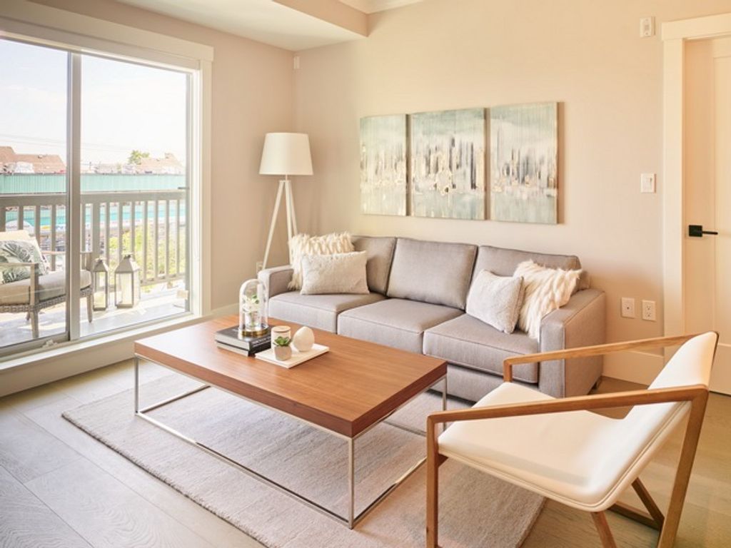 Stop searching & move into this quality-built 1,071 sq’ BRAND NEW 2-ensuited/2-bedroom, SW end-unit. 20' x 6' South-facing balcony. Functional design w/lots of storage space incl walk-in closet & laundry rm. 9’ceilings. Wood flooring thru-out + heated, tiled master ensuite. Gas heating & cooling AC system. Efficient gourmet kitchen, w/brand name SS appliances & quartz countertop, opens to living area. 1 Secured parking EV-wired. Top quality & elegant design w/timeless, modern feel. Breathtaking shared rooftop garden w/360° views stretching from Fraser River to the north shore mtns. All these within walking distance to Fisherman’s Wharf, Garry Point Park, boutique shops, gourmet restaurants & the forever Steveston Village lifestyle!