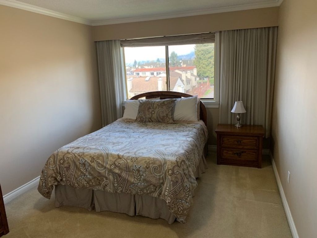 Fabulous 2 bedroom immaculately maintained suite on the top floor with a spectacular view of The Lions and North Shore mountains. Electric fireplace in the the living room and extra large bedrooms are another great feature. Perfect location only a block off Lonsdale. Walking distance to great shopping and restaurants. Bring your dog or cat. No rentals allowed. The ownership is shares in a co-operative, 35% down payment maybe required. Co-op approval of the buyer by the strata council is required.