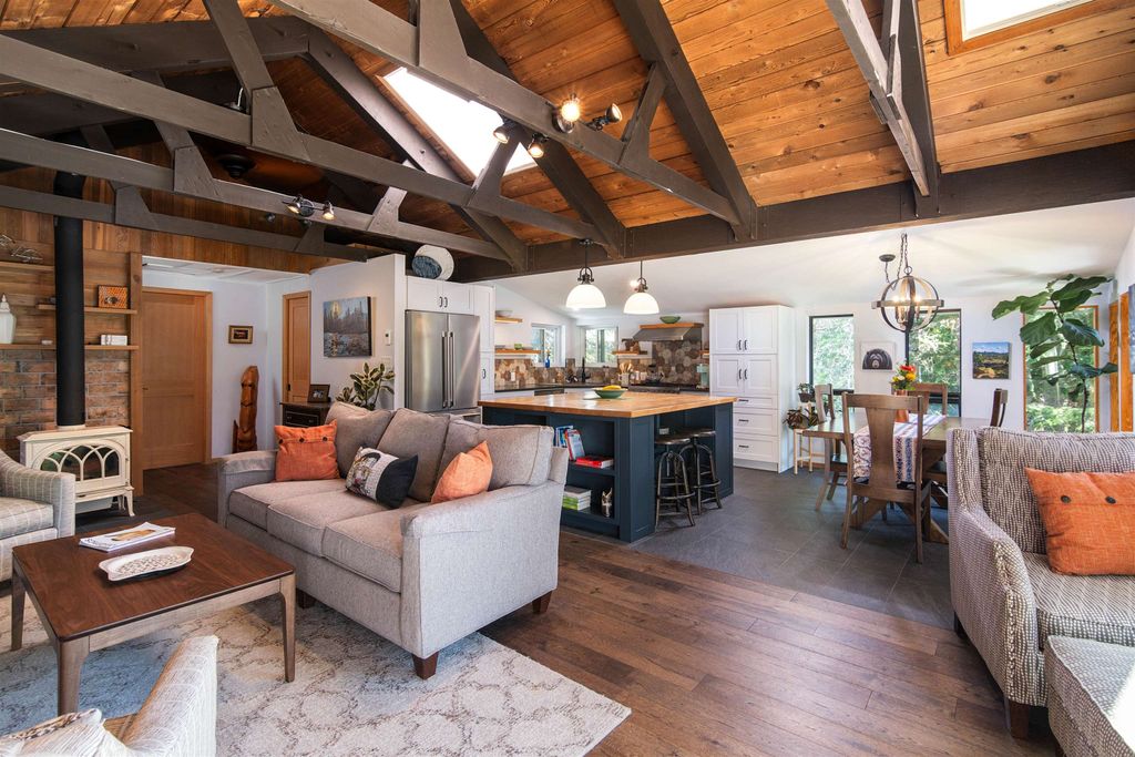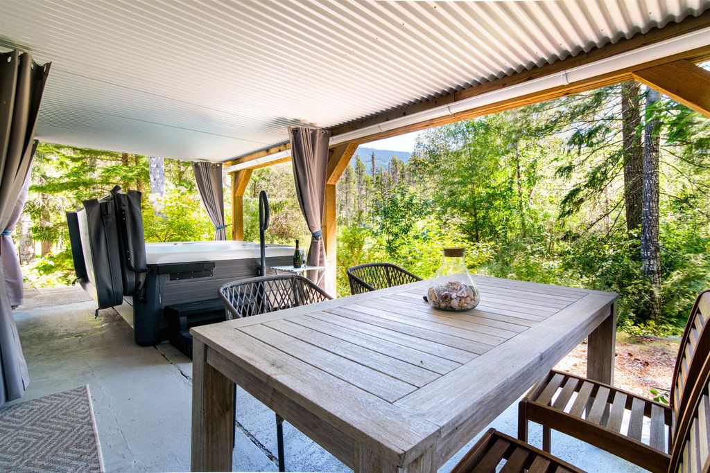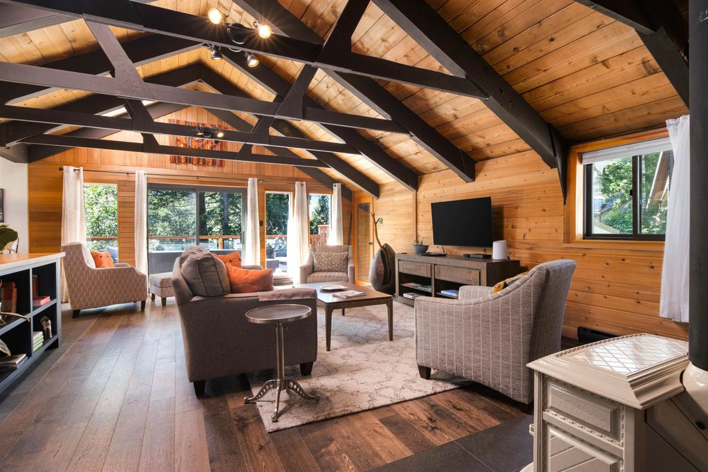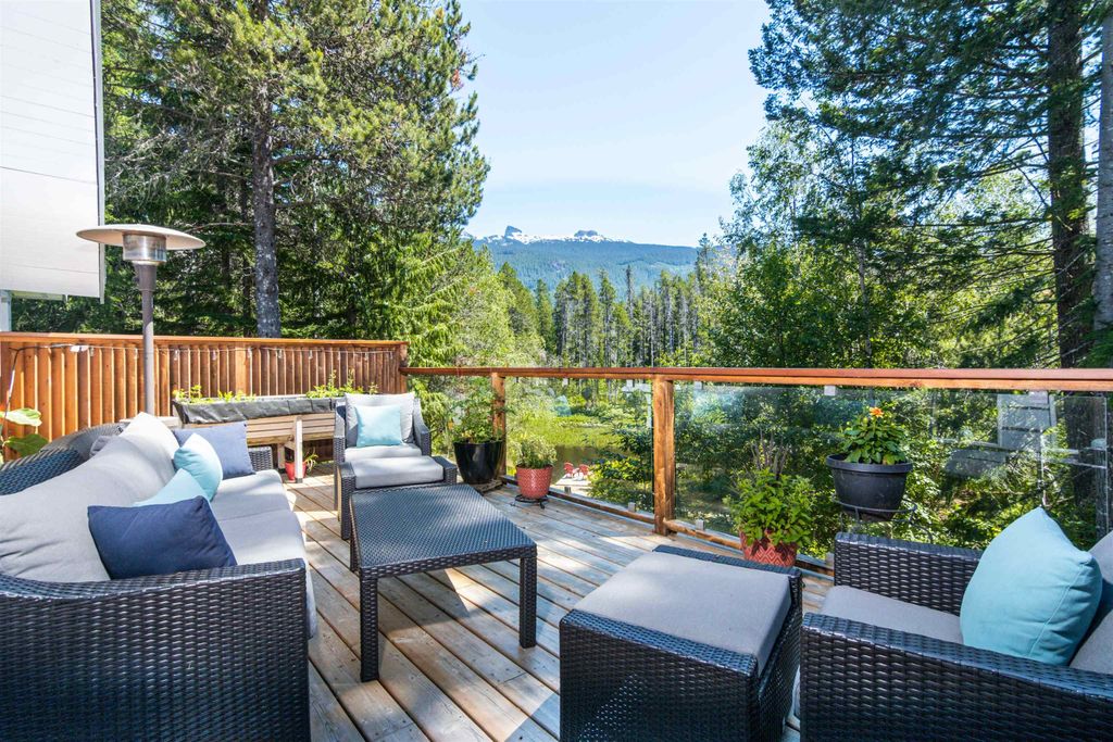 Imagine sipping tea on a sun-drenched deck soaking in VIEWS of The Black Tusk and Tantalus Range. Your Whistler dreams come true at the Garibaldi Treehouse. This WATERFRONT chalet offers 3 bedrooms, family room and 2 baths tastefully updated with designer touches and a TWO BAY GARAGE. The main living boasts new windows, lighting and a Jotul wood stove. The window-lined great room features real hardwood floors & radiant heat tiles, centered around a large bespoke maple top island. Luxury kitchen appliances include Miele & Bertazzoni and an updated bath with antique vanity and Toto commode. The main bedroom offers white shiplap walls and a WIC. Below find two bedrooms, full bath, family room, laundry and outside, a Hot Springs salt hot tub. Black Tusk Village offers a new clubhouse and more!