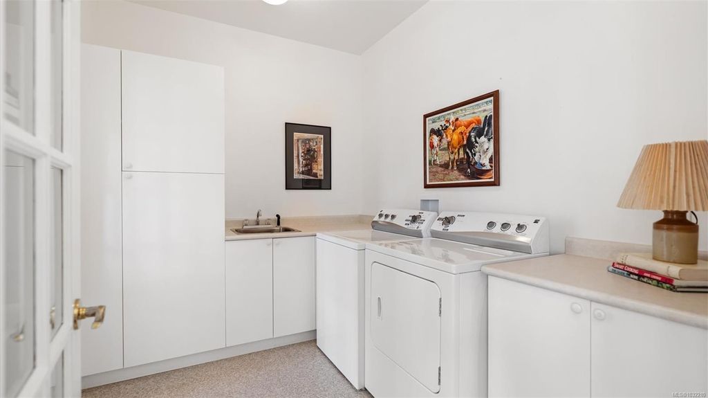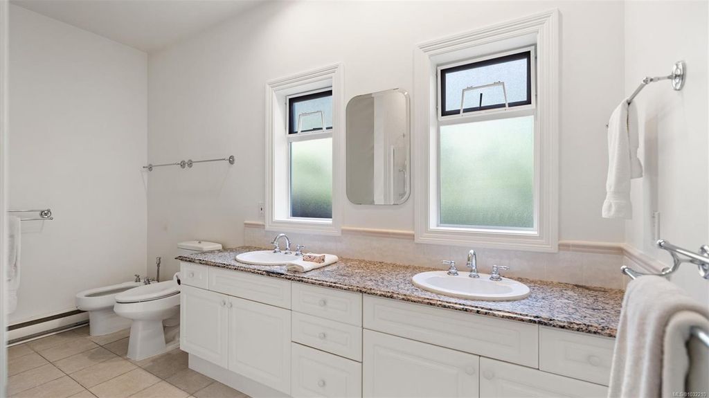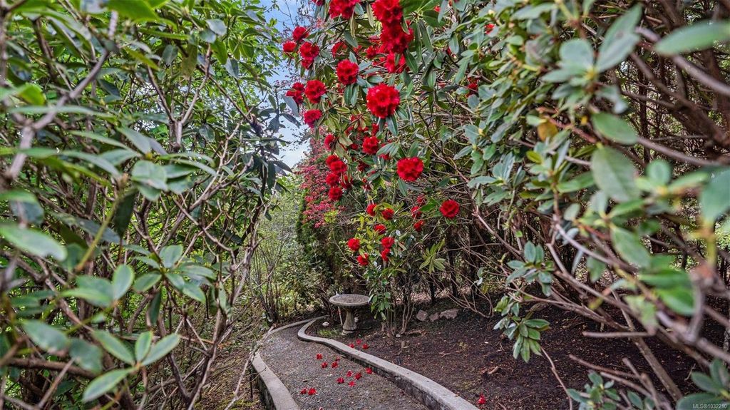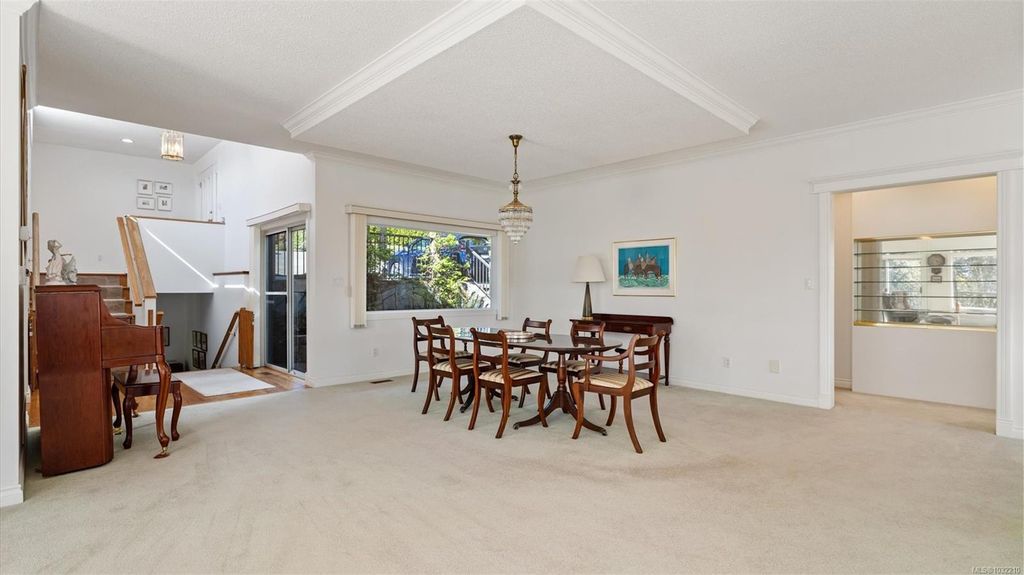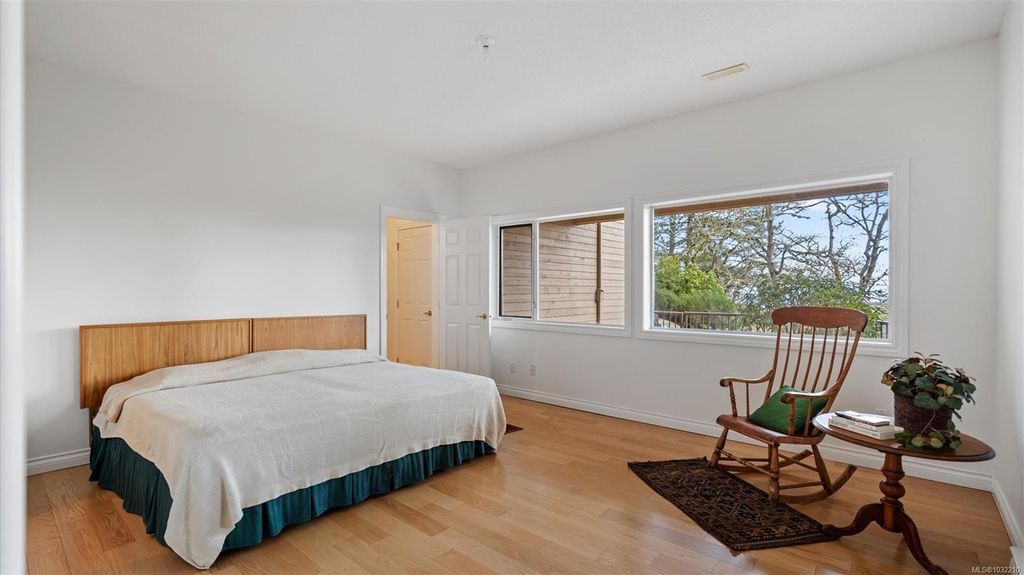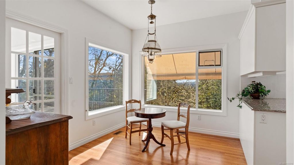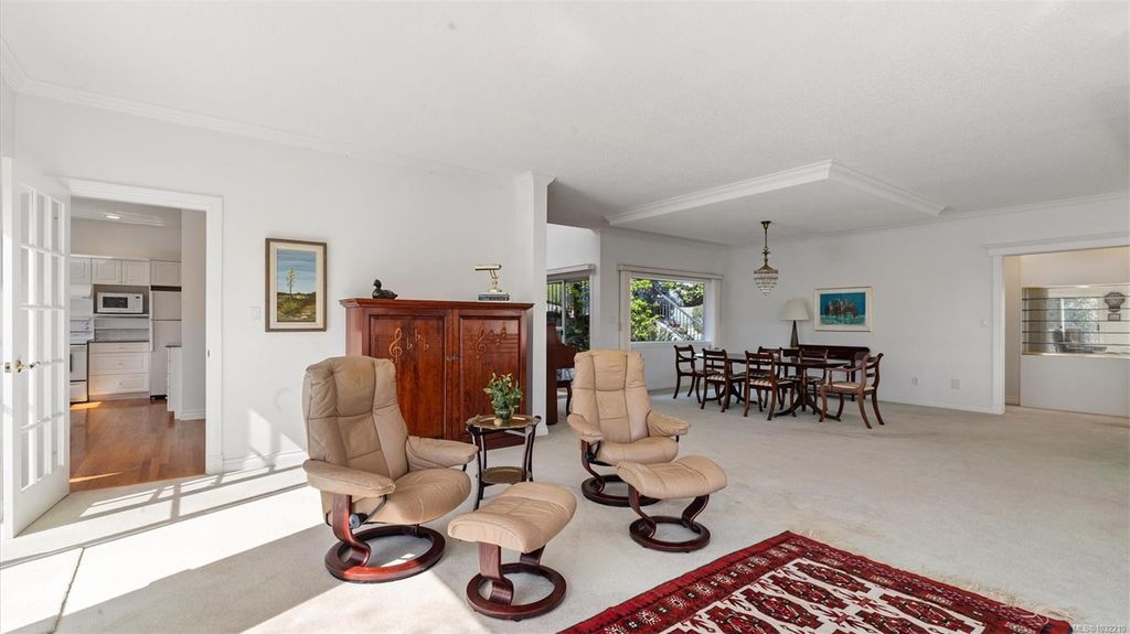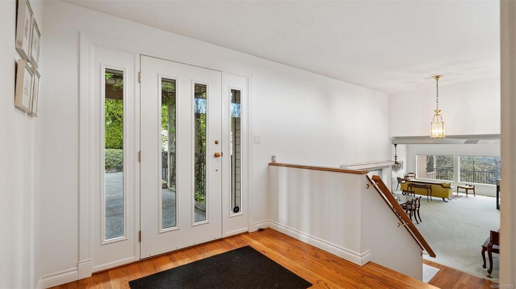 Located in a desirable upmarket neighbourhood, this elegant residence is perfectly positioned to capture stunning panoramic views of the ocean, the lush mature trees and Mt. Doug. The main house features a massive open-concept living and dining area where oversized windows frame the incredible scenery. The main level flows seamlessly onto a spectacular 642-square-foot balcony offering a private, elevated outlook. The primary bedroom is a true retreat with beautiful views, a generous walk-through wardrobe, and a private ensuite. Completing the main home are two additional bedrooms, a five-piece bath, and a powder room. As a fantastic addition, the property includes a bright and spacious one-bedroom suite with its own entrance, ideal for guests or family. This fully contained suite offers an open kitchen and living area, plus a large covered deck to enjoy the same peaceful scenery. This home provides a quiet lifestyle in a beautiful, landscaped setting.