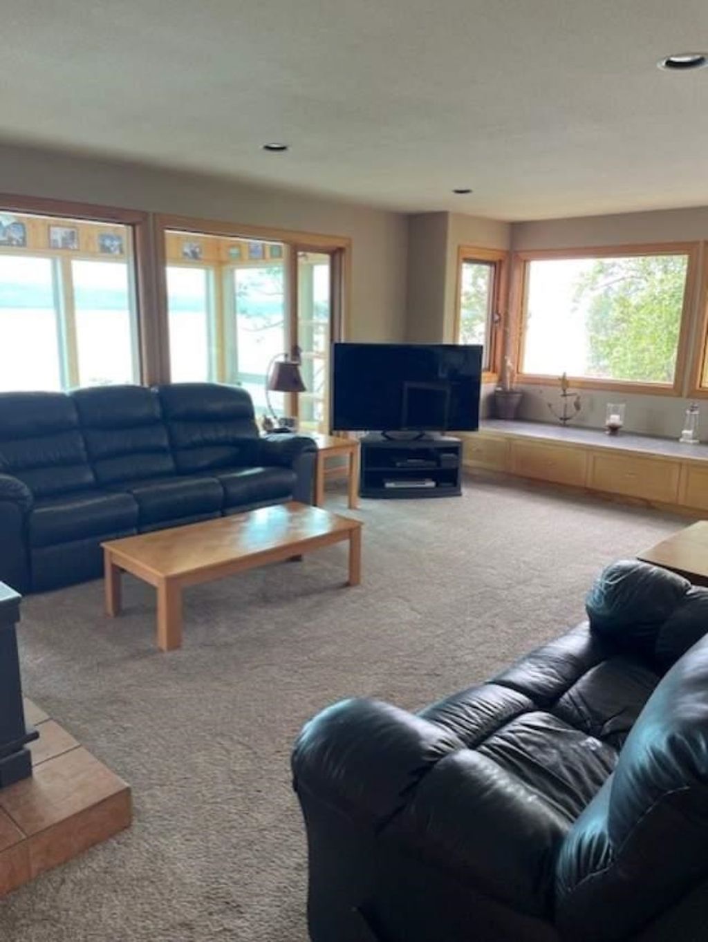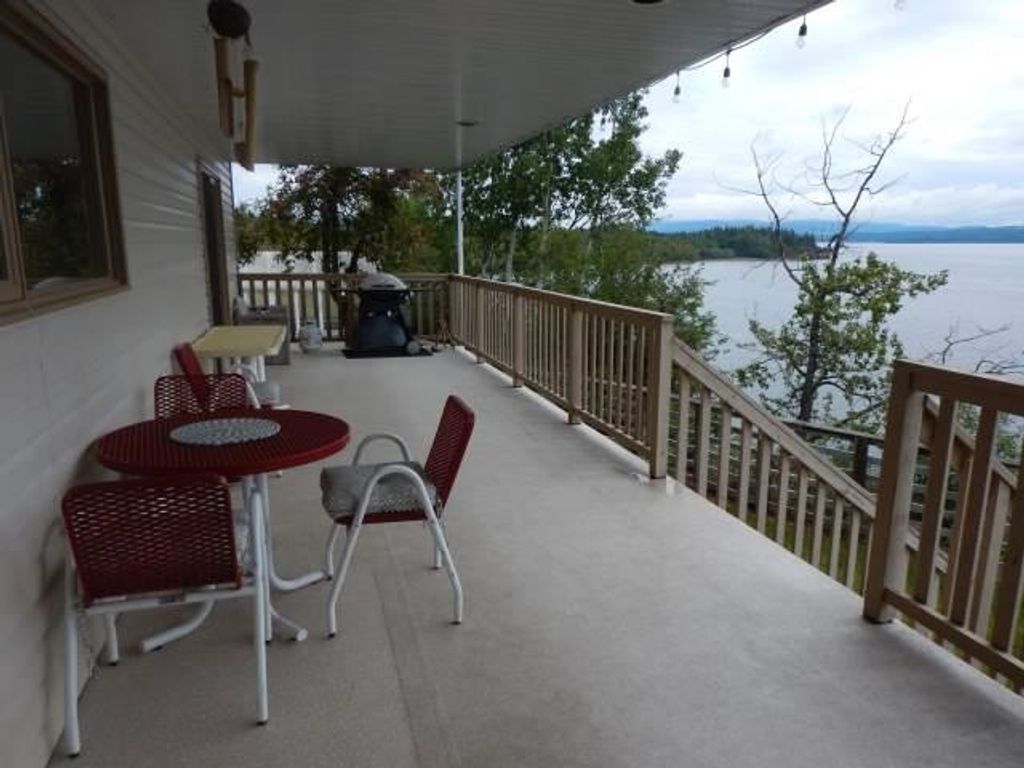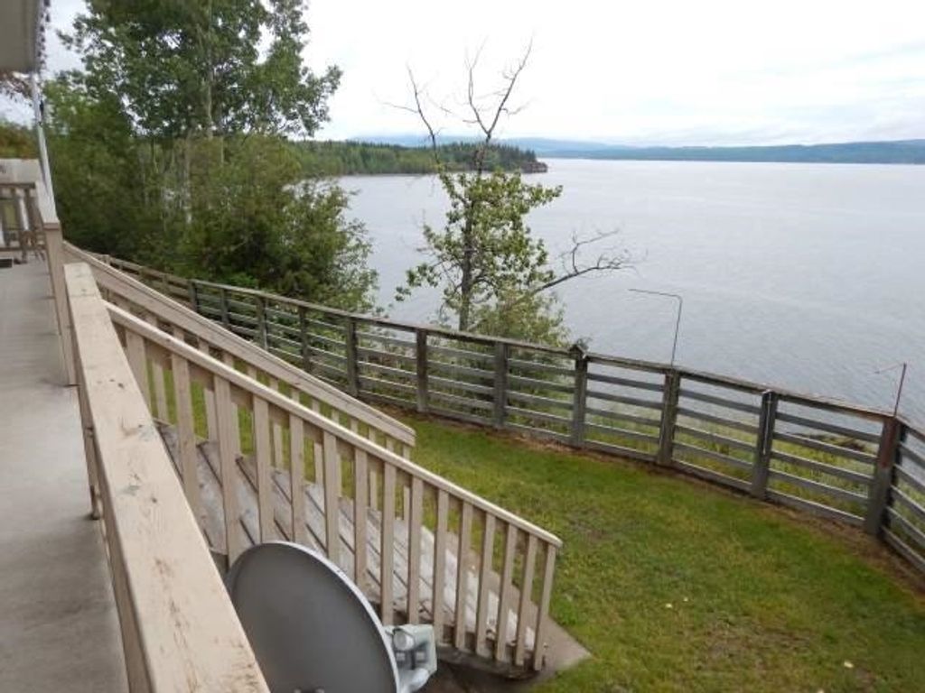 The most incredible view of Francois Lake will greet you from the living area of this executive home situated on just under 2 1/2 acres of waterfront property. Only 6 km from the Francois Lake ferry on the north side. Over 3800 sq. Ft. Of living area on two levels. 3 bedrooms, living room-dining area-family room, and kitchen with ample cupboards and counter space. Expansive rec room area in basement, that includes pellet stove heating, laundry area, bathroom with steam room! Large sunroom on the deck protects from the weather and allows full enjoyment of the view. Fully finished shop 30' x 48' suitable for most any projects or work use, 12' doors. 2 vehicle pole sheds, all metal clad, for boats or RV's. Old heritage cabin not difficult to spruce up and offers an attachment to the 1900's.