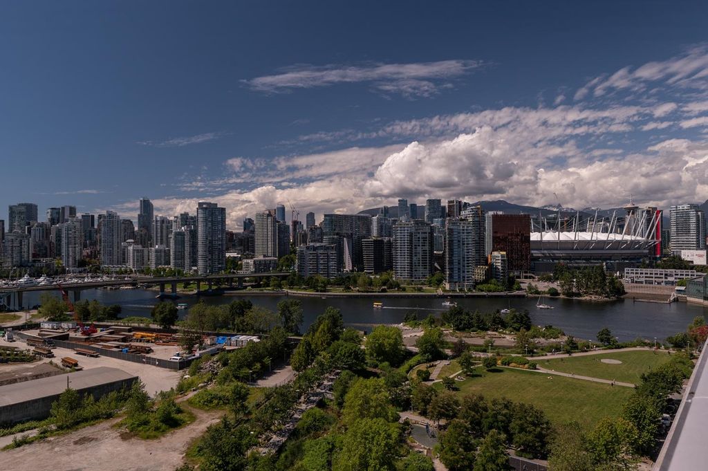 Designed by Urban Arts Architecture, this stunning 2 lvl luxury PENTHOUSE at Wall Centre False Creek w/ 2 bdrms & 2 baths is an art collector's dream. W/ 1928 SF of open living space, custom skylights & floor to ceiling windows draw in natural light & frame incredible SW water views of FalseCreek, MtBaker, NShoreMtns & DT. 10' ceilings & custom lighting allow your art collection to shine. Best location just steps away from the seawall, Urban Fare and restaurants @ OlympicVillageSquare. Almost 400 SF of outdoor space provides the perfect spot to unwind. Features a Chef's kitchen & Architectural floating glass staircase. Heated floors in upstairs bath for extra comfort. 2 SidexSide parking w/ 2 large storage lockers. Amenities: Gym, Rooftop Garden, EV stations, Meeting room, Lounge & more.