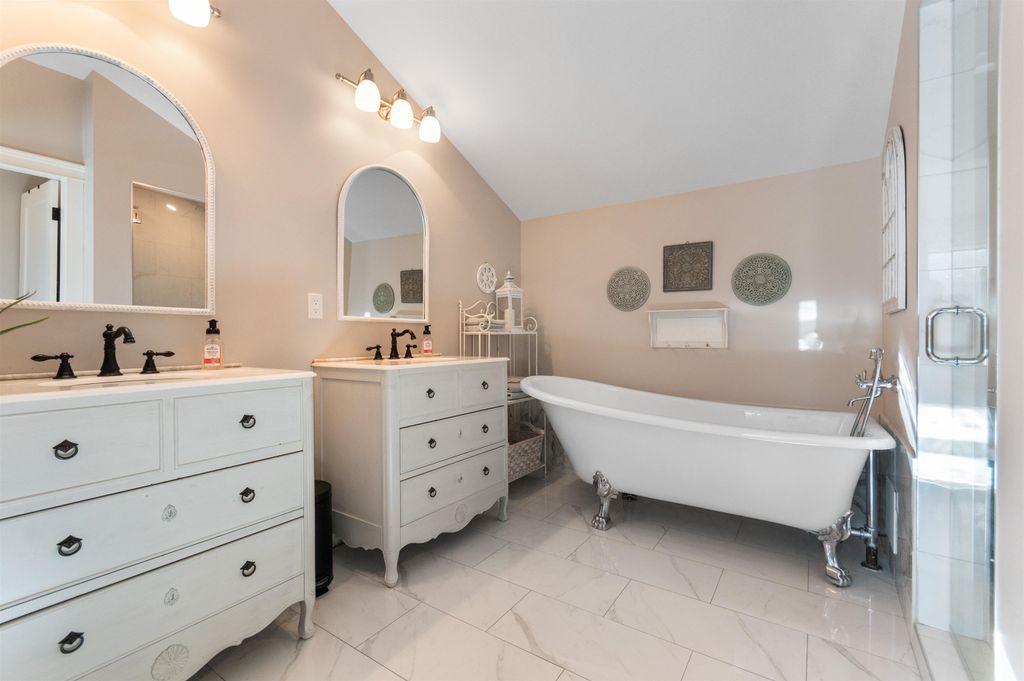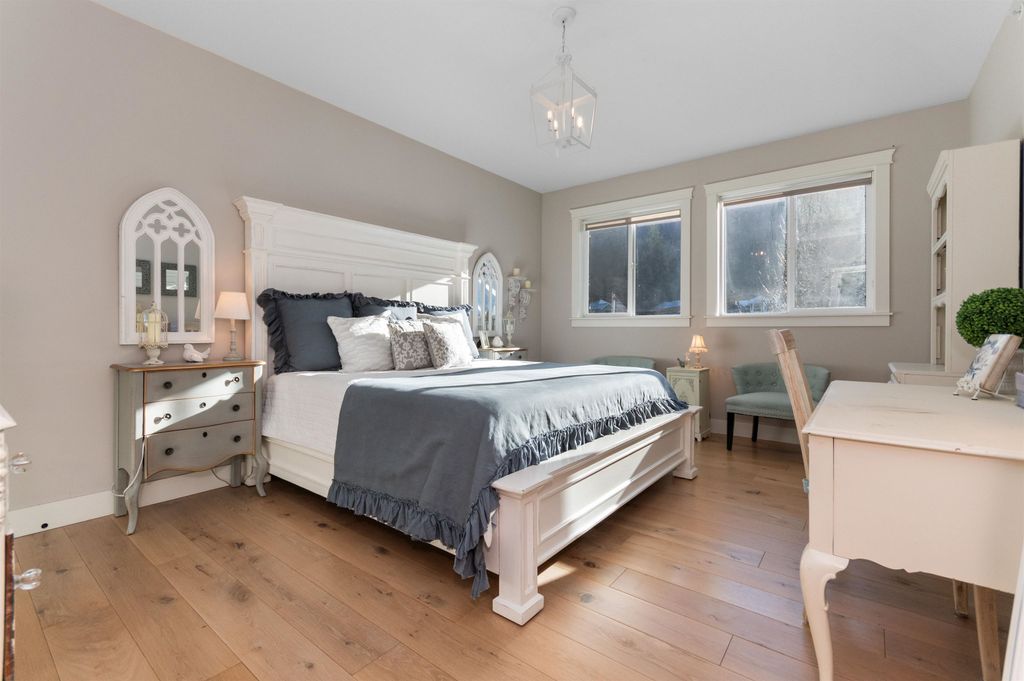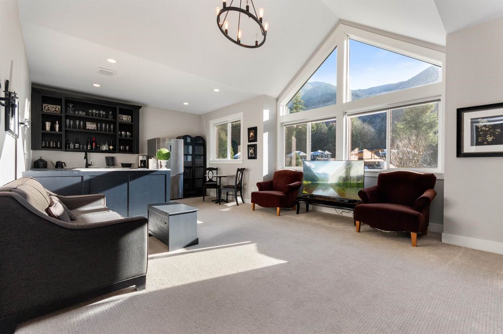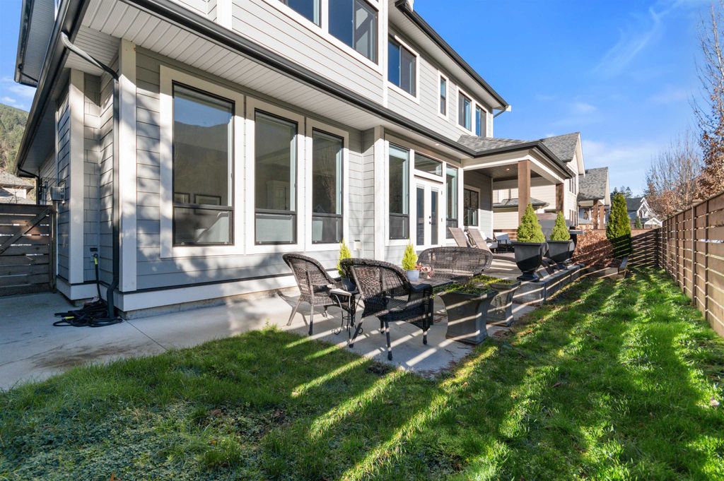 Multi-generational living potential! Located in the resort community of Aquadel Crossing steps away from Cultus Lake. This bright 4 bed luxury home offers two distinct living areas-each with a master suite & private entrance providing separation rarely found in today's market. MAIN level features a Bdrm, Den, and a high end kitchen w Restoration Hardware inspired finishes, quartz counters, dble fridge, slide outs & euro stove. UPPER level has a kitchen area, bright family room, and 3 bdrms including the master suite w/ stunning ensuite with a clawfoot tub & steam shower. Other features include a low maint yard backing onto a quiet greenspace, outdoor fireplace, A/C, Natural Gas bbq hookup & a 5ft crawl space for extra storage. Amenities include pool, hot tub, clubhouse, RV & boat storage.