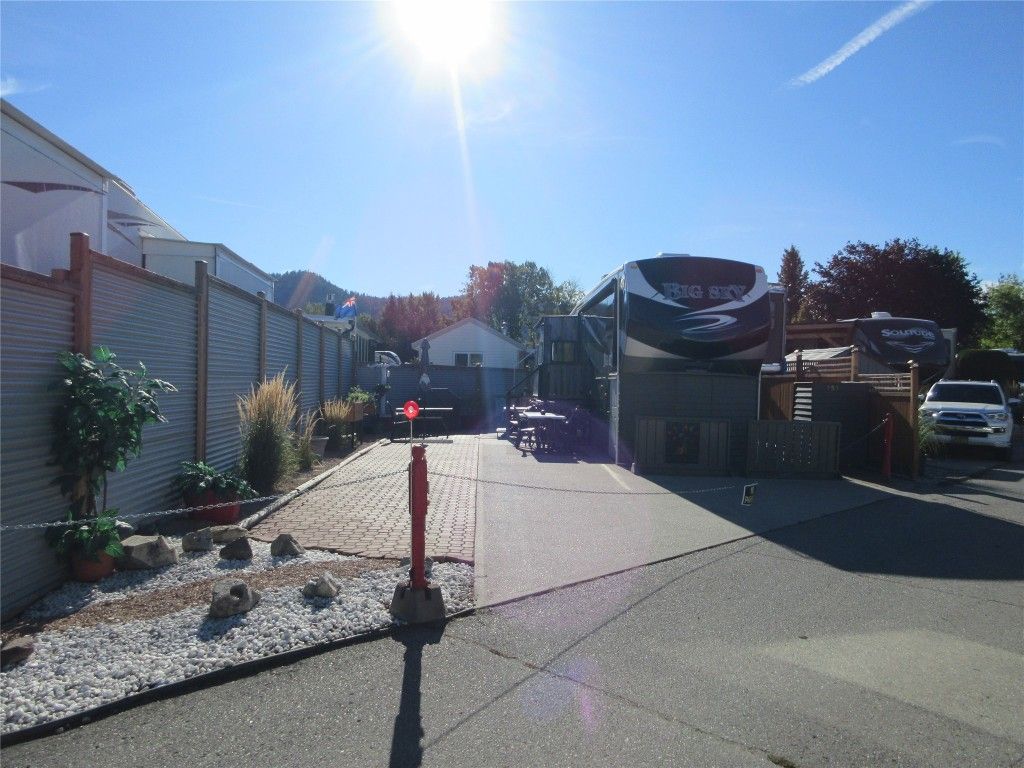 Well maintained, Standard Designated site only a short walk from the Family Activity Centre! Here you will find the outdoor pool, hot tub, shuffleboard, restaurant, children's playground and coin laundry. Completely fenced with parking for 2 vehicles and a golf cart. Lease term to 2046. Lease is registered with the Federal Government. Become involved in volunteer work within Holiday Park Resort. Enjoy all the amenities that are offered, pools, hot tubs, golf course, pickleball court, hair salon, library, gym, social events, woodworking shop and so much more. Long and short term rentals allowed. There is no property transfer tax. Minutes away from Kelowna International Airport, wineries, golf courses, Rail Trail, shopping and entertainment.