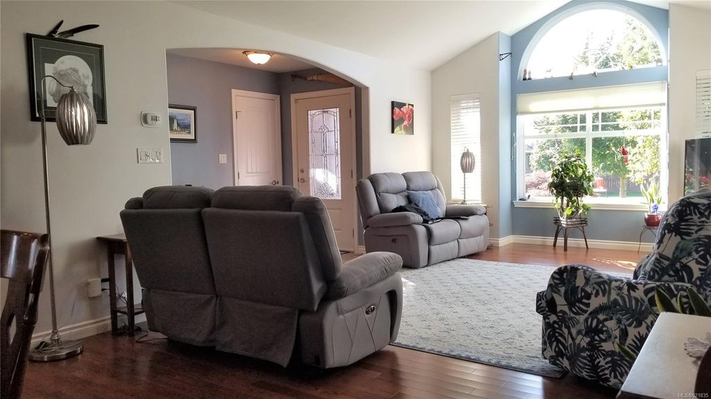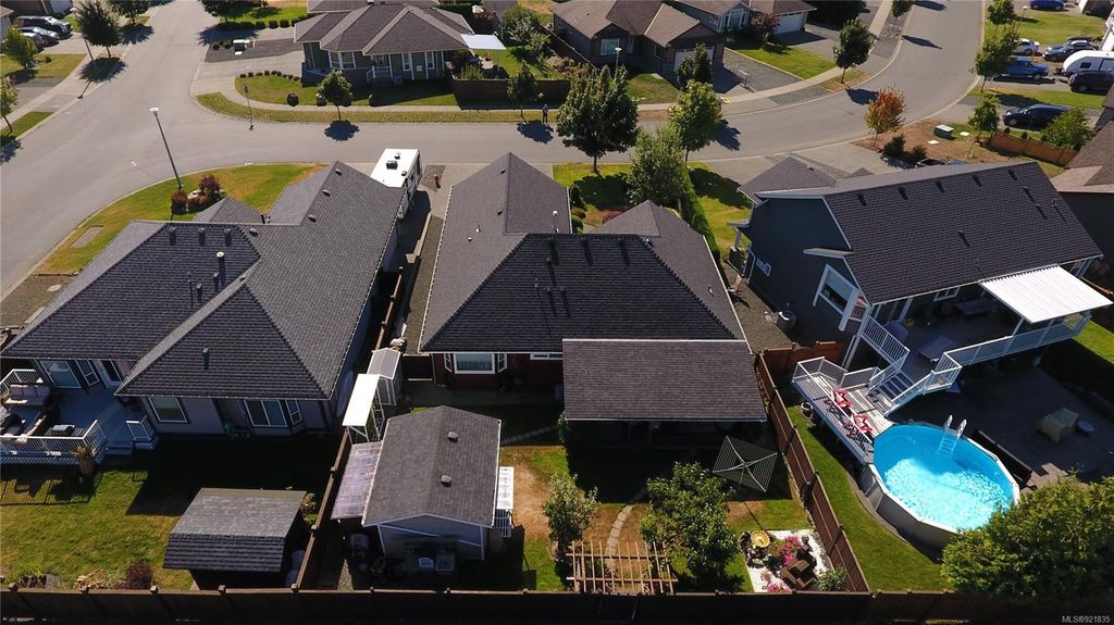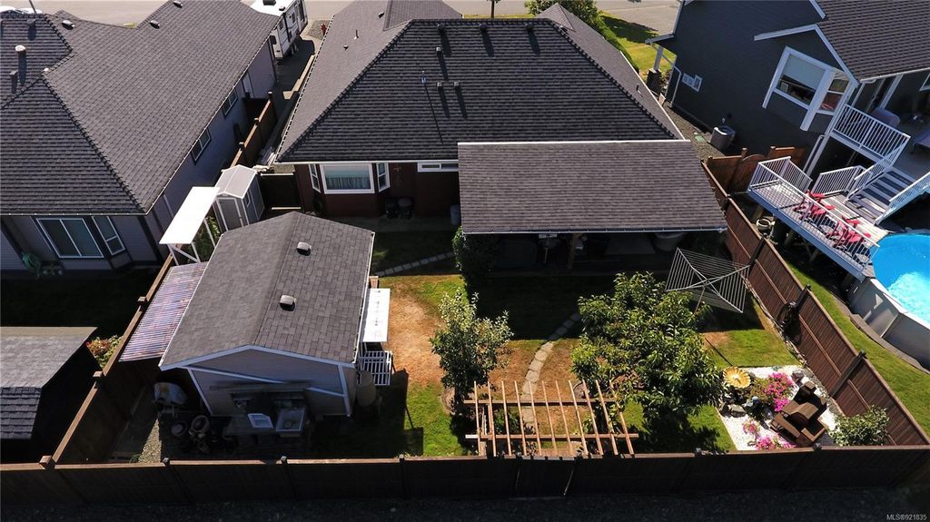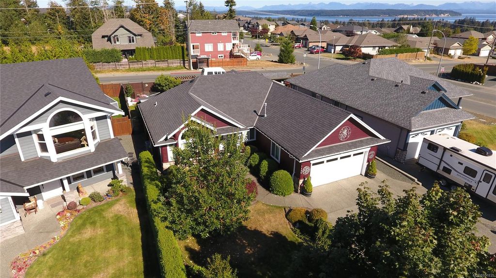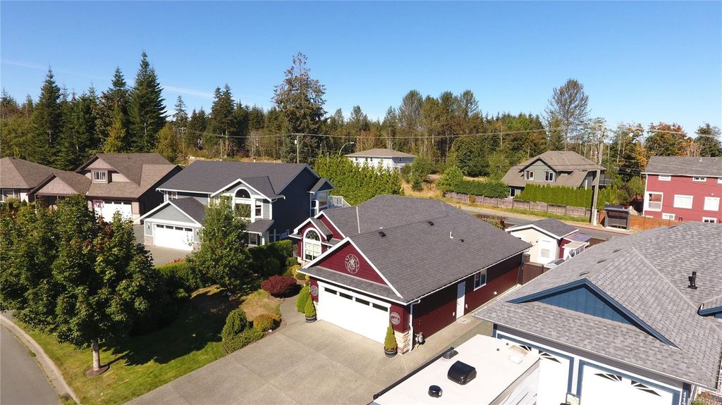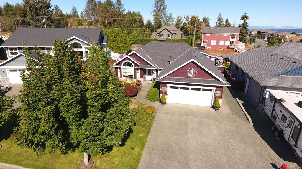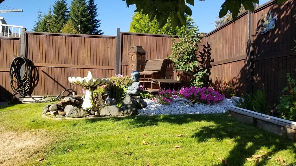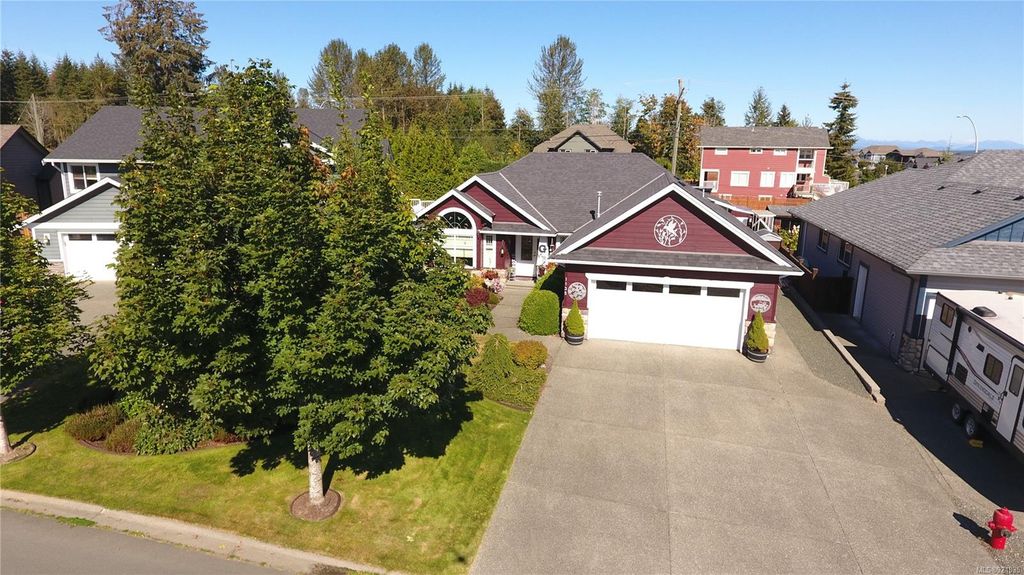 This spacious rancher, just 11 years old, is custom finished with Ash hardwood flooring over fir plywood subfloors, vaulted ceilings & custom blinds. Freshly painted inside and out, with meticulous landscaping has the curb appeal that draws the attention of everyone who drives by. Your kitchen is spacious and functional and opens to the large dining area and bright living room with vaulted ceiling, gas fireplace and high arched south-facing window. The primary bedroom features a full 4-piece ensuite and walk-in closet. The back yard oasis is fully fenced, beautifully landscaped and has a wired and insulated detached shop/shed and covered deck. This home shows like new and is located in a quiet area close to shopping, Beaver Lodge Lands and the Campbell River Airport. Priced well under assessed value.