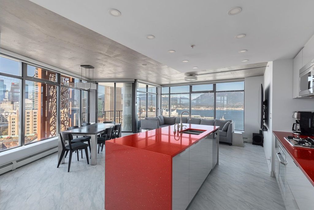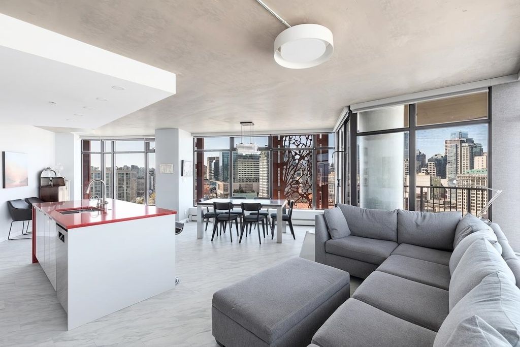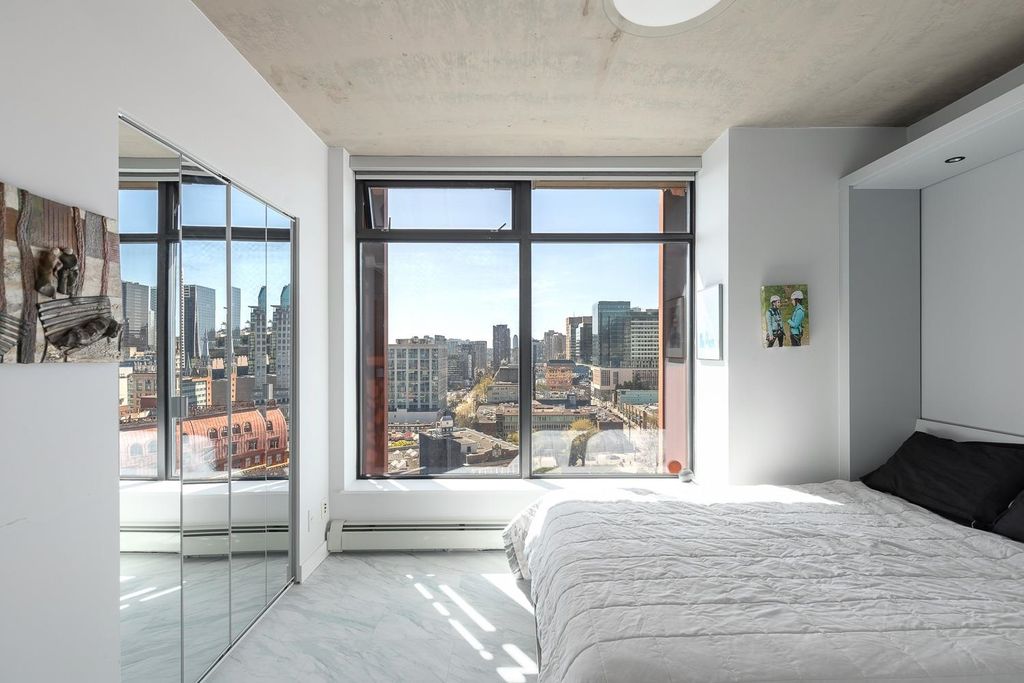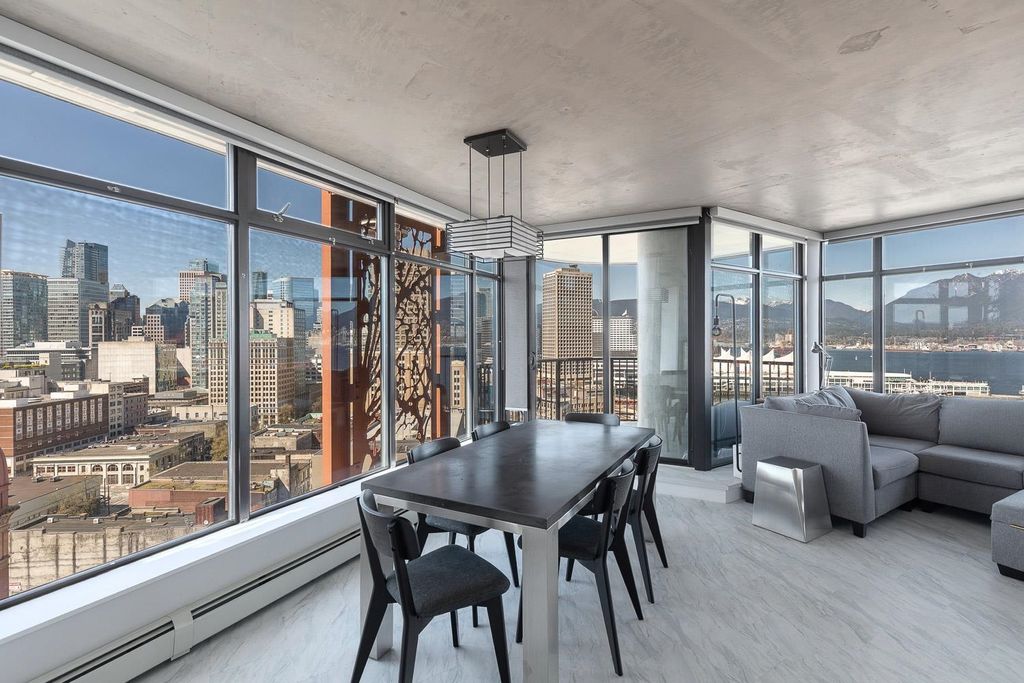 Rare northwest CORNER unit at Woodwards! Unobstructed and spectacular water, harbour, and North Shore views! This updated 2 bedroom & 2 bathroom home features new vinyl flooring, countertops, upgraded lighting, remote power blinds, custom closet inserts, and a built in bed wall unit for added style and function. Complete with 2 PARKING stalls, this is a standout opportunity in one of downtown Vancouver’s most recognizable buildings. Enjoy world class amenities, 24/7 conceirge and the building is Air BnB friendly, ideal for homeowners or investors looking to capitalize on World Cup demand!
