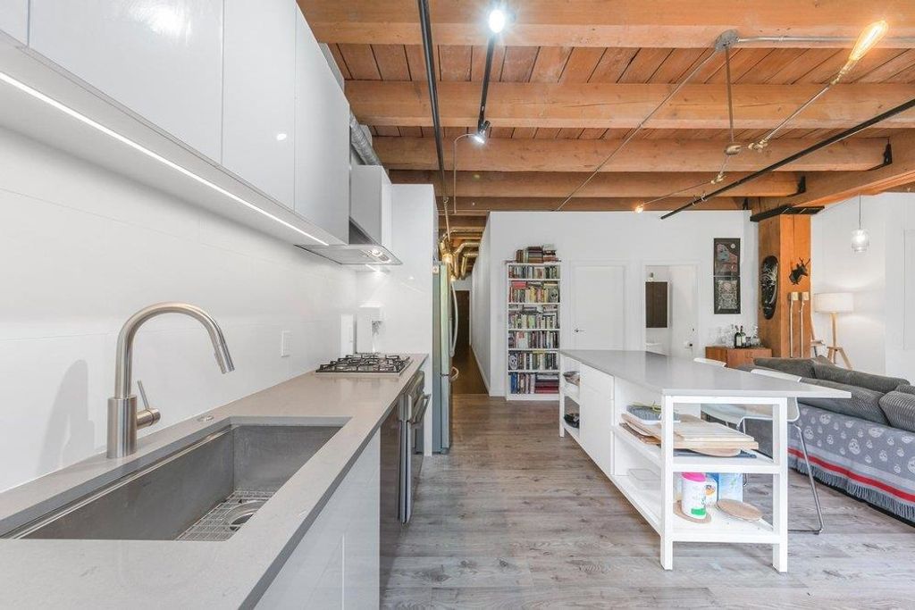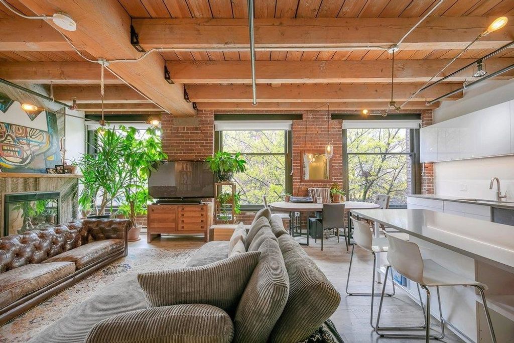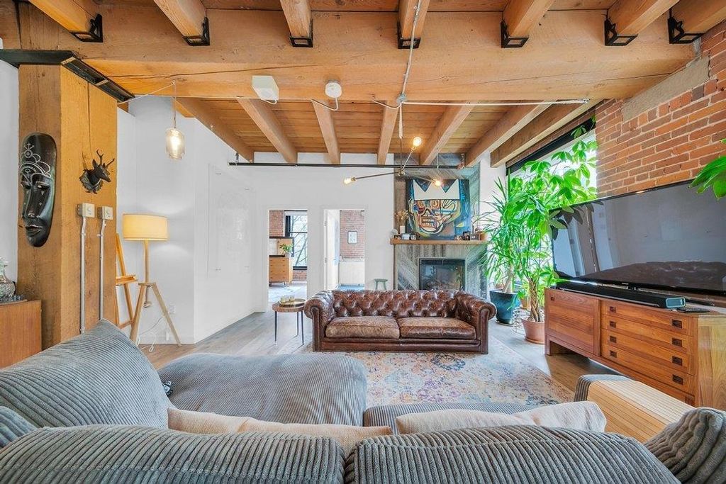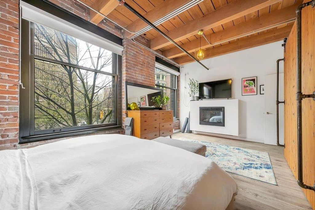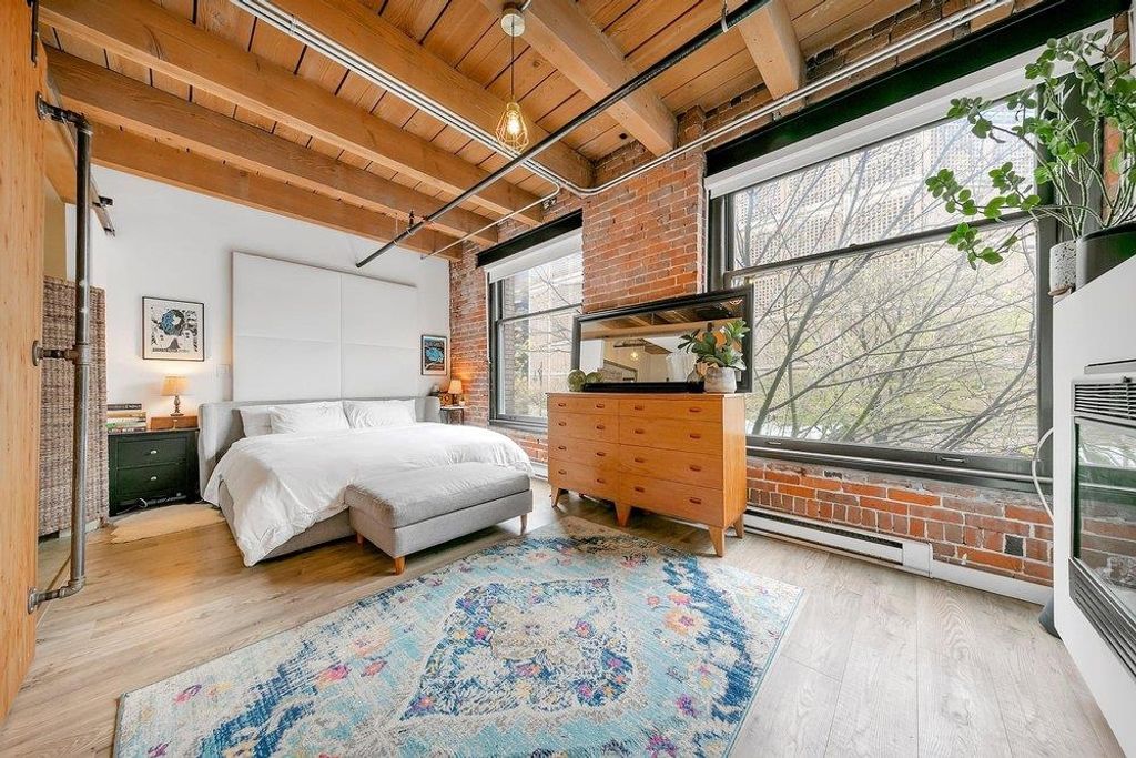 THIS IS IT. A RENOVATED NYC inspired loft that has it ALL. STYLE, SPACE & FUNCTION. Soaring 10'4 ceilings with huge timber beams/brick feature walls, a corner unit surrounded by 7' windows flooding in natural light/air and a nearly perfect 2 BR layout with huge office (could use as 3rd bedroom). Lovingly renovated, design cues and sophistication are evident at every angle. New kitchen/cabinets/appliances & beautiful dining area look over the expansive living room. The master suite is stunning, including a walk in closet, free standing claw-foot tub/shower and fireplace, Right in the heart of Gastown, live/work zoning steps from shopping/restaurants. Best private parking spot in the building too...