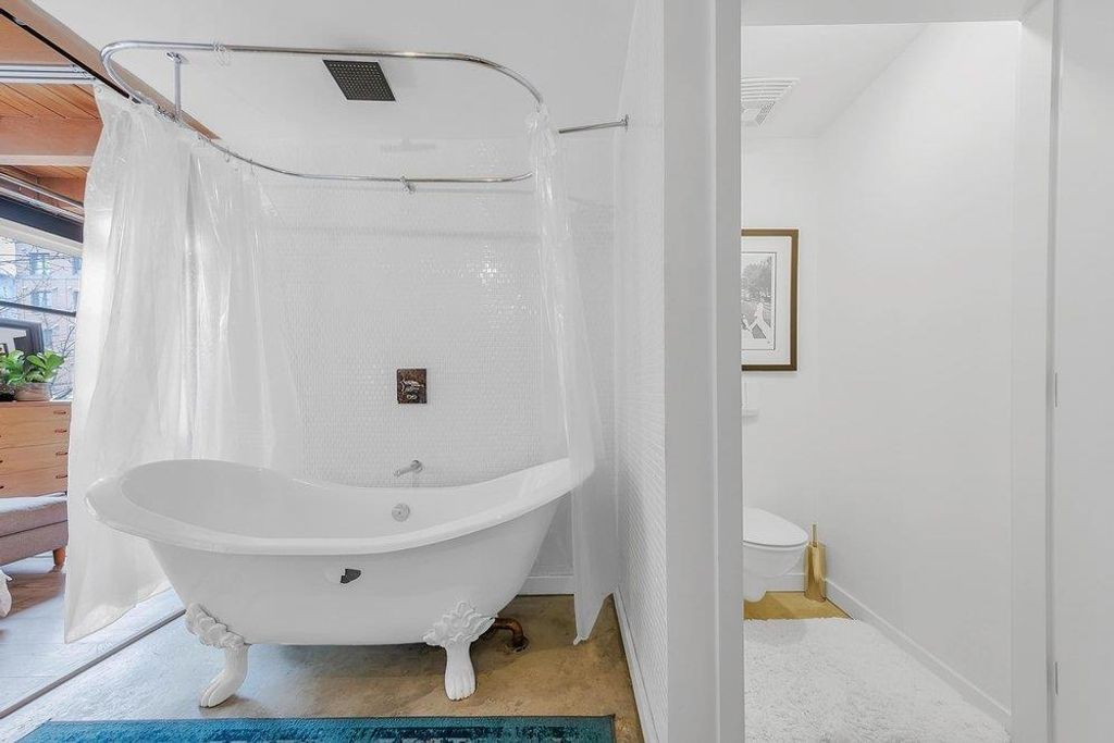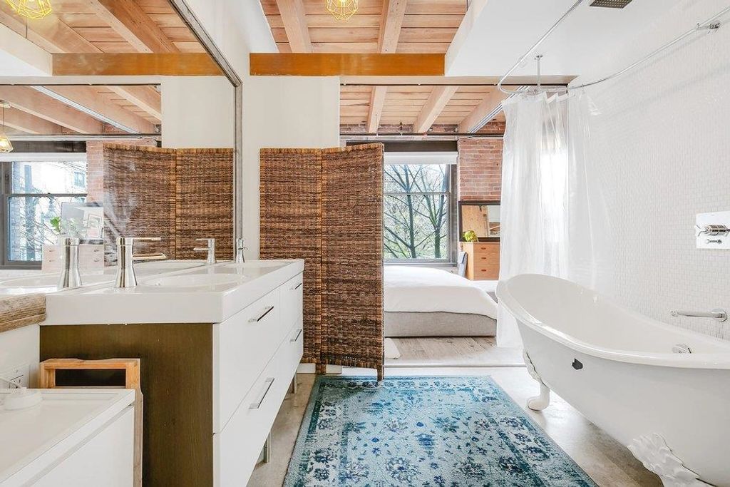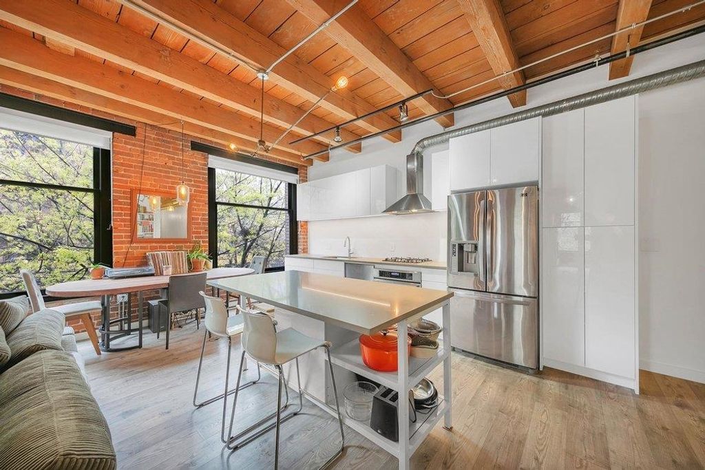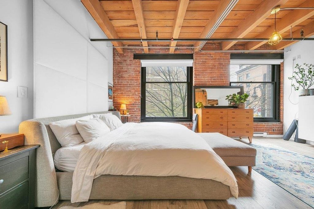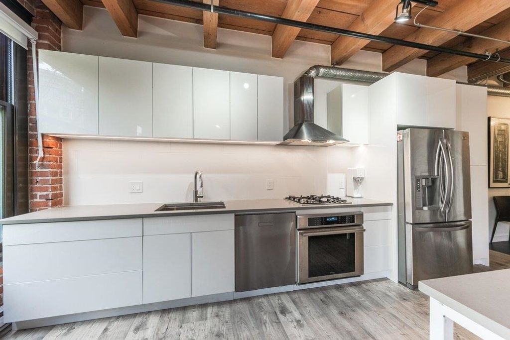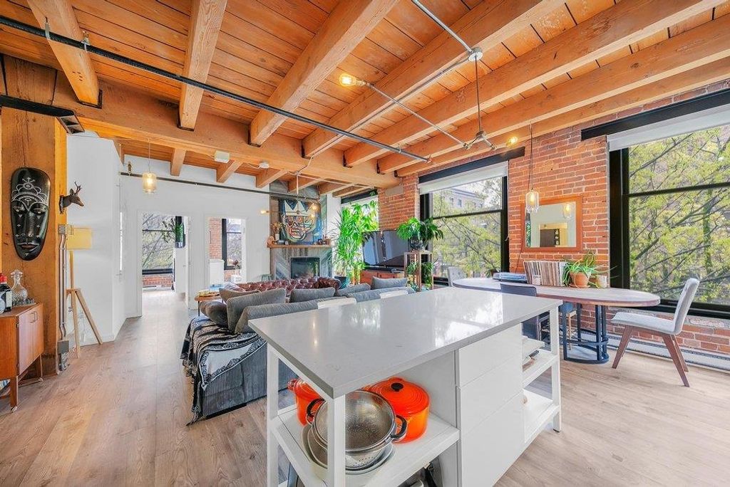 THIS IS IT. A RENOVATED NYC inspired loft that has it ALL. STYLE, SPACE & FUNCTION. Soaring 10'4 ceilings with huge timber beams/brick feature walls, a corner unit surrounded by 7' windows flooding in natural light/air and a nearly perfect 2 BR layout with huge office (could use as 3rd bedroom). Lovingly renovated, design cues and sophistication are evident at every angle. New kitchen/cabinets/appliances & beautiful dining area look over the expansive living room. The master suite is stunning, including a walk in closet, free standing claw-foot tub/shower and fireplace, Right in the heart of Gastown, live/work zoning steps from shopping/restaurants. Best private parking spot in the building too...