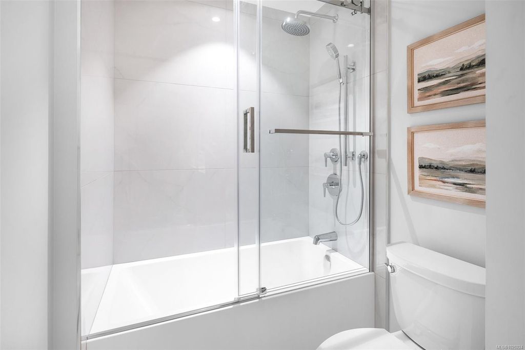Wake up every morning to ocean views from your bedroom in Unit 208 at Tiller & Grace, an elegant east-facing 1-bedroom plus den residence by GT Mann. Inside, the thoughtfully designed open-concept layout offers generous space for both living and dining, anchored by a chef-inspired kitchen with a premium appliance package including a WOLF induction cooktop and oven, panelled Fisher & Paykel fridge/freezer, and Fisher & Paykel drawer dishwashers. Custom millwork by Harbour City Kitchens showcases rift-cut white oak veneer cabinetry and solid birch dovetail drawers, blending beauty with functionality. Enjoy year-round comfort with air conditioning, and relax on the east-facing balcony offering ocean views and an open-air feel. Unit 208 is a beautifully appointed home for those seeking refined design, coastal outlooks, and enduring craftsmanship. Ideally located in the heart of Cordova Bay, you are just steps from the beach, Mattick’s Farm, and the Cordova Bay Golf Course.