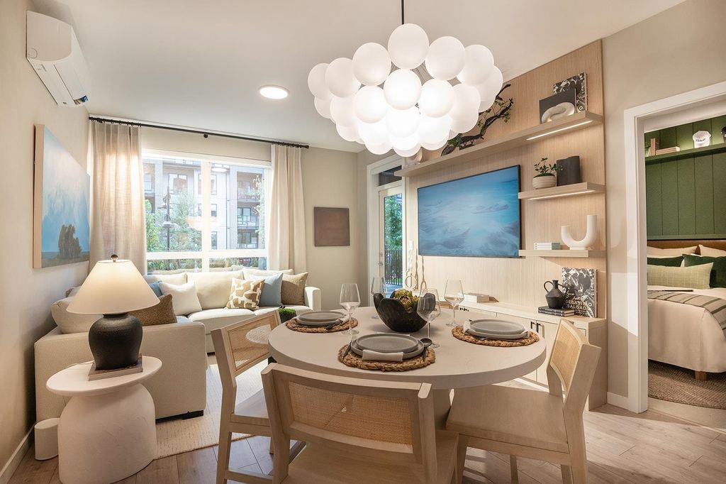 CORNER 2 BEDROOM + DEN! Enjoy the convenience of being close to it all at Skylark by Polygon. Live steps from a neighbourhood park and a short walk from the Burquitlam SkyTrain Station, which connects you quickly to shopping, dining, and more. Home 110 is a fantastic opportunity, offering 1,170 square feet of thoughtfully designed corner living. This home is filled with natural light and features a spacious patio that extends your living space outdoors. At the heart of the home is a beautiful kitchen with an island, perfect for gathering and entertaining. The main bedroom serves as a private retreat, complete with a walk-in closet and a spa-inspired ensuite featuring dual sinks, a rain showerhead, hand-held wand, and integrated bench seating. We are open 12pm - 5pm daily, except Friday.
