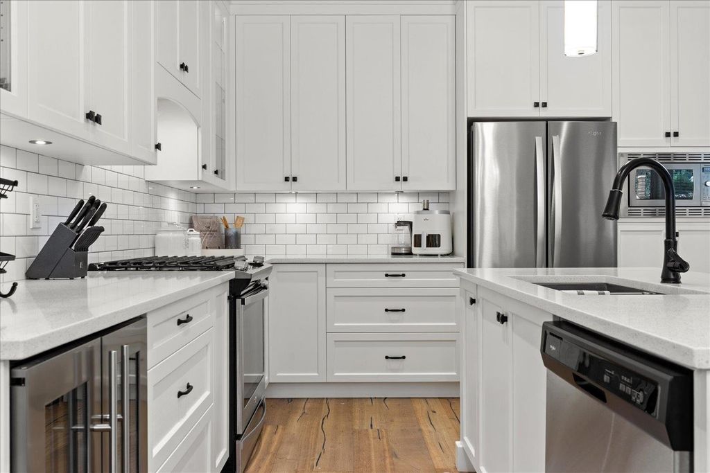 This stunning home blends modern farmhouse charm with elevated design. Showcasing vaulted shiplap ceiling, wide-plank hardwood, and barnwood sliding doors! Situated on a spacious corner lot this 2,338 SF 3bed + den and loft 2.5bath home has a main level open-concept design perfect for comfortable living and entertaining. Chef-inspired kitchen has quartz counters, custom cabinetry, and s/s appliances. Primary suite on the main includes a walk-in closet and ensuite. Laundry room on the main level. Upstairs 2 beds & loft. Covered deck w/ fireplace. Creekside Mills is a gated community surrounded in nature offering a resort-inspired lifestyle featuring a clubhouse, outdoor pools, hot tub, fitness centre, sports court, community gardens & scenic walking trails. You'll love living here!