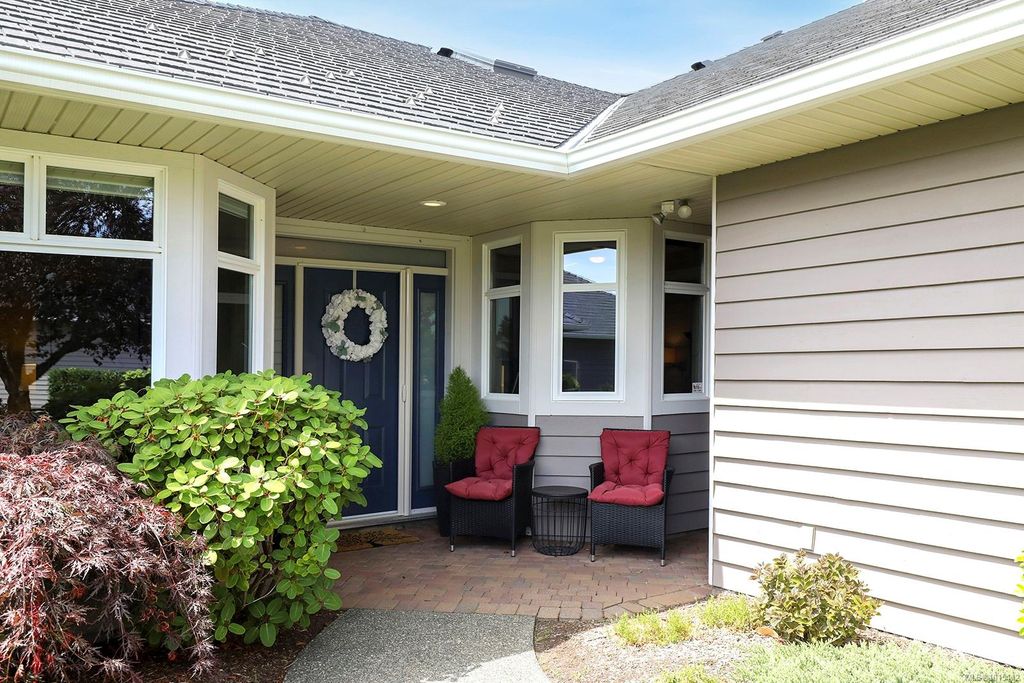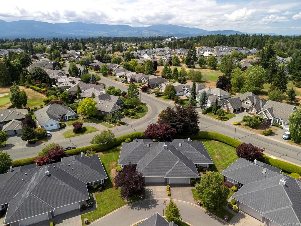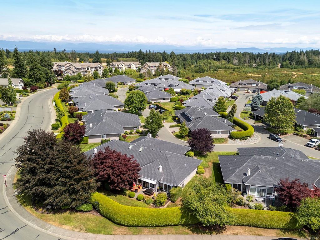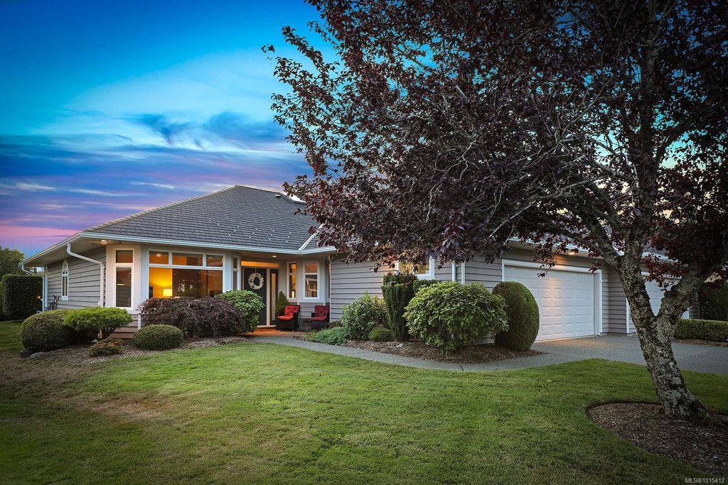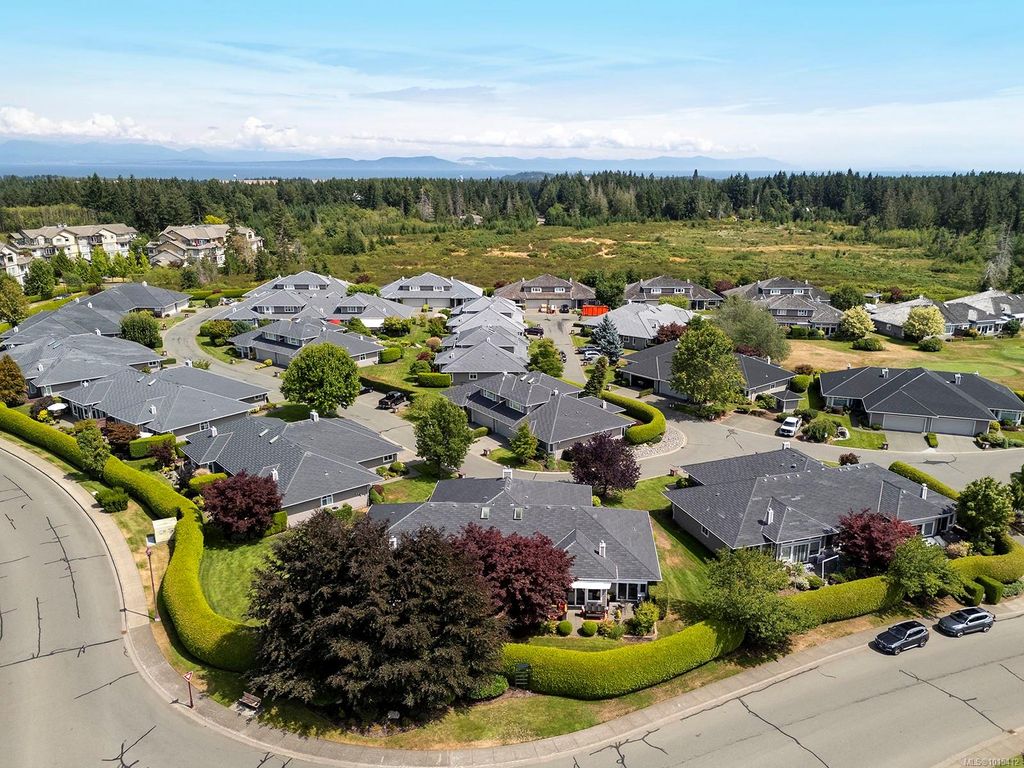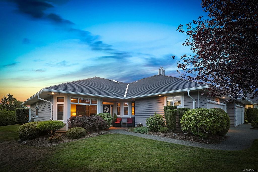 Stunning premier patio home privately located in Britannia Place, an exclusive gated community in Crown Isle Golf Resort. This luxurious one level home of 1,813 sf, 2 BD/ 2 BA plus den has been beautifully updated over the years. Boasting 11’ ceilings in the Great room, maple engineered hardwood, Terra Cotta tile, spectacular kitchen, modern lighting, all trim updated to flat stock, TDBU blinds, skylights, gas fireplace – 2024, H/W on demand – 2021, and a new 50 yr rubber composite roof. Spacious kitchen with contrasting cabinets, gorgeous granite countertops, Fischer Paykel fridge & wall oven, Asko dishwasher, Kitchen Aide cooktop, an island with seating. Adjacent sitting area shares the cozy 2-sided fireplace and a view of the private west exposure patio with gorgeous gardens and 2 awnings w/ drop down sunshade. The primary suite offers a peaceful retreat with bay window seat, storage & built in shelving, lovely 4 pce ensuite w/ 2 sinks & frameless glass & tiled shower. 2 car garage