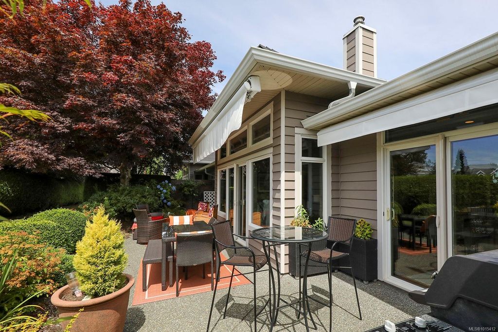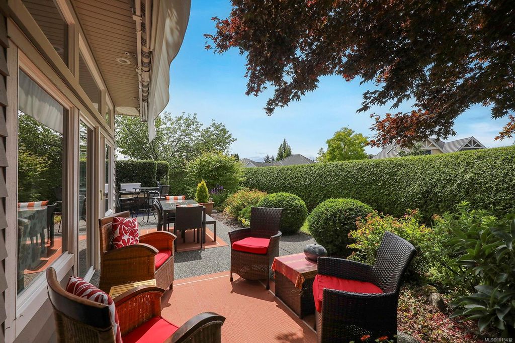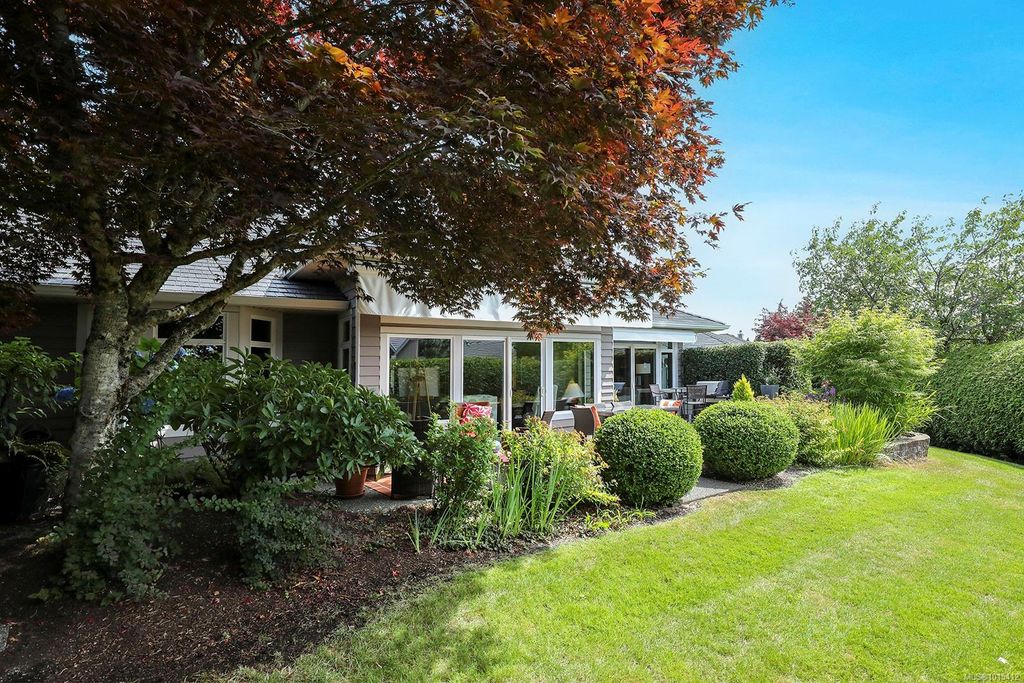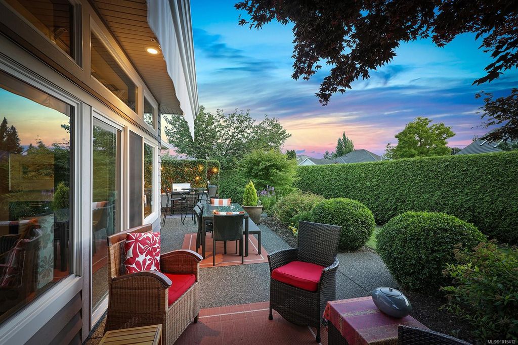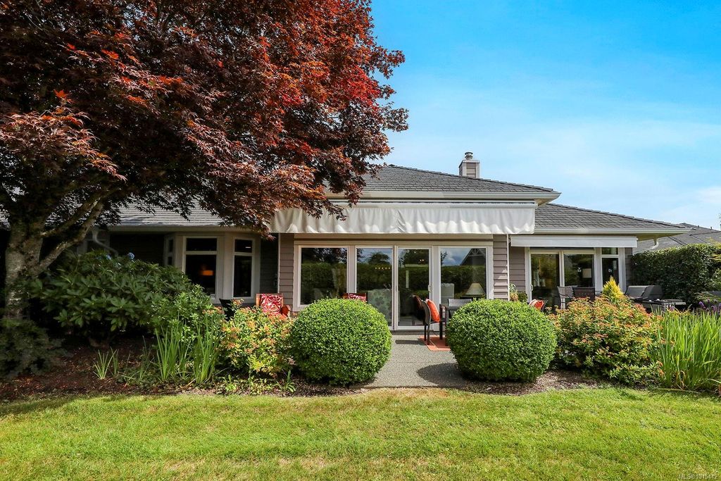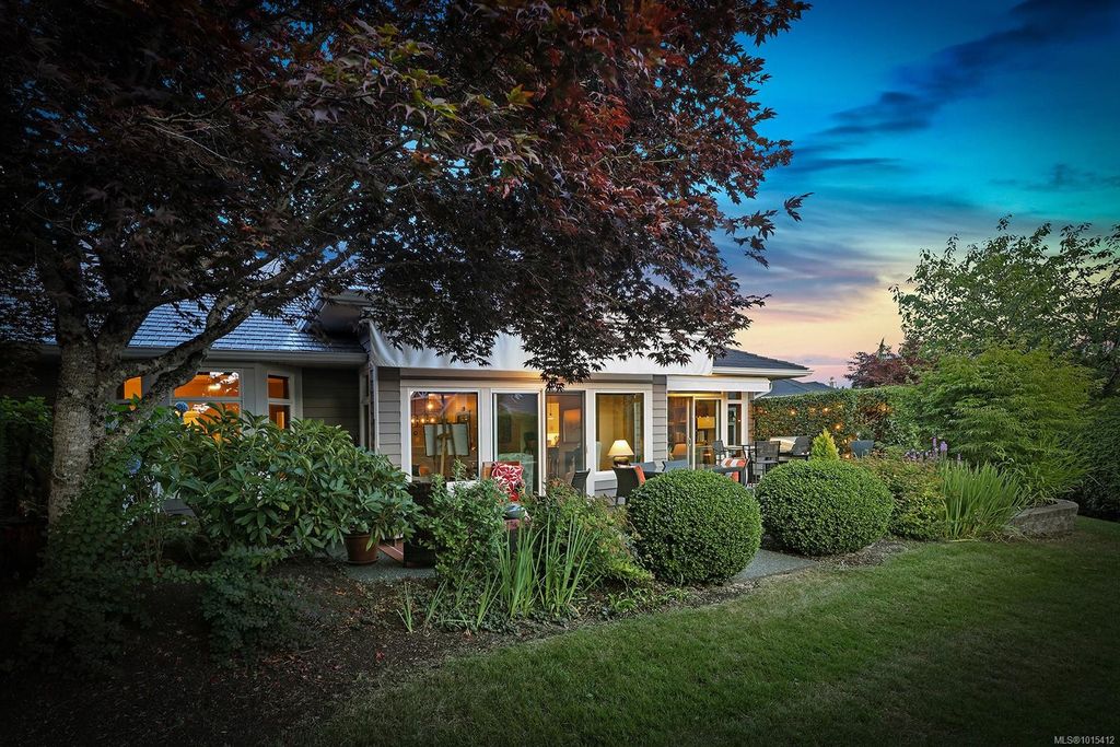 Stunning premier patio home privately located in Britannia Place, an exclusive gated community in Crown Isle Golf Resort. This luxurious one level home of 1,813 sf, 2 BD/ 2 BA plus den has been beautifully updated over the years. Boasting 11’ ceilings in the Great room, maple engineered hardwood, Terra Cotta tile, spectacular kitchen, modern lighting, all trim updated to flat stock, TDBU blinds, skylights, gas fireplace – 2024, H/W on demand – 2021, and a new 50 yr rubber composite roof. Spacious kitchen with contrasting cabinets, gorgeous granite countertops, Fischer Paykel fridge & wall oven, Asko dishwasher, Kitchen Aide cooktop, an island with seating. Adjacent sitting area shares the cozy 2-sided fireplace and a view of the private west exposure patio with gorgeous gardens and 2 awnings w/ drop down sunshade. The primary suite offers a peaceful retreat with bay window seat, storage & built in shelving, lovely 4 pce ensuite w/ 2 sinks & frameless glass & tiled shower. 2 car garage