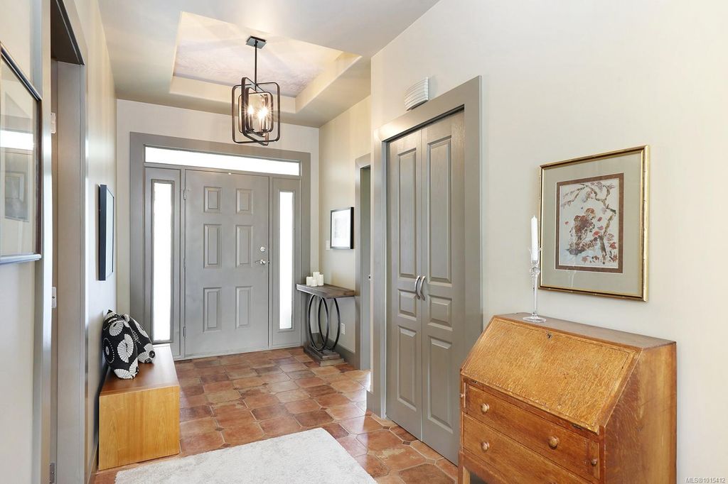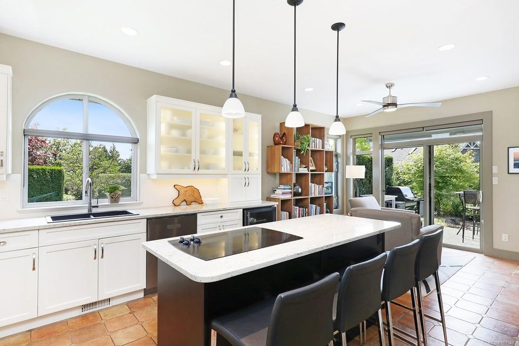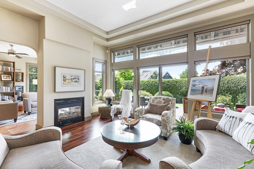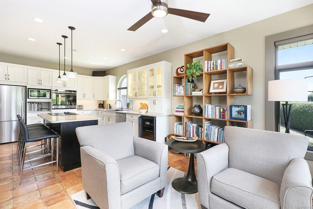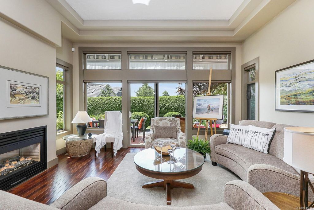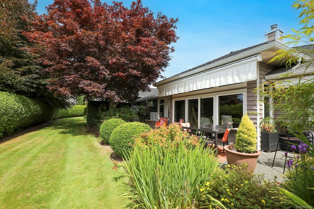 Stunning premier patio home privately located in Britannia Place, an exclusive gated community in Crown Isle Golf Resort. This luxurious one level home of 1,813 sf, 2 BD/ 2 BA plus den has been beautifully updated over the years. Boasting 11’ ceilings in the Great room, maple engineered hardwood, Terra Cotta tile, spectacular kitchen, modern lighting, all trim updated to flat stock, TDBU blinds, skylights, gas fireplace – 2024, H/W on demand – 2021, and a new 50 yr rubber composite roof. Spacious kitchen with contrasting cabinets, gorgeous granite countertops, Fischer Paykel fridge & wall oven, Asko dishwasher, Kitchen Aide cooktop, an island with seating. Adjacent sitting area shares the cozy 2-sided fireplace and a view of the private west exposure patio with gorgeous gardens and 2 awnings w/ drop down sunshade. The primary suite offers a peaceful retreat with bay window seat, storage & built in shelving, lovely 4 pce ensuite w/ 2 sinks & frameless glass & tiled shower. 2 car garage