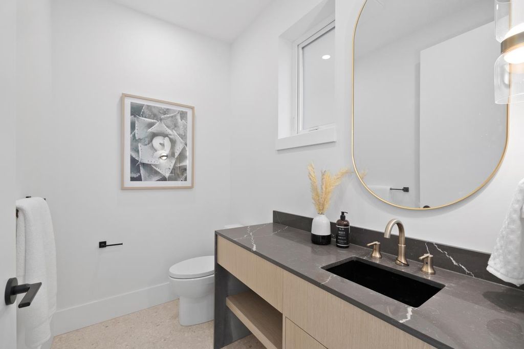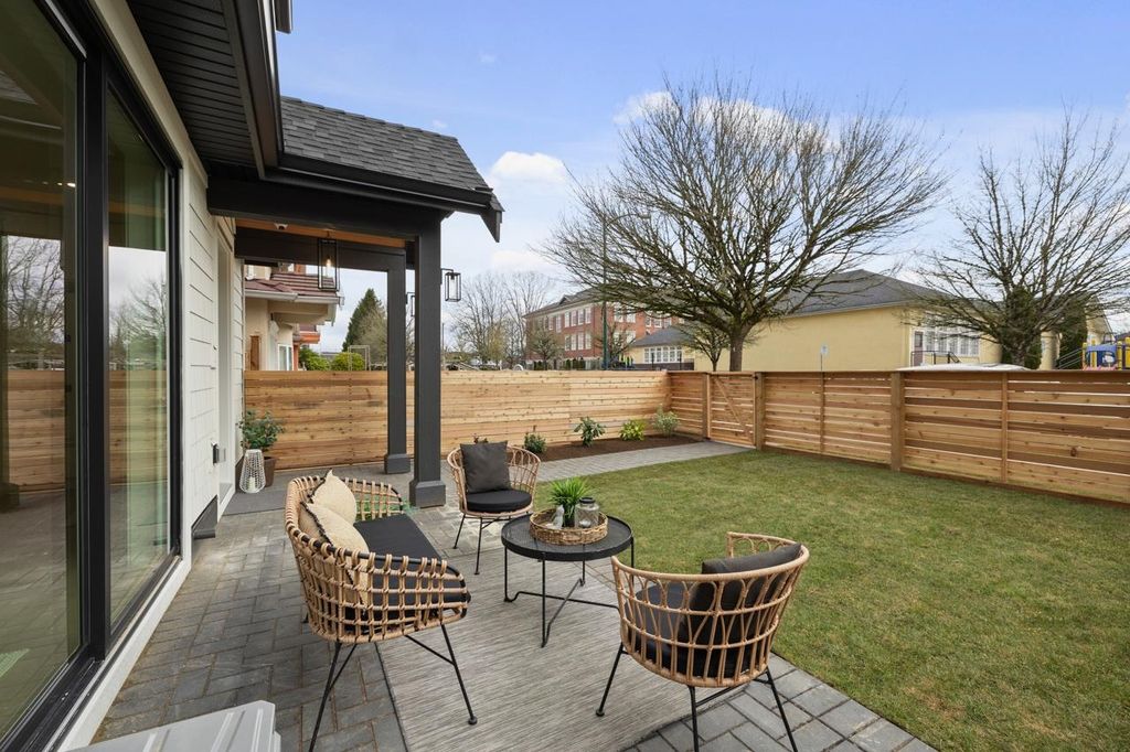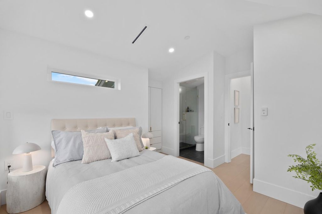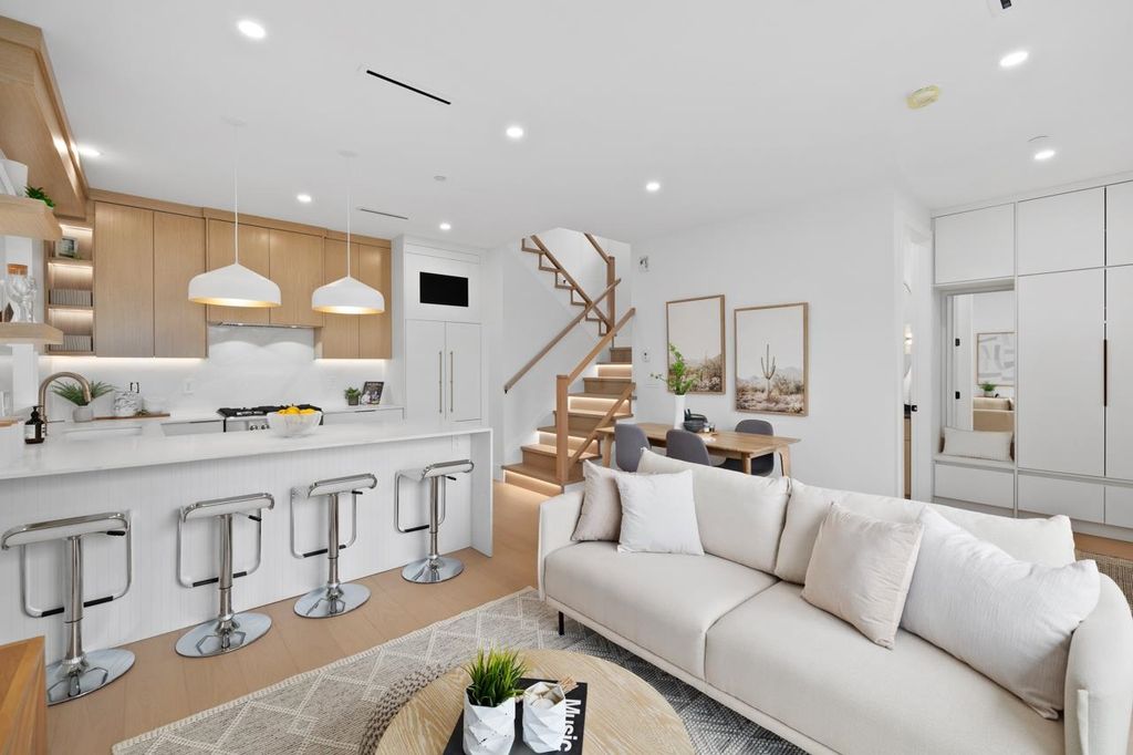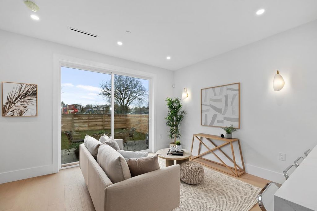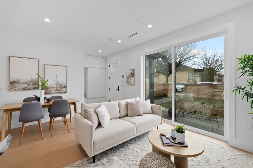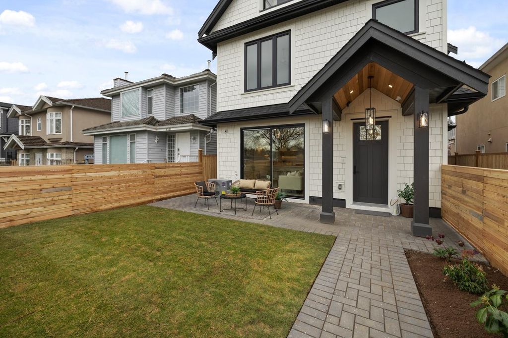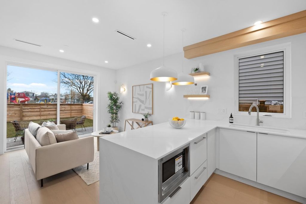 Discover a stunning new 3-bed, 3.5-bath ½ duplex in Vancouver’s sought-after Cedar Cottage area. Luxurious finishes shine throughout, from the spacious kitchen with Fisher & Paykel appliances, quartz counters, and dinning area, to the living room with patio doors for seamless indoor/outdoor living. Upstairs the primary bedroom boasts a walk through closet and ensuite with a walk-in shower and custom niche. A versatile upper-level space can be a third bedroom, office, or gym. Stay comfortable with an energy-efficient heat pump for heating and cooling, and enjoy added security, a 2-5-10 warranty, covered parking with EV capability. Elegance meets function at a great price!