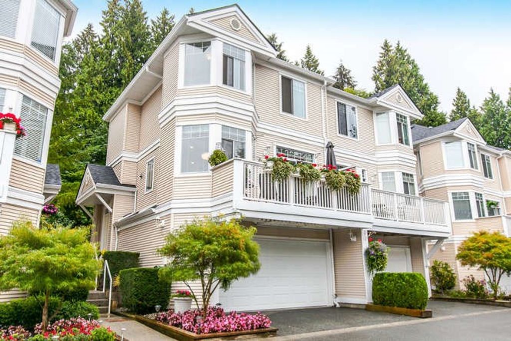 Welcome to this spacious semi-detached townhouse in the Deerfield complex where units are rarely available! This 4 bed, 2.5 bath home boasts over 1750 sq. ft with attached 2 car (side by side) garage. One of the best locations with greenbelt & extra green space to enjoy the patio. Superb floorplan with open kitchen, eating area, family room, dining & living room on main with 9' ceilings & crown moulding. Upstairs has 3 bedrooms, 2 baths where Master (with ensuite) has window bench & greenbelt view. Great pool, hot tub, fitness centre, walking trails at your doorstep, Robert Burnaby Park, schools, transit, shopping...everything nearby! New roof, pets/rentals allowed with restrictions. Must see to appreciate!