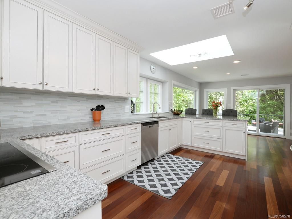 Welcome to Treetops, a perfect family home in fabulous Cordova Bay Ridge! The breathtaking & private park-like setting will impact you as you enter. Nestled amongst mature trees w/ huge windows, this home truly captures the outdoors. Boasting a fabulous open floor plan w/ huge custom kitchen, Brazilian Cherry floors, gas fireplace & 3 huge outdoor decks, this is the perfect entertaining home. Gorgeous & completely renovated w/ new kitchen, 4 new baths, new heat pump system, decks resurfaced, new windows & so much more. The lower floor hosts a great family room, 4 spacious beds & 3 baths including a magnificent master ensuite oasis. A double garage & low maintenance yard complete the package. This home is a must see!
