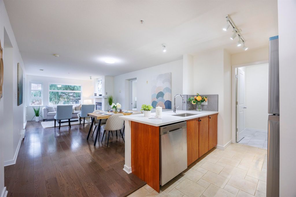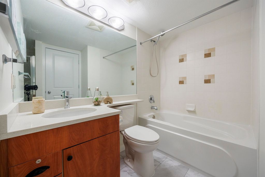 Sought-after and family-friendly neighborhood! Built by Intracorp ! This south-facing two-bedroom home offers airy ambiance and a spacious balcony. The open-concept, functional layout features a cozy gas fireplace, perfect for relaxing evenings. The bedrooms on separated sides, providing excellent privacy. The recent updates add a fresh, modern touch—new paint, quartz countertop, new sink & faucet, new vinyl flooring in bathroom and storage room. Located in the catchment for Marlborough Elementary, which offers both earlier and later French Immersion Programs. Convenient access to public transit, Metrotown, Highway 1, fitness world, restaurants and the serene trails of Deer Lake — practically your extended backyard. Don’t miss this one! Open House: Sunday Nov. 30, 2-4PM.