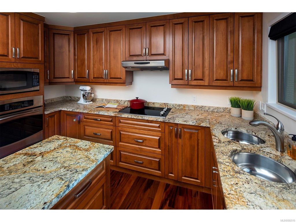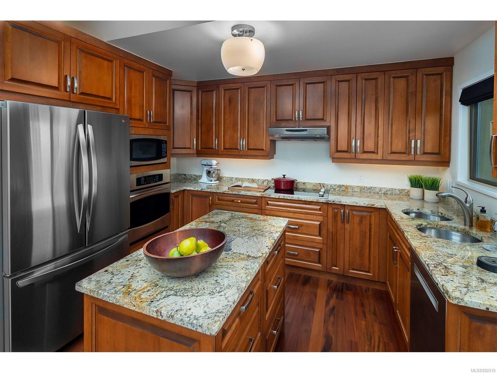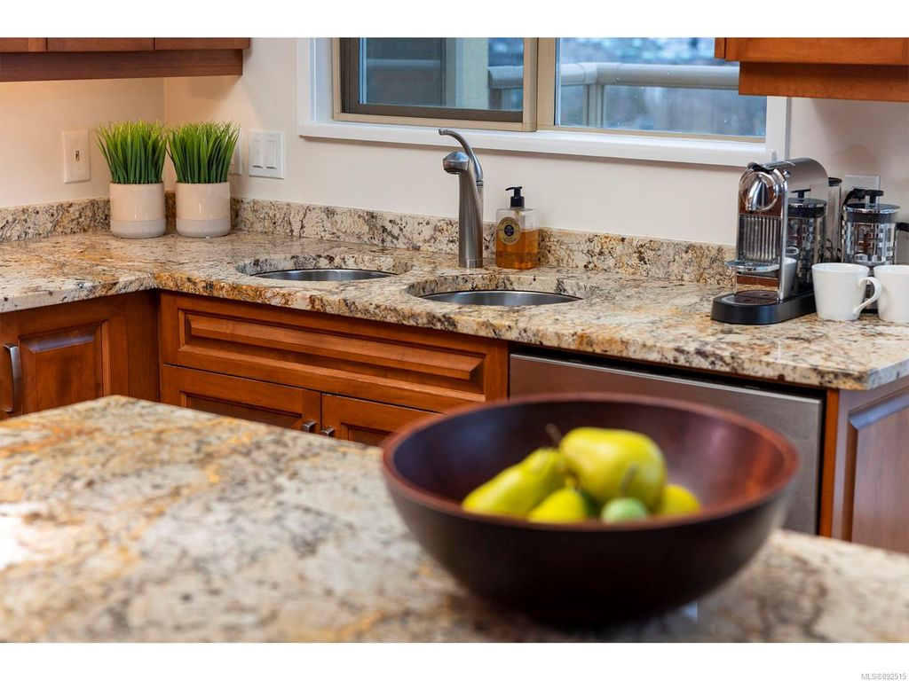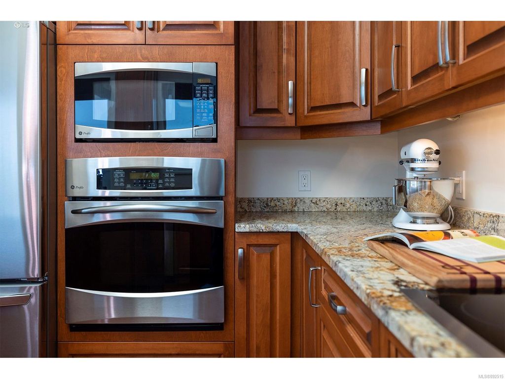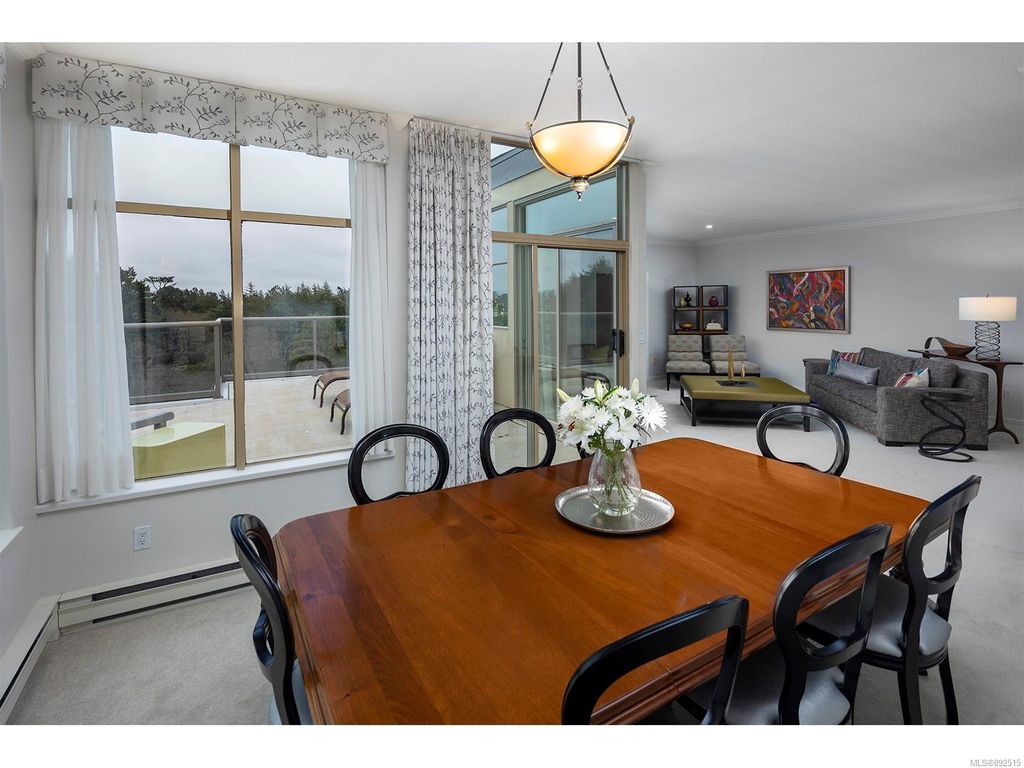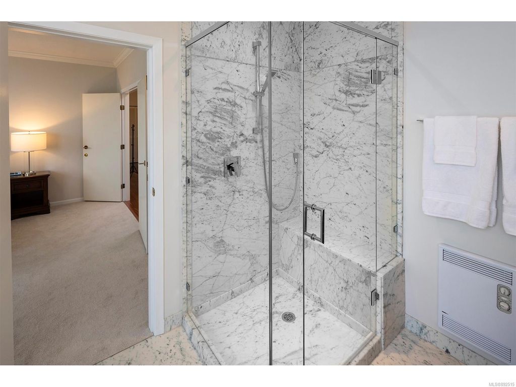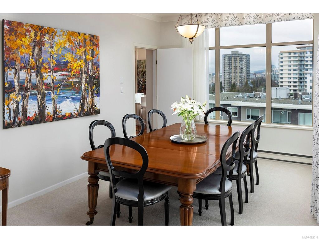 Steps from the ocean & Beacon Hill Park! This 2049sqft penthouse offers a spacious, bright and open floorplan with 9' ceilings, oversized windows, new flooring & fresh paint...and gorgeous views that pan from the Olympic Mountains, to Haro Strait, to Beacon Hill Park, to the legislative buildings & around to Ogden Point; the night scape is a fascinating mix of city lights and exotic sunsets. Inside you will find two generously sized bedrooms, both w/updated ensuite bths, private balconies & plenty of closet space. The kitchen has been renovated with cherry cabinets, granite counters, engineered wood flooring, stainless steel appliances, and walk-in pantry. The living room w/cozy gas fireplace will accommodate large-scale furniture, and a huge office/den overlooks the park. 4 decks offer over 500 square feet, and all principal rooms have access to outside space. The building offers hobby/social rms, storage locker, and TWO secure underground parking stalls.....a very special offering!