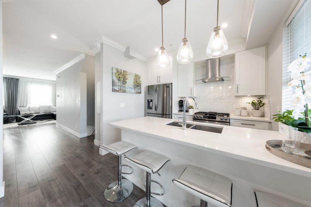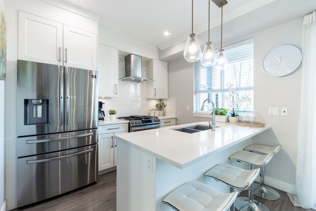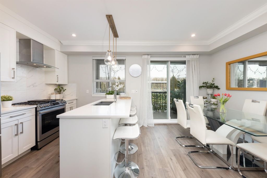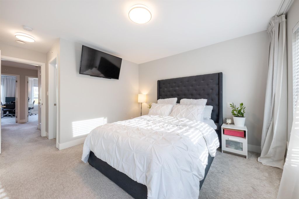 Welcome to Stanley Green, centrally located in the desirable Queensborough neighborhood. This elegant 3BED 3BATH (Bonus: portable Flex room) townhouse features an open concept kitchen with soft-close shaker cabinetry & quartz countertops. Stainless-steel appliances, Balcony with gas hookup for your morning coffee or BBQ parties with friends and family. Other features include energy efficient radiant floor heating, modern light fixtures, 9" high ceilings on main floor, plush carpet & hardwood laminate flooring throughout. Private double garage with an additional storage area. Fenced in yard perfect for your fur babies. Steps to Riverfront Trail, Queensborough Landing Shopping Mall, Walmart & restaurants. 2-5-10 Warranty. Pets friendly, Rentals Allowed. Open House on March 8/9 at 2-4pm.