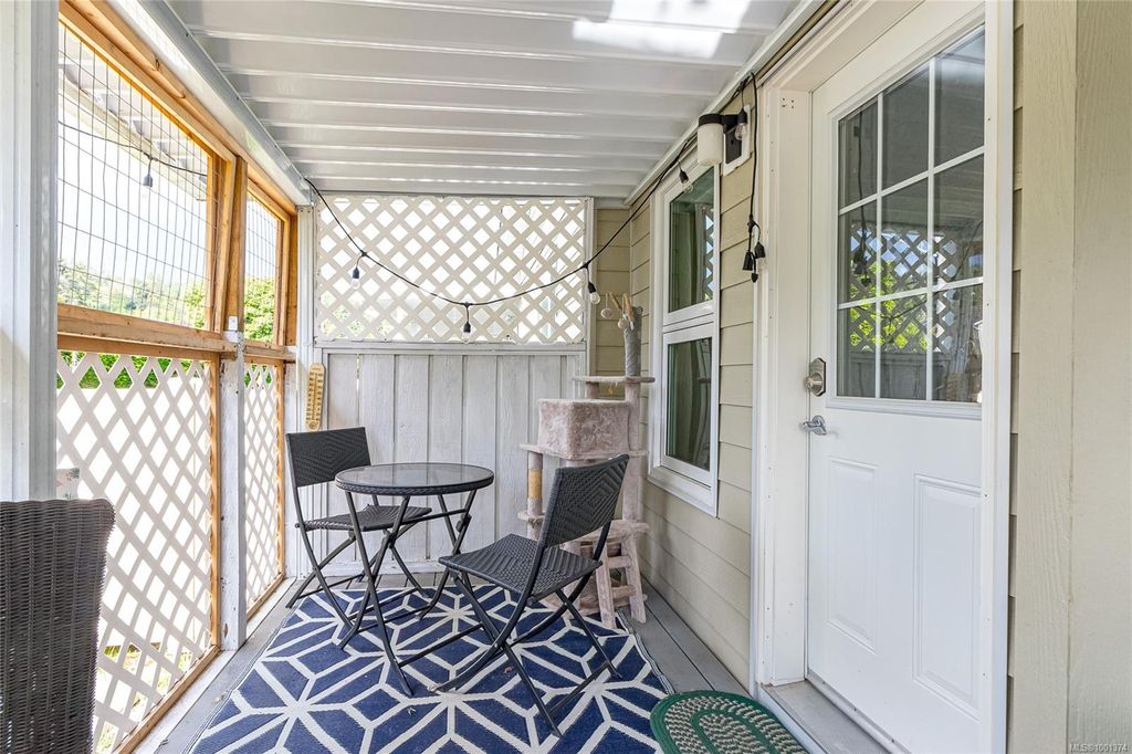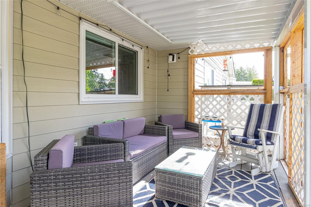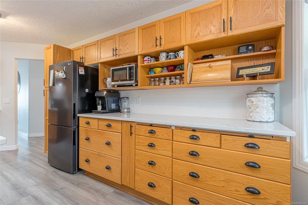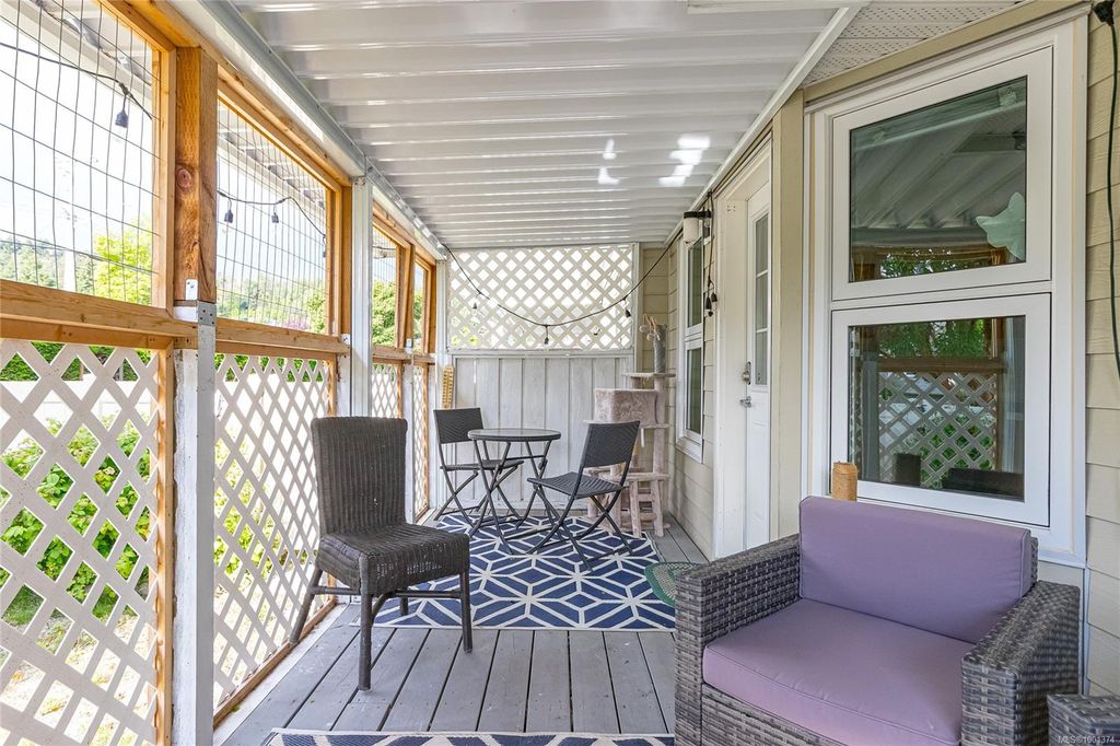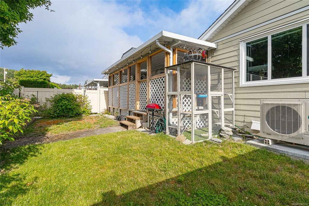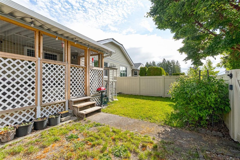 Welcome to Colonia Gardens, one of the area's most desirable 55+ communities! This immaculate 2-bedroom, 2-bathroom patio home offers 1,246 sq. ft. of well-maintained living space. Enjoy modern updates including new laminate flooring, quartz countertops in kitchen and both bathrooms, undermount sinks, a counter-depth fridge, updated light fixtures, and a new heat pump with forced air furnace. The spacious primary bedroom features a 3-piece ensuite. Outside, you'll find a private backyard with patio and gate for easy access, perfect for relaxing or entertaining. An extra-wide driveway and single-car garage with storage add convenience. This home is in excellent condition—move-in ready and located close to trails, recreation, and downtown Ladysmith. A rare opportunity to own in one of the best seniors' housing complexes around!