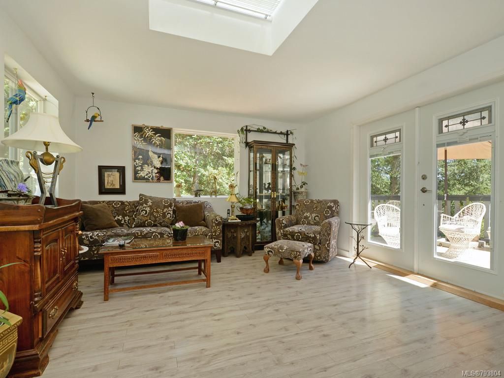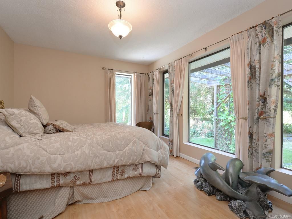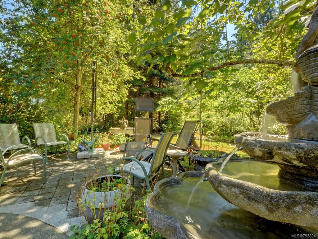 Beautifully maintained, tastefully updated home nestled on a 2 acre estate in desirable North Saanich. Floor to ceiling windows & multiple skylights fill this home w/ natural light & offer peaceful idyllic views of the enchanting gardens. The property offers unparalleled privacy - fully fenced w/ remote operated gate & camera system to control access for visitors & guests. Attention to detail is evident in the updates including eaves, new heat pump/furnace, Kitchen (Jenn-air appliances), bathrooms, flooring, TV Room addition, tile decking, fresh paint throughout. Main level living offers generous kitchen, formal dining, sunken living room w/ natural stone propane fireplace, three good-sized bedrooms including master with ensuite and deck access. Downstairs is versatile extra living space, workshop, bathroom with walk-in shower. Allow time in your visit to explore meandering pathways, pond w/ waterfalls, mature landscaping & creek running through the back of the property.