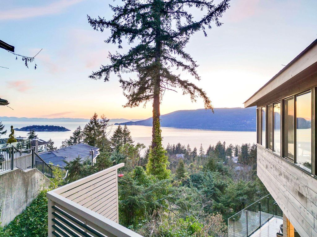 The Case Residence in Eagleridge is a remarkable example of modernist design in the mid last Century! This Ron Thom design is a diagonal & multi-dimensional 2 level restored to exacting standards. The Geometric House is inspired by Frank Lloyd Wright’s hexagon floor plans & compliments the natural lighting & surrounding landscape. Situated on 13,815 SF & offers approx 2,826 SF open plan, 3/4 bed incl primary with walk-in & ensuite, 4½ bath, living area w/adj office, priv den, custom kitchen & adj dining rm as well as a pavilion, perfect as a rec area or for guest accommodation. Wrap around decks w/jacuzzi capture extended vistas & the incredible views of Howe Sound. A West Coast Masterpiece & according to the District of WV is “one of the finest examples of Ron Thom’s creative abilities”.