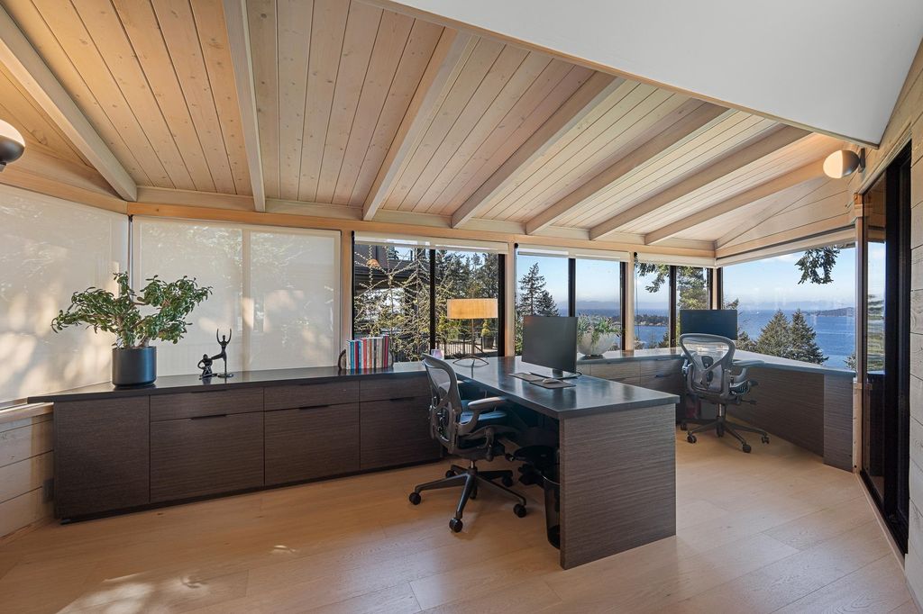 The Case Residence in Eagleridge is a rare example of mid-century modern architecture by Canadian architect Ron Thom. Meticulously restored, this 2-level home blends original design with modern living. Awarded Mid-Century Modern Home of the Year (2023) in West Vancouver, it features diagonal geometry inspired by Frank Lloyd Wright and abundant natural light. On a private 13,815 sqft lot, it offers ~2,826 sqft of open-concept living. With 3–4 bedrooms, including a primary suite with walk-in and ensuite, 4.5 bathrooms, living area, 2 offices, and a custom Redl kitchen. Detached pavilion ideal as gym or Airbnb. Wraparound decks with Howe Sound views and cedar soaker tub. Recognized by the District of West Vancouver as “one of the finest examples of Ron Thom’s creative abilities.