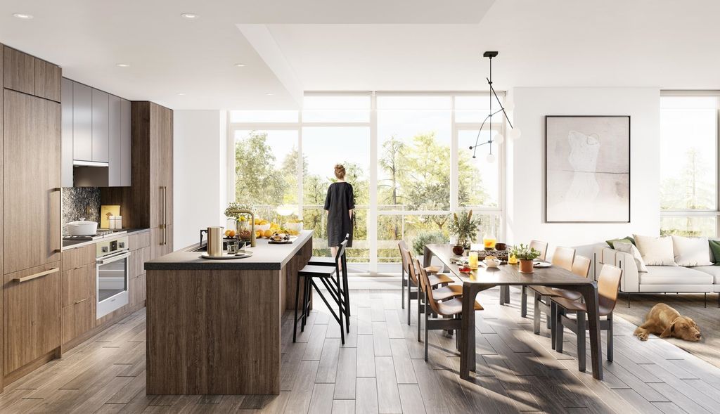 Parkside at Lynn by Mosaic. Set at the edge of Kirkstone Park and a quick walk to Lynn Valley Centre. All minutes away from a world-class trail network for hiking, running, riding or skiing in the iconic mountains of the North Shore. All homes include access to the exclusive Lynn Club with an indoor pool, fitness centre and great room. Our E home is part of our Explorer series, and is a three-bedroom, two-bathroom corner home at 1,312 square feet. All set on a North-West location with ample outdoor space, including a balcony. This home features a big, airy kitchen and plenty of storage, as well as a large kitchen island, perfect for entertaining. A walk-in closet in the main suite provides great storage.