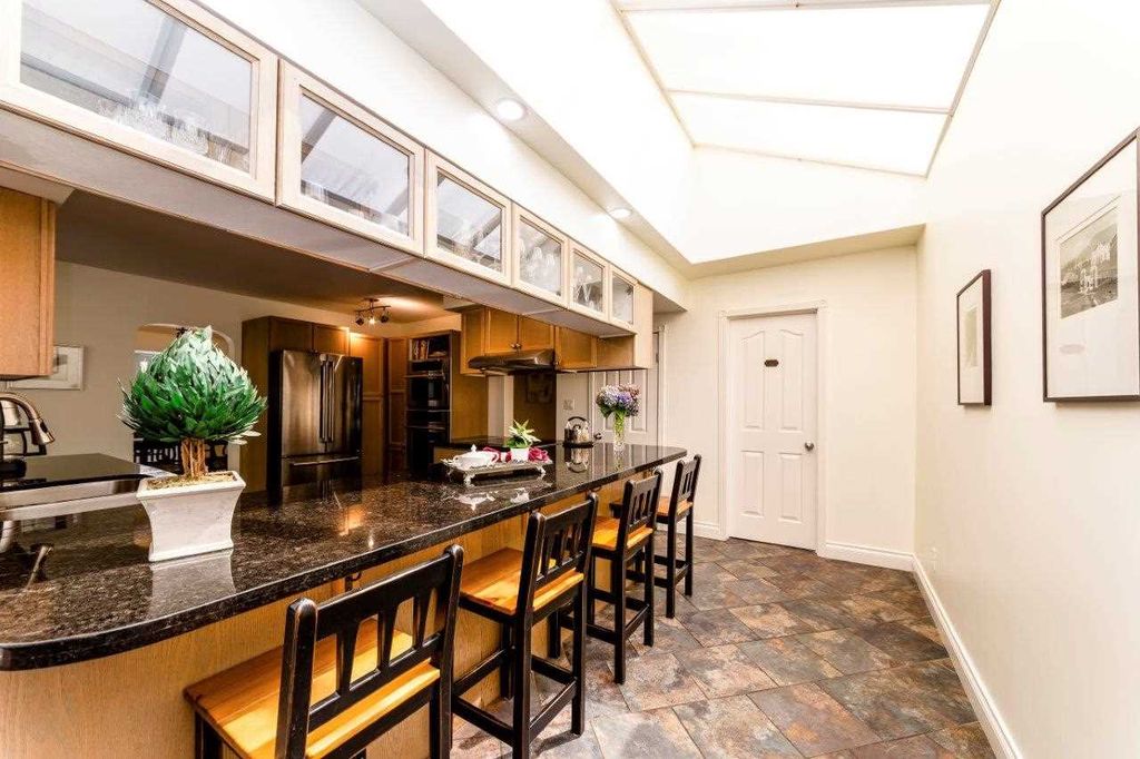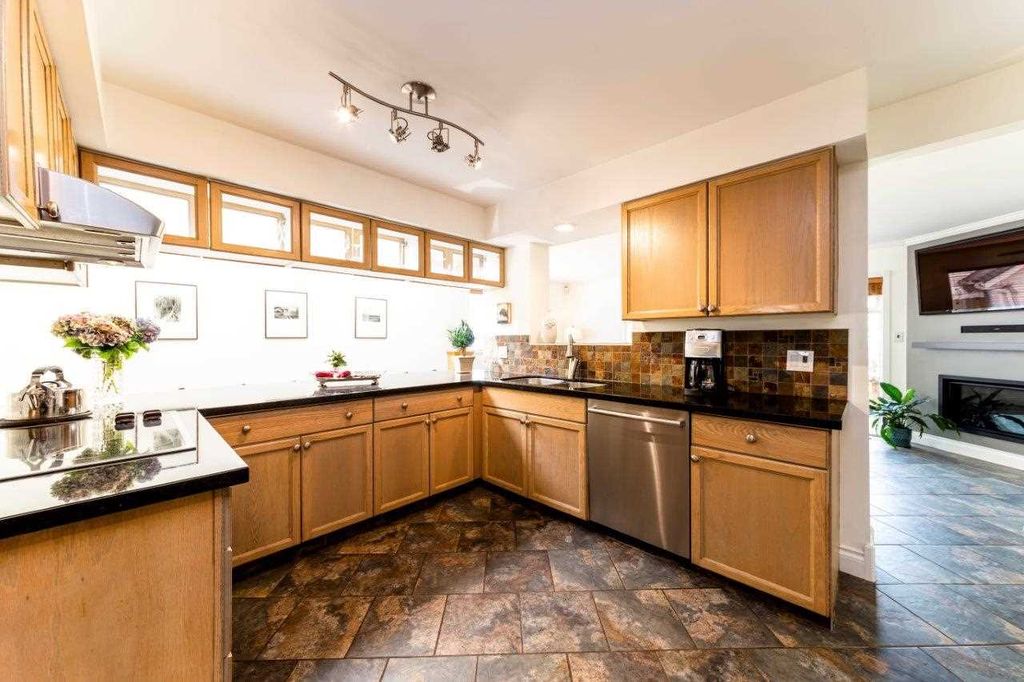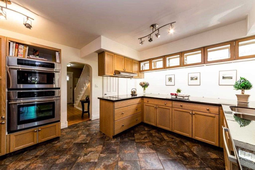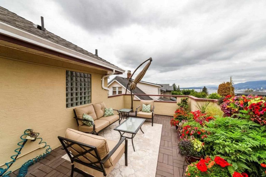 This immaculate Heights 5 bed 4 bath family home is the whole package-corner lot, views,up-dates, plenty of space & versatile suite options! Fully up-dated over the years, this home has large formal living room with oak inlaid hardwood floors, large kitchen with granite counter tops, stainless appliances, eating bar, adjoining family room w/gas fireplace, 3 bedrooms up, up-dated bathrooms, beautiful view decks & patios. Lower level has 2 bedroom suite plus additional studio suite. Manicured gardens abound, private fenced backyard, double garage plus RV parking. City, mountain & water views, natural greenbelt across from a wonderful park. Walk to schools, parks, shopping, transportation-20 mins to Downtown Vancouver!