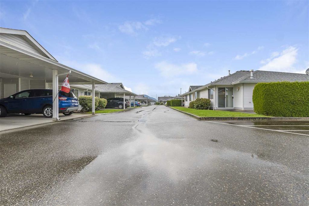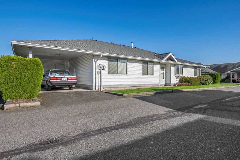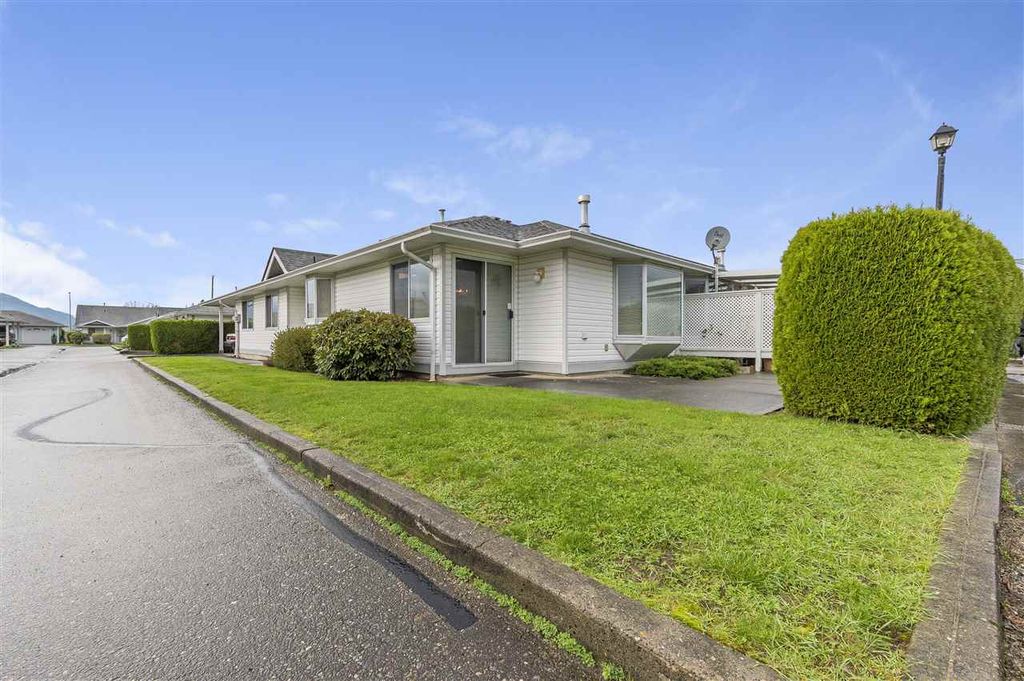 Ready to downsize? Here is a nice bright unit in a Very sought after 55+ complex. Fantastic Sardis location walking distance to may amenities. This Nice bright open plan has 2 bedrooms 2 full baths is located in a very quiet area of the complex, very clean and move in ready. Very reasonable fee includes, water, sewer, garbage and Taxes. Carport and room for another car behind, RV parking is also available. This is a great place to realize your retirement dreams!