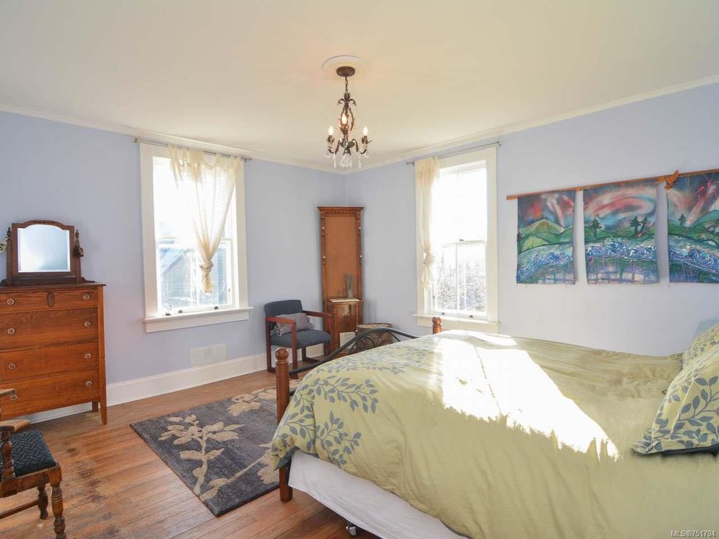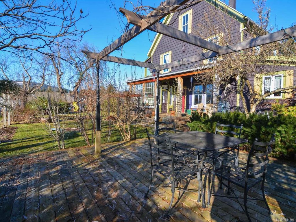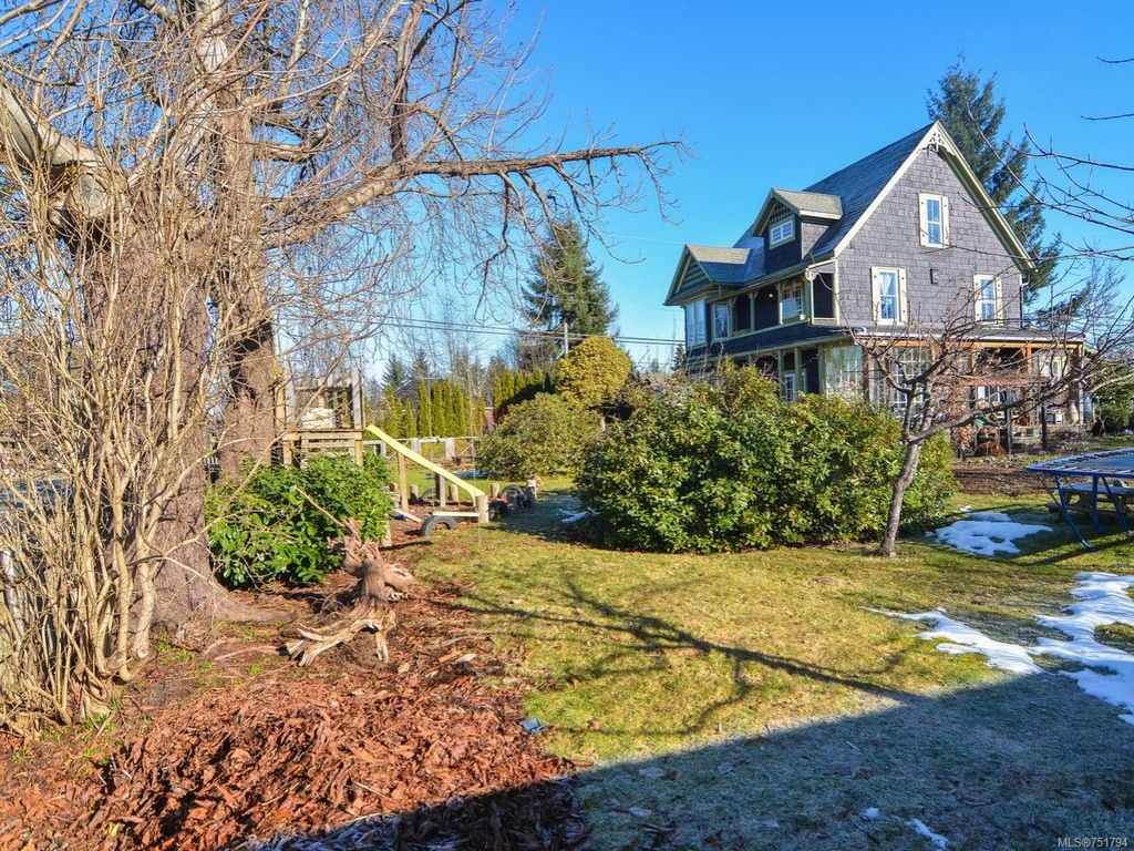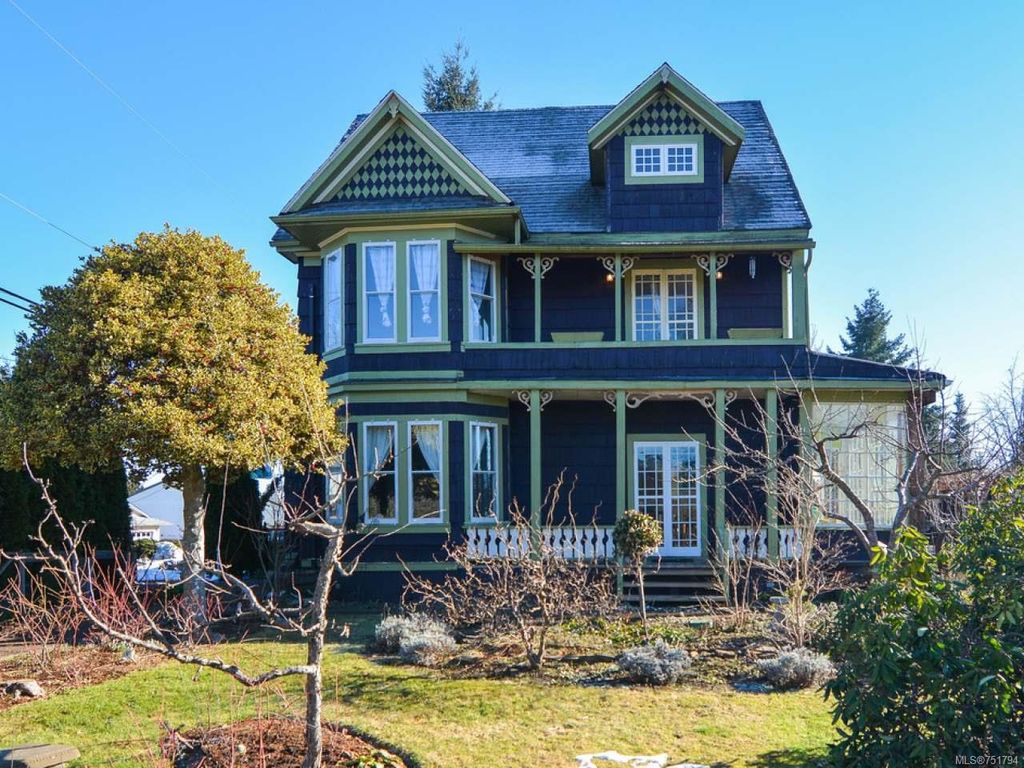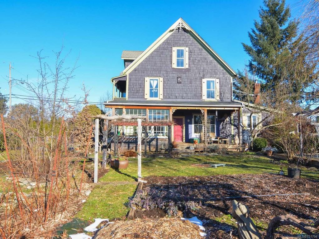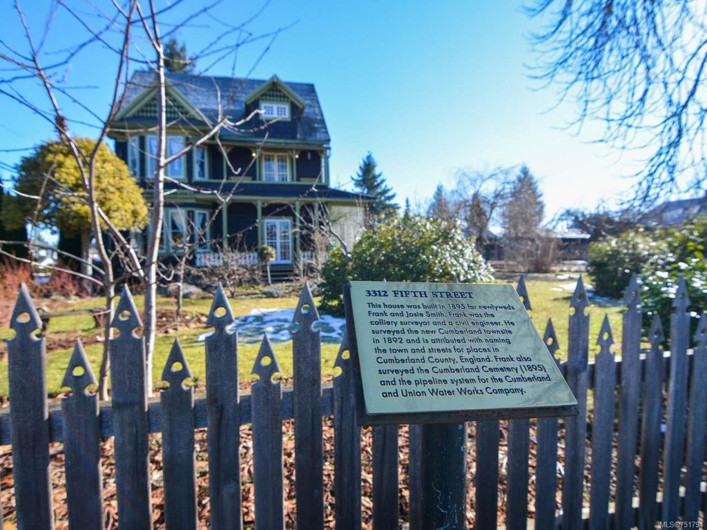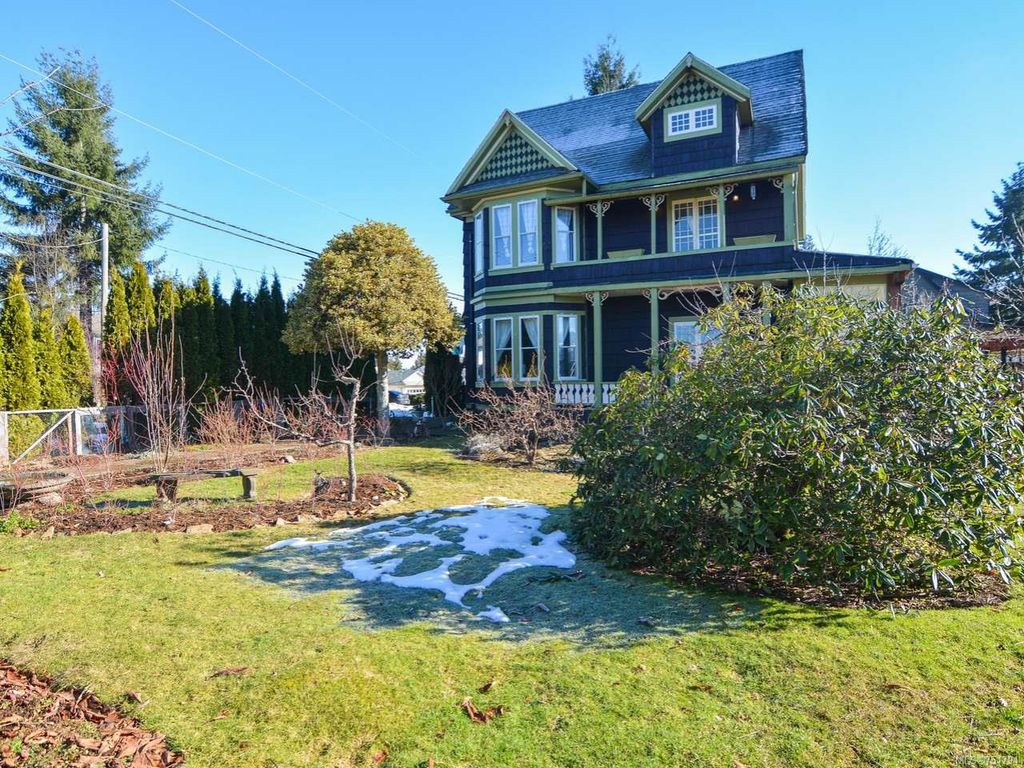 Rare opportunity to live in this iconic Cumberland dream home. Perfectly situated on 1/3 acre of southern exposure & incredible mountain views, this 1895 Queen Anne style home with 4 bdrm + den & office is just waiting for its new family & history to begin. Featuring stunning large country kitchen, complete w/granite counters, tiled backsplash, AGA gas range, cozy wood stove, room for large table & plenty of storage, adjoining dining & living rooms w/stunning 9ft Crawford ceilings, original hardwoods & mantle. Main bath has been recently renovated w/tiled shower. Upstairs you will find 3 generous bedrooms w/plenty of light & a full bath w/soaker tub & the lovely & bright master on the 3rd floor w/large den/studio/library. All new electrical, new wood windows, additional insulation, new gas furnace & gas hot water on demand. Mature gardens,raised vegetable beds,3 grape arbours, hazelnut, chestnut, apple, cherry & fig trees plus blueberries, raspberries, blackberries & lavender too.