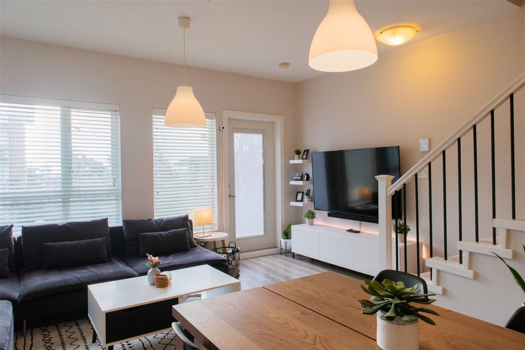 RARELY AVAILABLE, Feel at home in this beautiful 2 Bed + Den + 2 Bath Townhouse in New West! At 3 years young, PAY NO GST. Bright, sparkling OPEN CONECPT layout! Features include sleek Quartz countertops, under-mount LED lighting, twotone cabinets, Bloomberg cooktop/built-in oven & integrated fridge/freezer + GE dishwasher. Lots of storage space. 2 BALCONIES! - South Facing. Located in the popular uptown, LOTUS, a unique 6 story development, includes a shared clubhouse + secured parking + bike locker + storage locker. Short distance to Douglas College, Skytrain, parks, schools, library, grocery & retail shopping. PRIME location in the building located on the GROUND FLOOR in proximity to main elevators and building entrance. Book a private showing today!