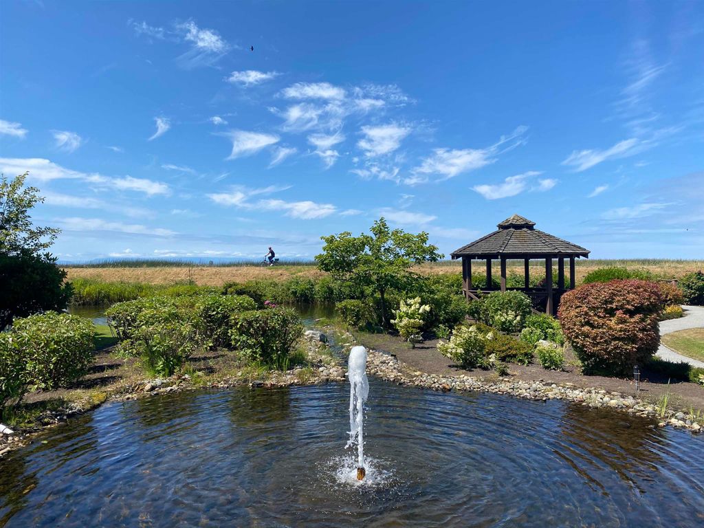 IMMEDIATE POSSESSION POSSIBLE -Ocean view home brimming with lifestyle bonuses. Award winning Detached Show-Home. Recent complete renovation with high-end finishing & appliances throughout. No expenses spared. Two covered upper decks, one facing the ocean with endless sunsets. Lower walk-out level has a private patio connected to a grassy area with a 2nd pond/fountain. Steps to the miles of dyke to bike & walk, leading to Steveston Village in one direction and golf course in the other. Double storage lined garage, plus 2 car parking on driveway. Complex offers clubhouse, pergolas, water features, picnic/playground area & walking paths. Walk to shopping, schools & amenities. This is totally unique to the market and must be personally viewed to be fully appreciated.