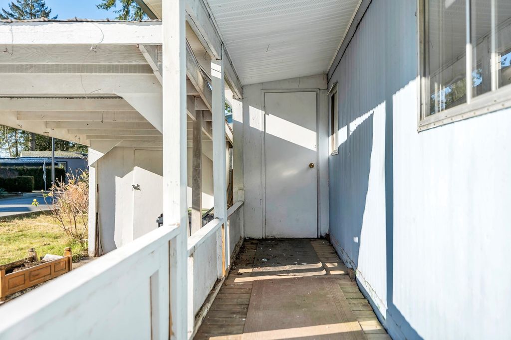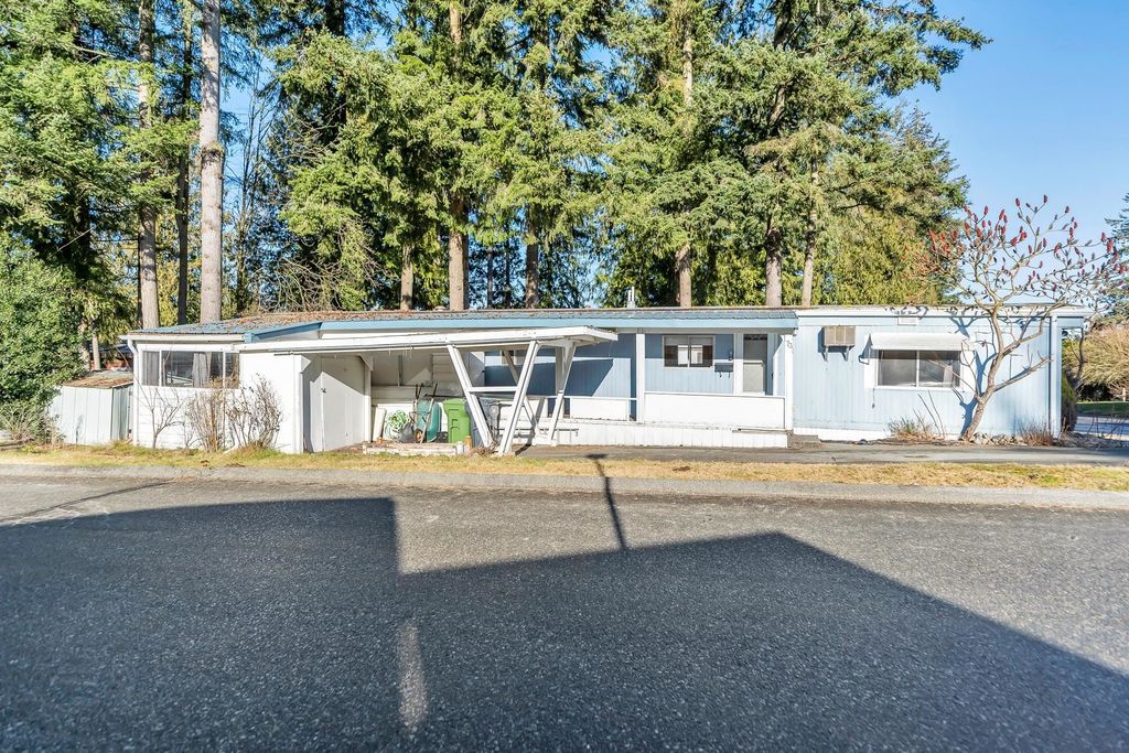 Welcome to Langley Grove Estates by Parkbridge Estates which is a quiet beautiful resort style community sitting on 45 acres of park like setting featuring a recreation center, exercise center, sauna and indoor hot tub, horse shoes and disc golf. This home features 2 bedrooms plus den, 1 bath, plenty of storage, a large shed, laundry, and a double tandem carport on a large corner lot. Updates include newer furnace, new hot water tank, new flooring, baseboards, light fixtures and paint. This property is move-in ready and waiting for you to bring your decorating ideas to make it your own. You will love the welcoming atmosphere, great recreation facilities, NO AGE RESTRICTIONS, and up to two small pets allowed with approval. Opportunity is knocking! Call today before it's too late!