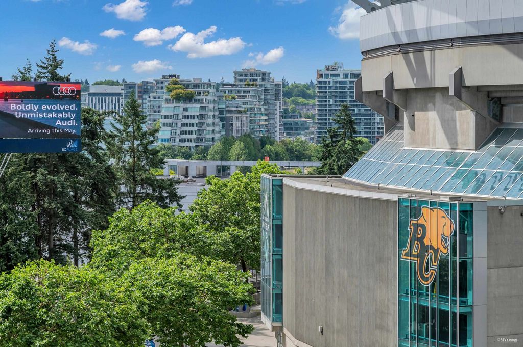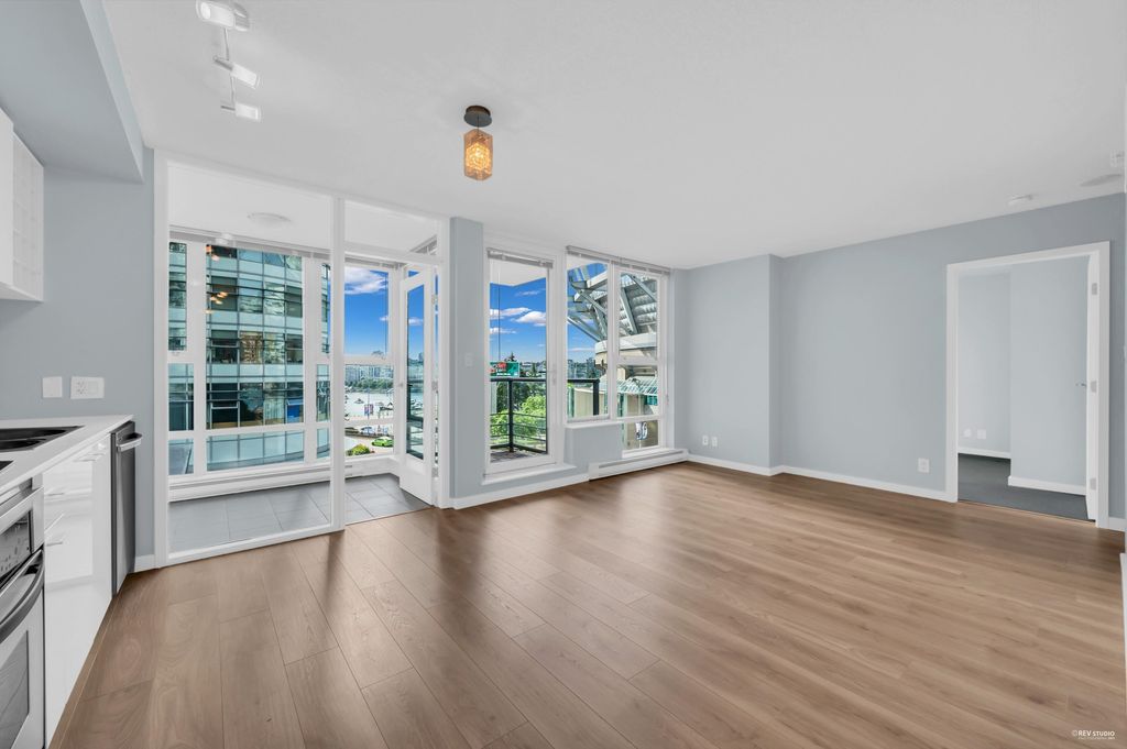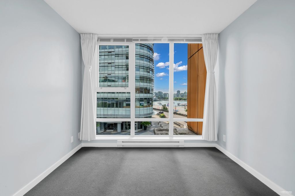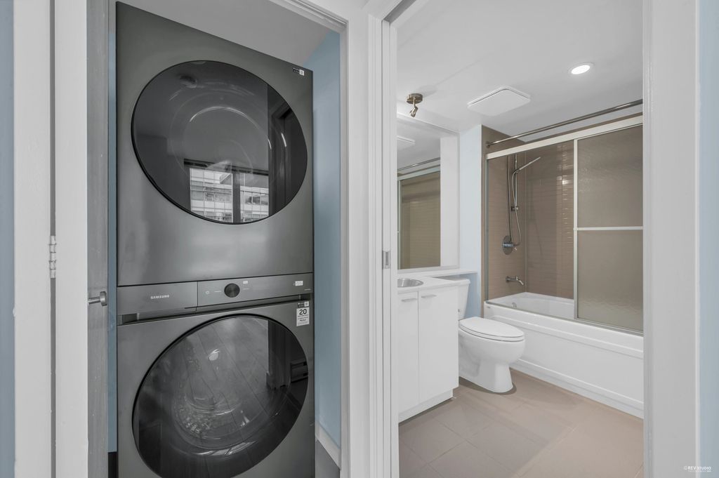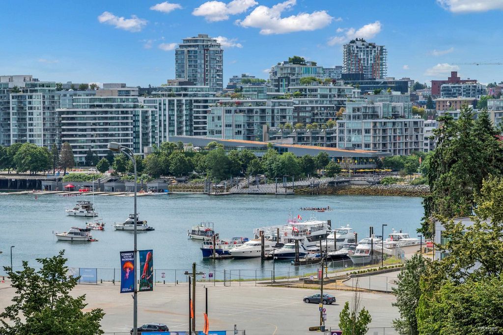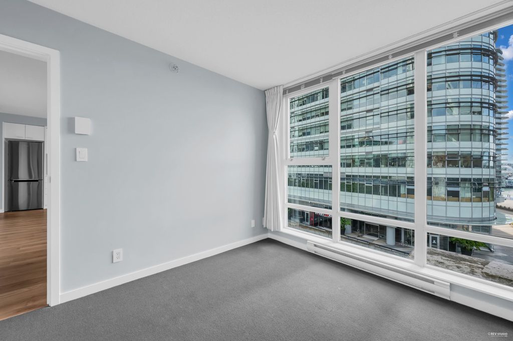 Southeast-facing one-bedroom unit with beautiful water views, bright den/solarium, and in-suite storage. Efficient layout with no wasted space, spacious living/dining, custom closet, and upgraded German flooring. Recent updates include 2025 fridge, new dishwasher, Samsung washer/dryer with 4-year warranty, and digital thermostat. Strata-approved A/C installation ($8,000 value). Resort-style amenities: 80’ indoor pool, sauna, steam room, hot tub, gym, bike room, media room, and lounge with kitchen. Steps to SkyTrain, BC Place, Rogers Arena, Costco & more. Includes 1 parking and large locker. Pets and rentals allowed. Quick Possession, Welcome to Open House: Aug.16 & 17 (Sat & Sun) 2–4PM.