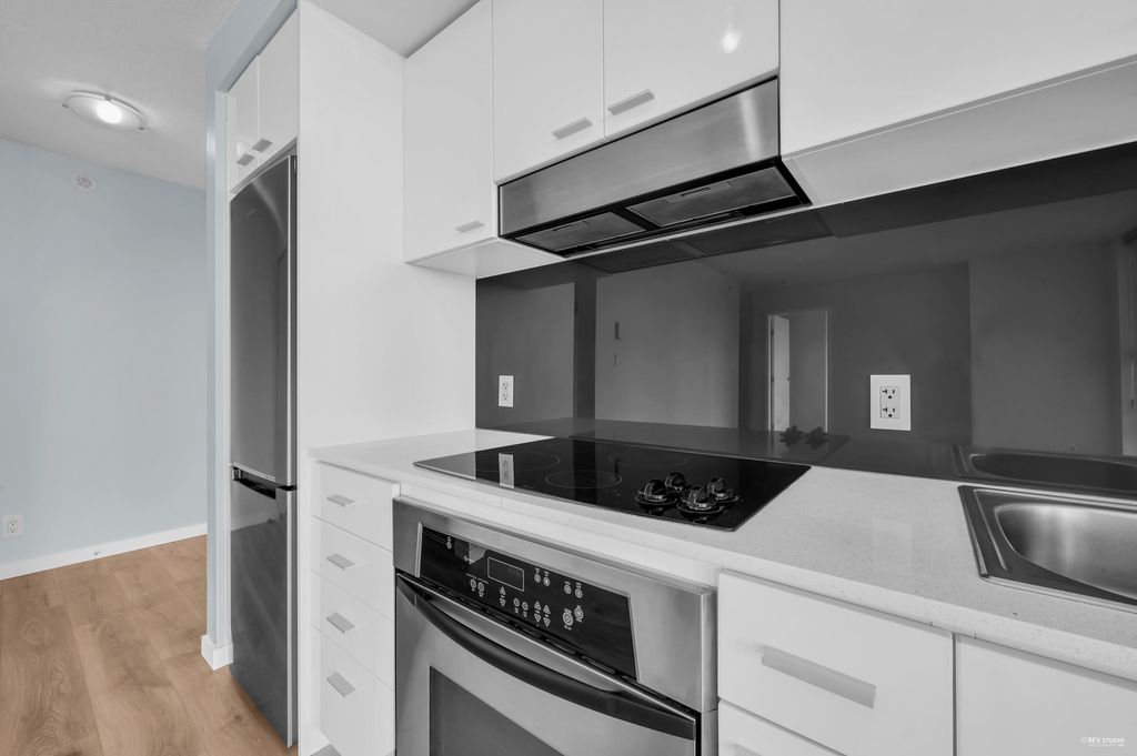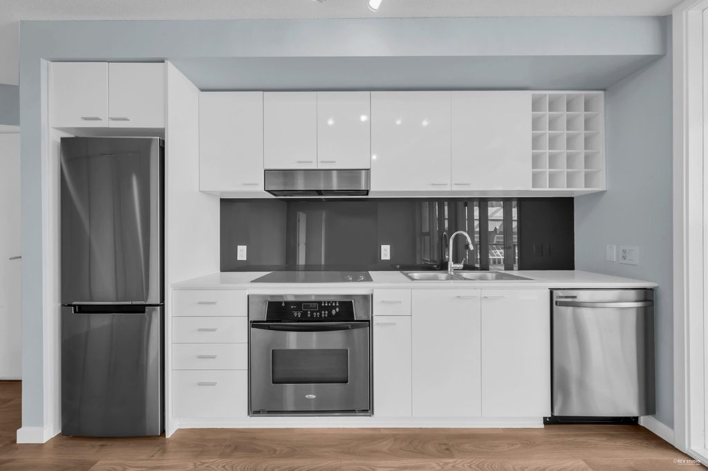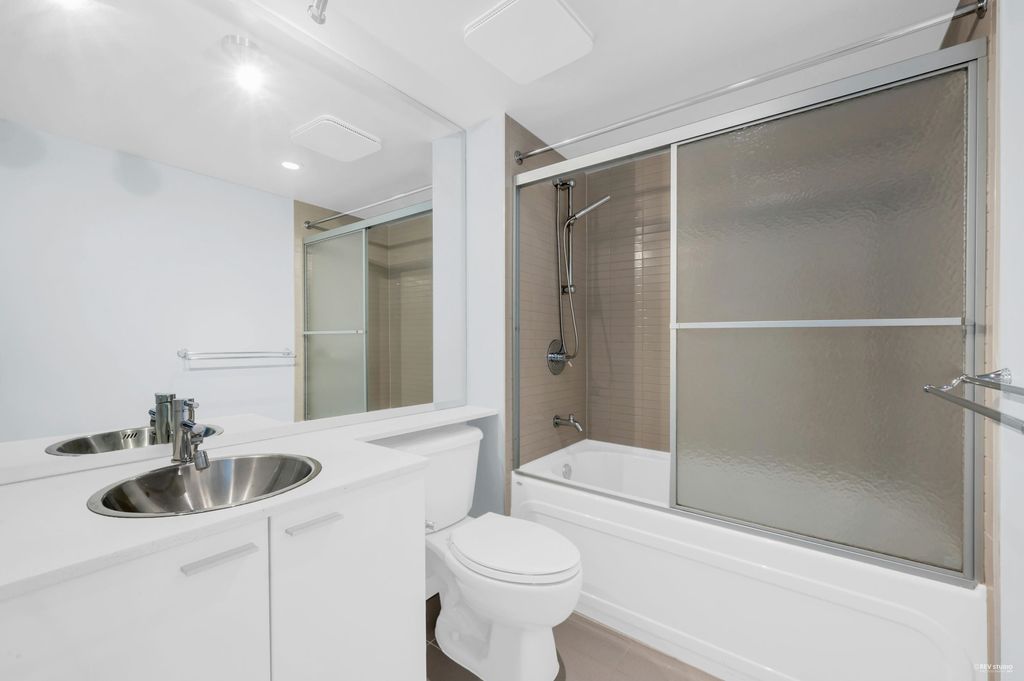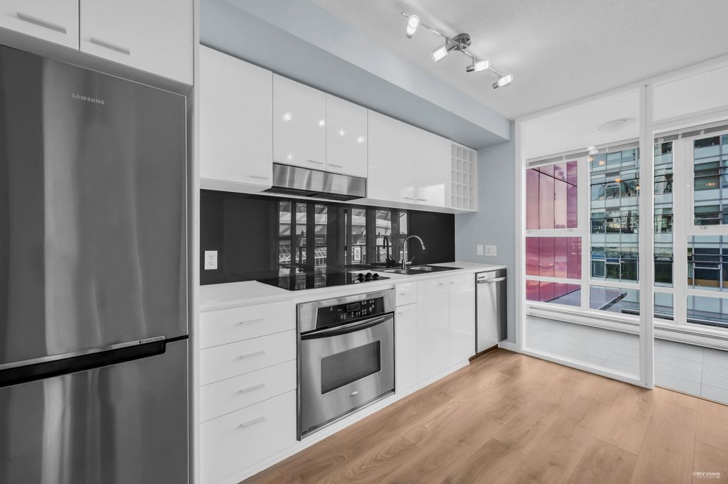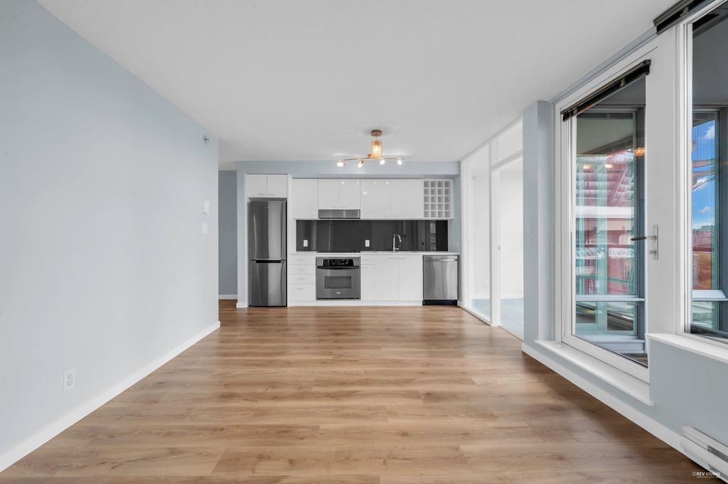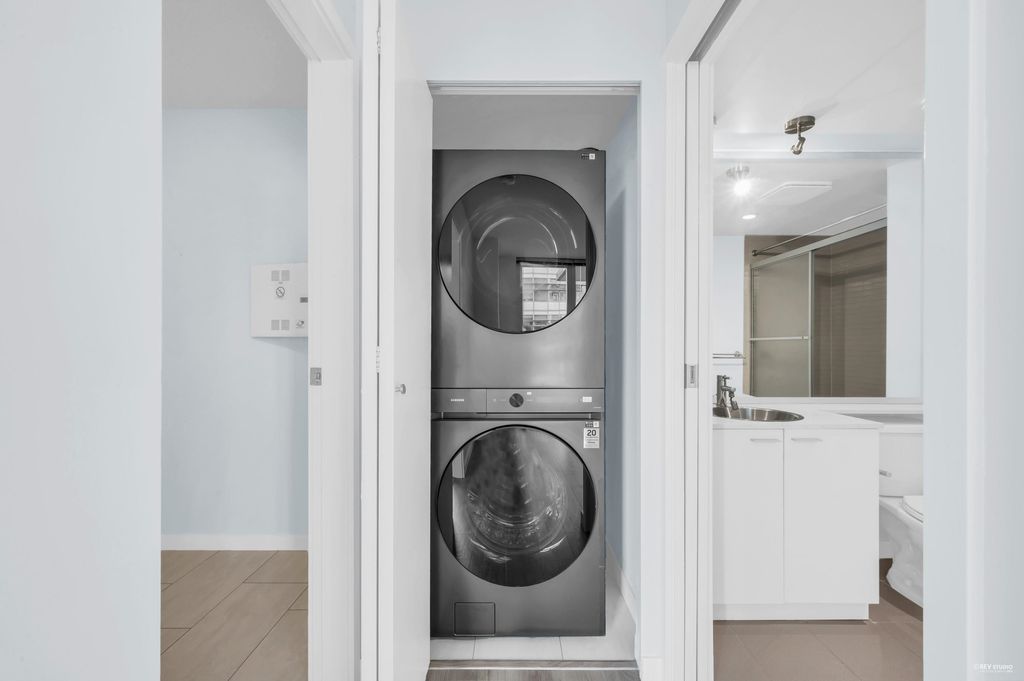 Southeast-facing one-bedroom unit with beautiful water views, bright den/solarium, and in-suite storage. Efficient layout with no wasted space, spacious living/dining, custom closet, and upgraded German flooring. Recent updates include 2025 fridge, new dishwasher, Samsung washer/dryer with 4-year warranty, and digital thermostat. Strata-approved A/C installation ($8,000 value). Resort-style amenities: 80’ indoor pool, sauna, steam room, hot tub, gym, bike room, media room, and lounge with kitchen. Steps to SkyTrain, BC Place, Rogers Arena, Costco & more. Includes 1 parking and large locker. Pets and rentals allowed. Quick Possession, Welcome to Open House: Aug.16 & 17 (Sat & Sun) 2–4PM.