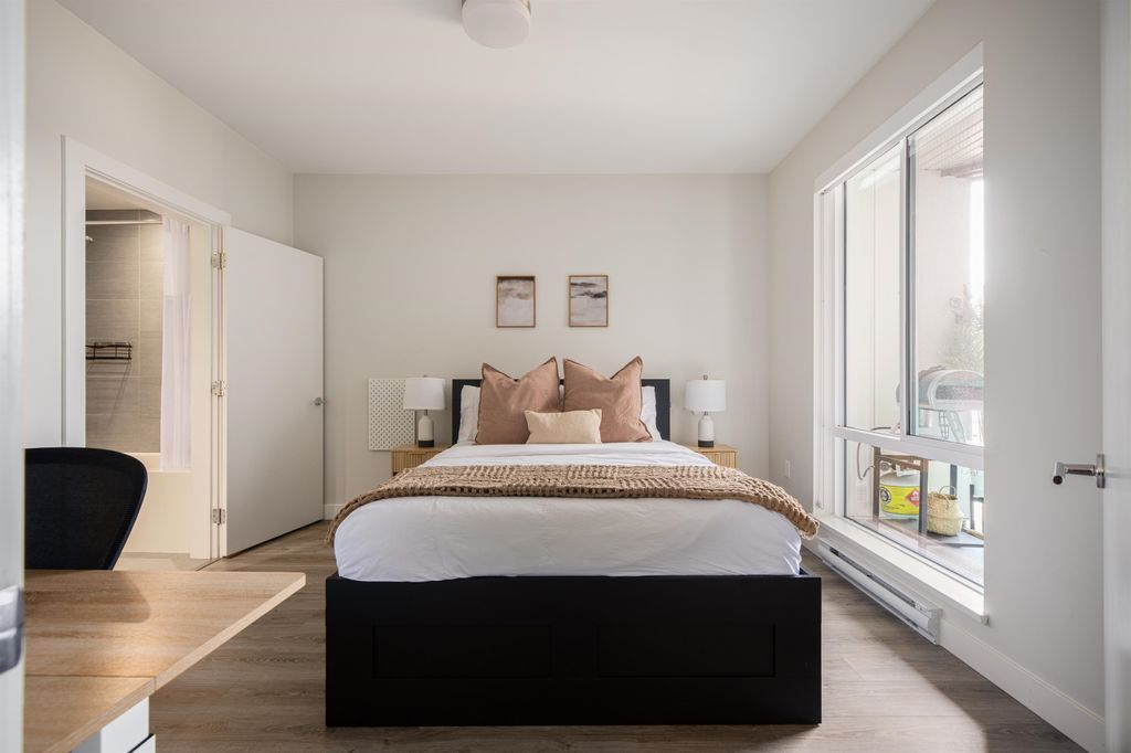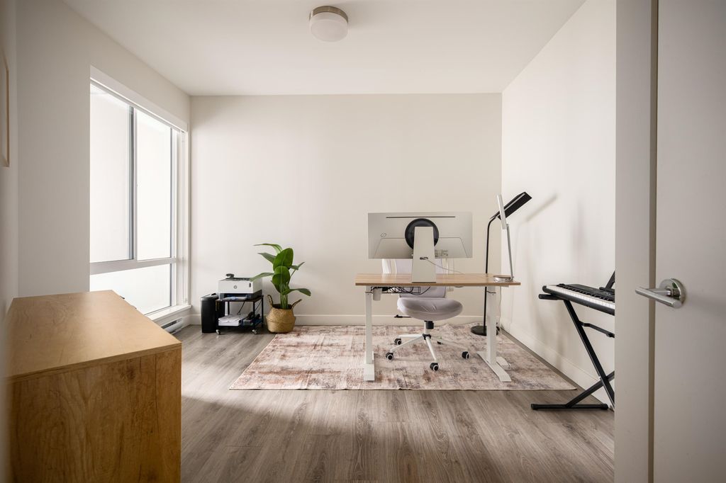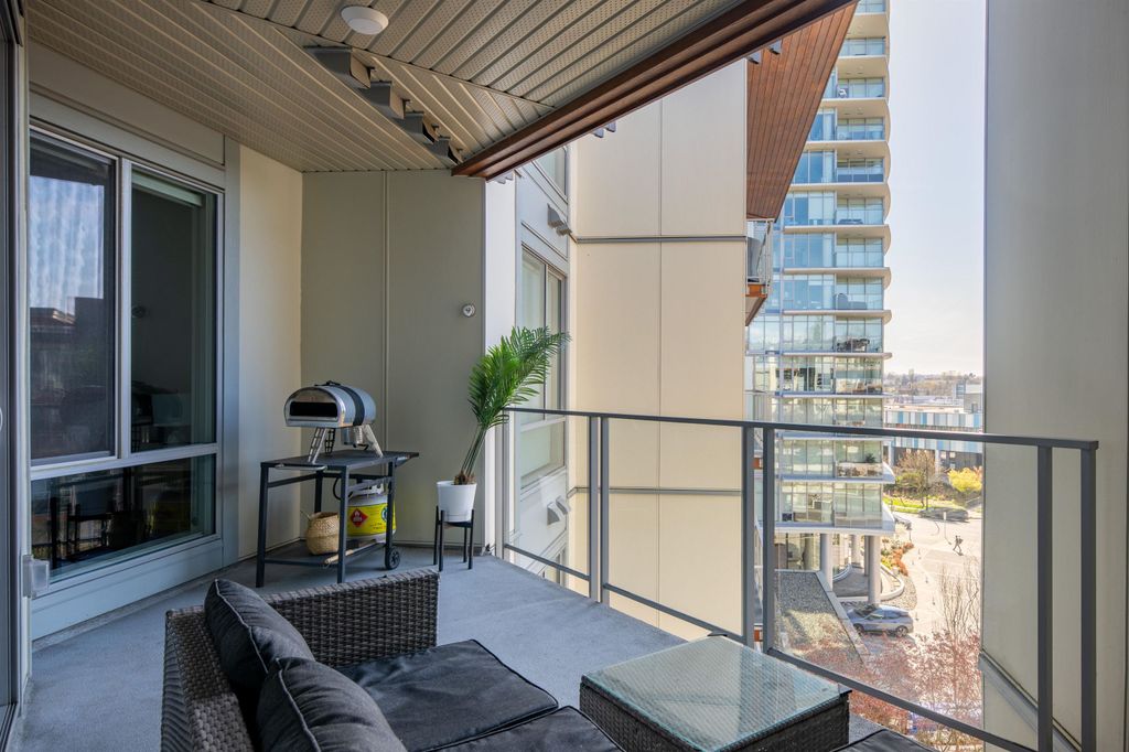Experience incredible value at Escala’s Terra 1 by Ledingham McAllister. Priced for a quick sale, this 2 bed+ flex features an open-concept layout w/ a spacious living area, dedicated dining space, Caesarstone counters, & overheight ceilings that flows to a huge covered balcony overlooking a quiet courtyard. The primary boasts a walk-in closet and spa-like ensuite, with 2021 laminate flooring updates in both bedrooms. Enjoy world-class amenities: concierge, pool, gym, yoga studio, steam/sauna, guest suites and more -all with low fees. Includes an oversized parking stall and storage. Steps to Gilmore Skytrain, Save-On-Foods, & Willingdon Heights Park. A perfect blend of luxury and convenience! Check out our virtual tour in link! Open house Sun April 26 @ 3-5PM, private appts welcomed!