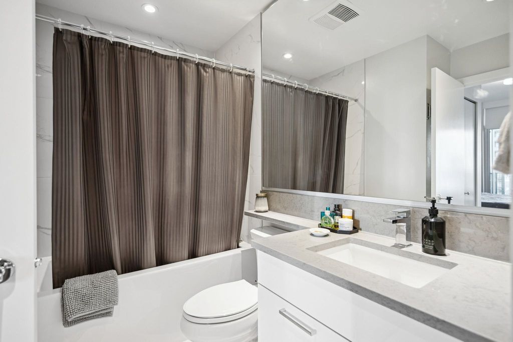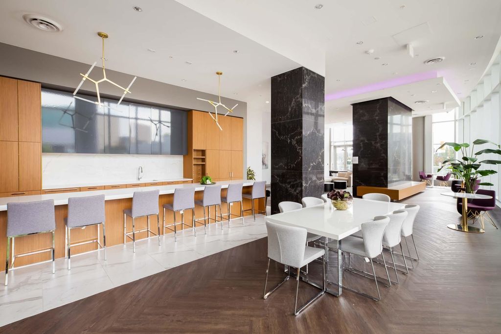 Escala - the height of luxury in Burnaby. This like-new, large, quiet & private 1-bed + den home has everything you want & need. A chef's kitchen equipped w/ S/S Kitchen-Aid natural gas appliance package & quartz counters. The primary suite easily fits a king-sized bed, has a large functional walk-in-closet & a spa-like ensuite w/ a deep soaker tub. Year round comfort w/ AC. Outside, you'll find additional living space w/ your fully covered balcony oasis. Escala comes w/ hotel-like 5-star amenities: concierge, swimming pool, sauna, hottub, fitness facility, yoga studio, movie theatre, guest suites & an incredible social lounge. UNBEATABLE location: Gilmore SkyTrain, revitalized Brentwood Mall, restaurants, cafes, shopping & all the best Burnaby has to offer! One parking & storage locker!