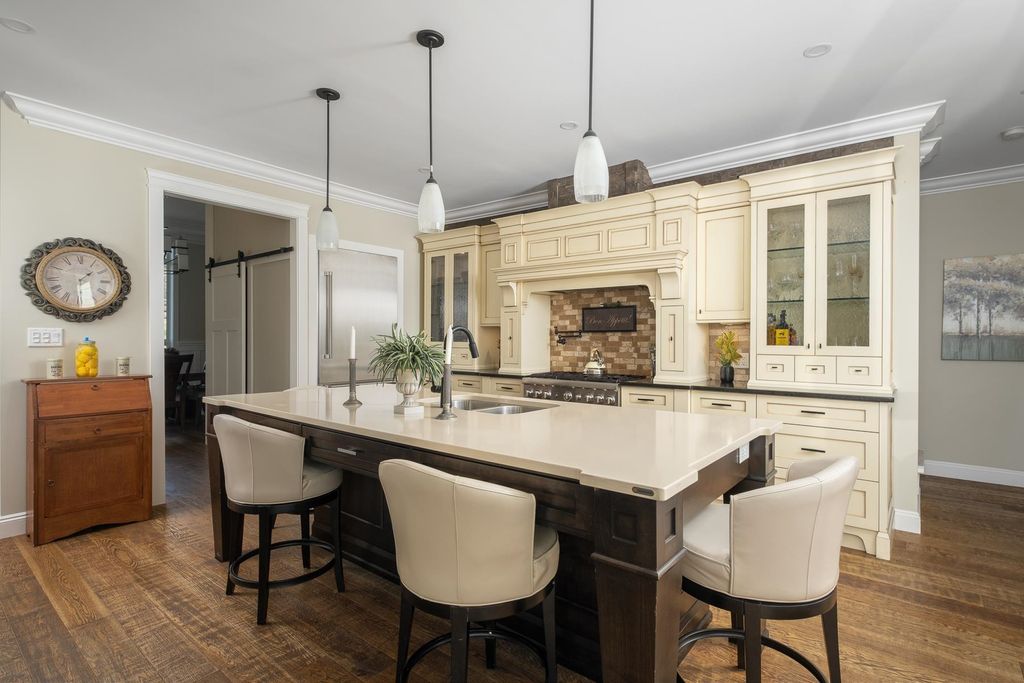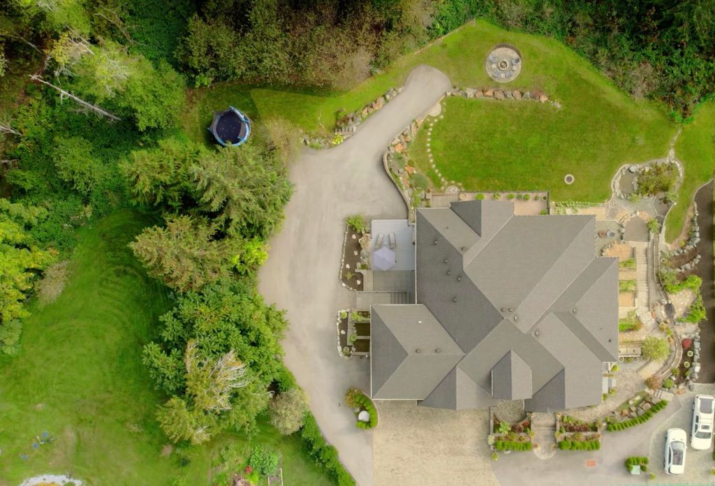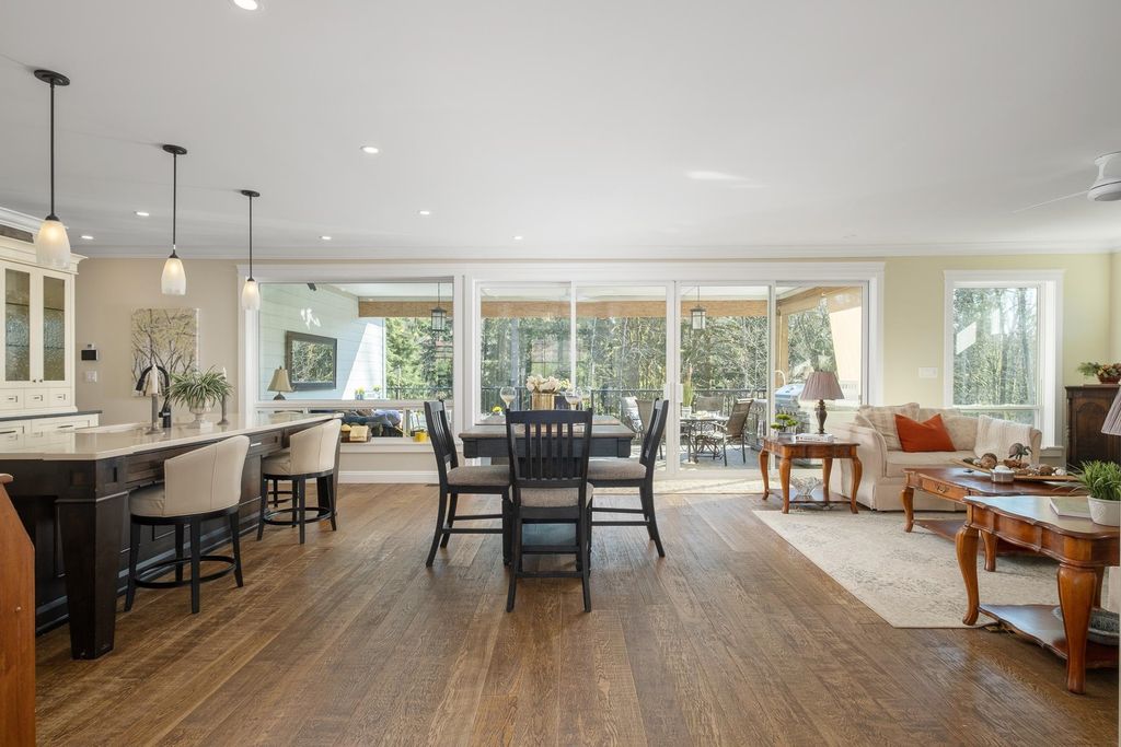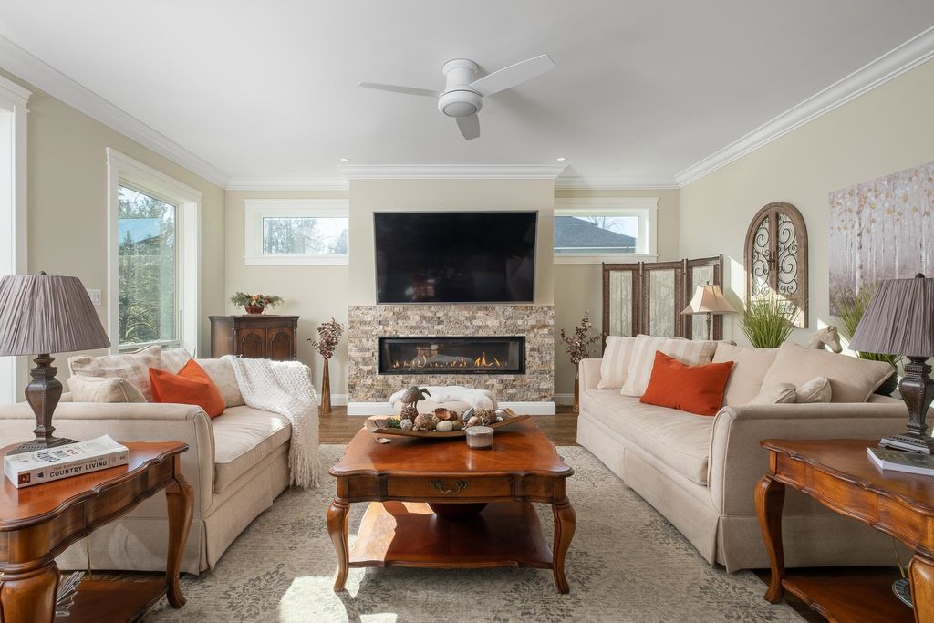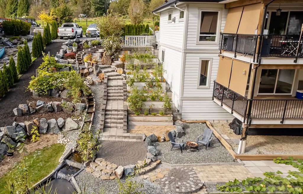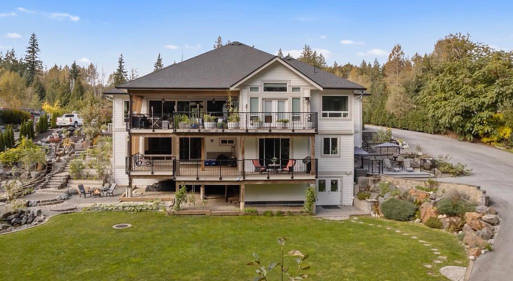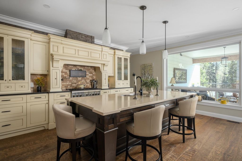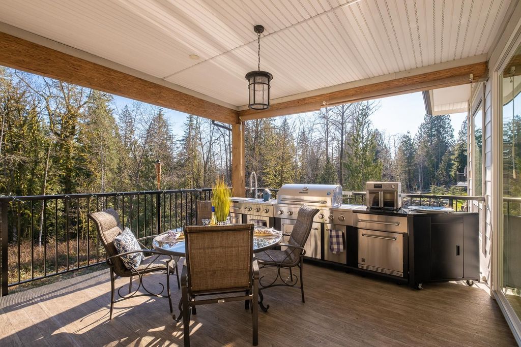 PRIVATE. CUSTOM. MULTI-GEN. Glacier Estates delivers a rancher with walkout basement on a manicured 1-acre lot, built for families who want space, privacy, and seamless living. 4 bed, 5 bath, 2 kitchens, 4,946 sqft + 918 sqft 3-bay garage. A chef’s kitchen with commercial appliances and butler’s pantry opens to a 16x14 covered deck with a full outdoor kitchen perfect for year-round entertaining. Primary on the main with spa ensuite and massive W.I.C. The property has been beautifully finished with a stunning water-feature stream, irrigated garden beds, and a dedicated side driveway leading to the bright suite with private entrance, laundry, and deck. Ideal for extended family or business. Ample parking for RVs and vehicles. Gated, backing greenbelt, trail to lake and quick connections.