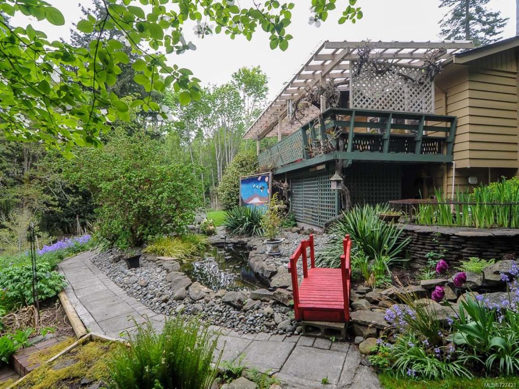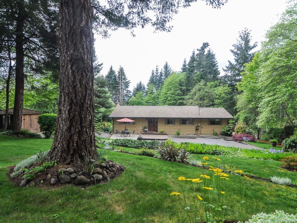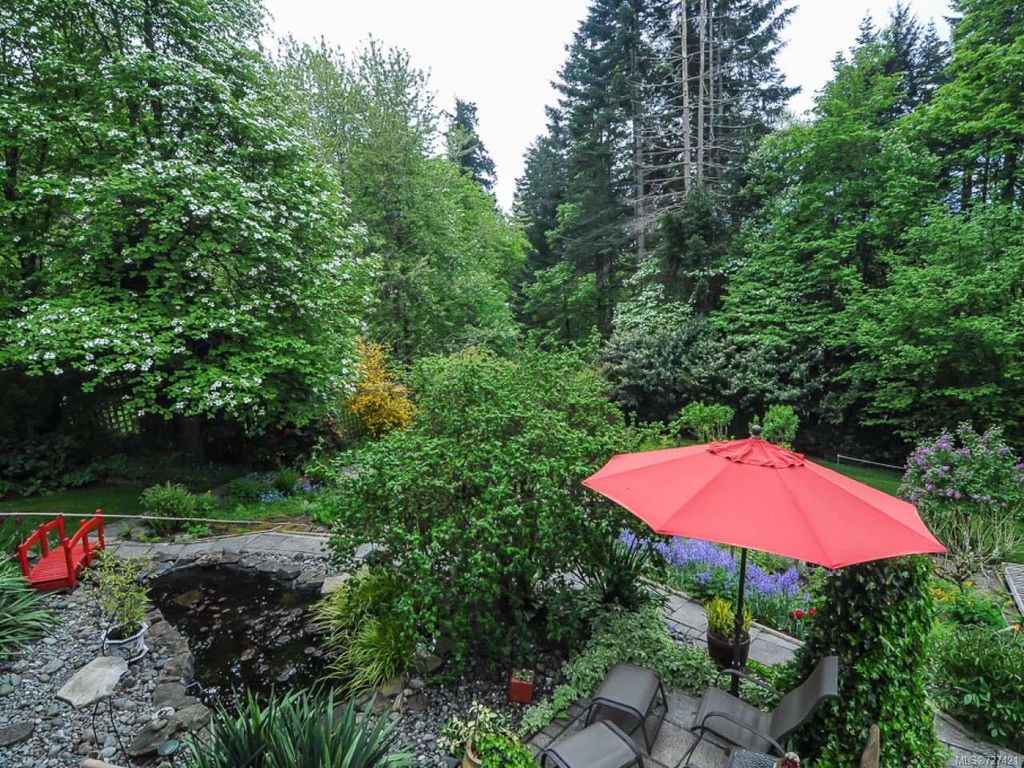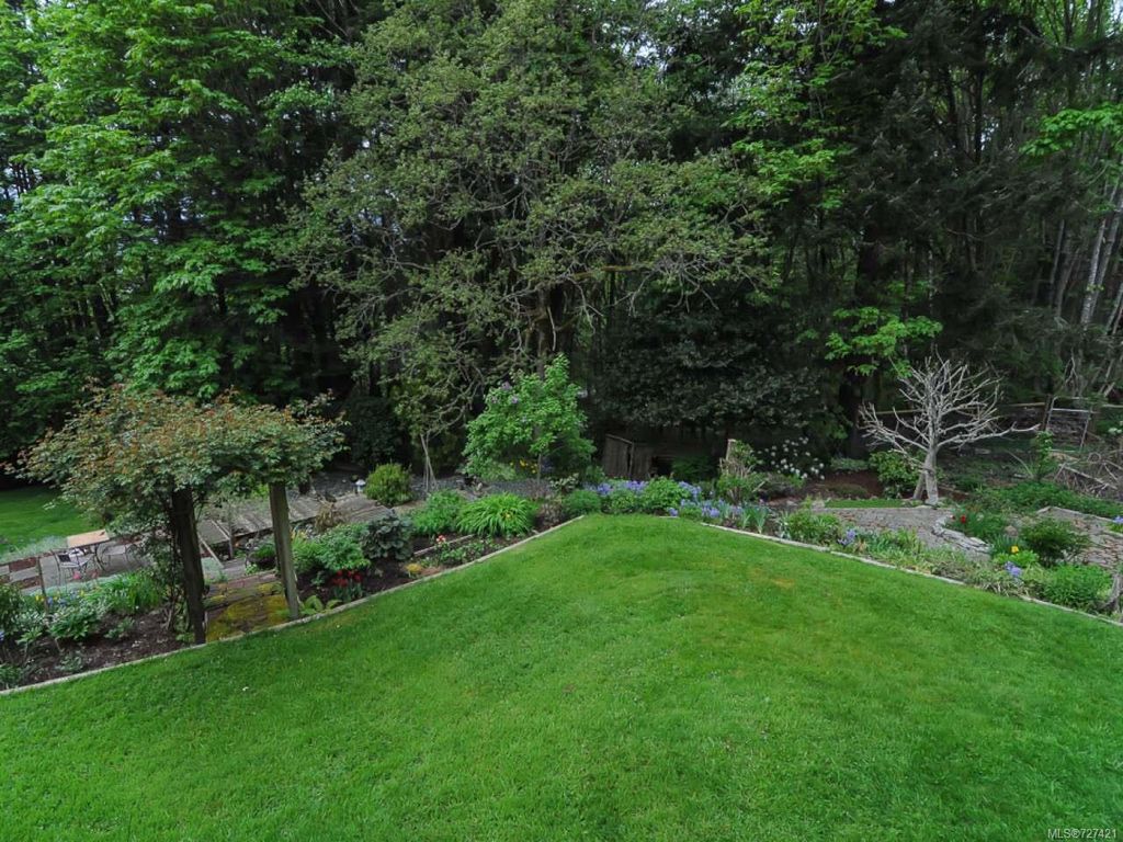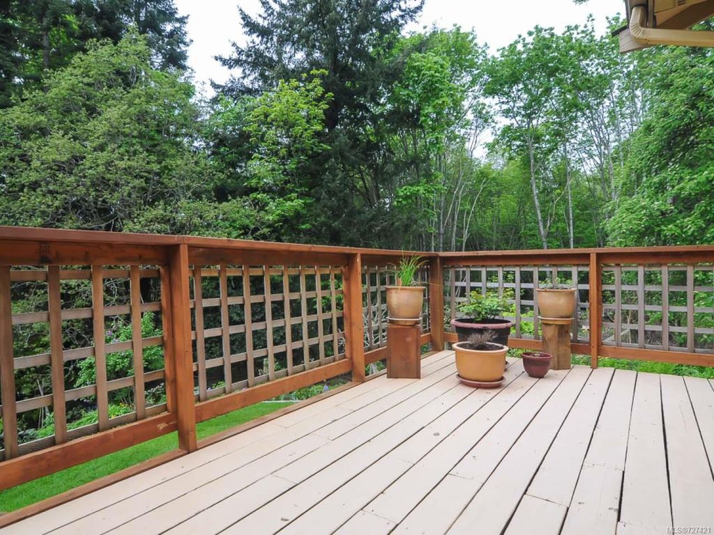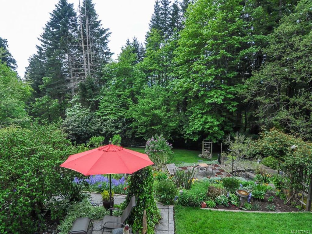 A gorgeous property in the Town of Comox. Private .83 acre lot with wooded area plus water and mountain views depending on the time of the year. A very classy upgraded home with decks and patios galore. It is definitely a home to view. Very nice gardens with such a great feeling. Large living room with fireplace and bookshelves on each side. A large opening to the kitchen/dining area gives the feeling of open concept living. Partially covered spacious deck over looks the backyard with seasonal views.