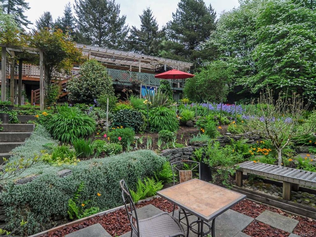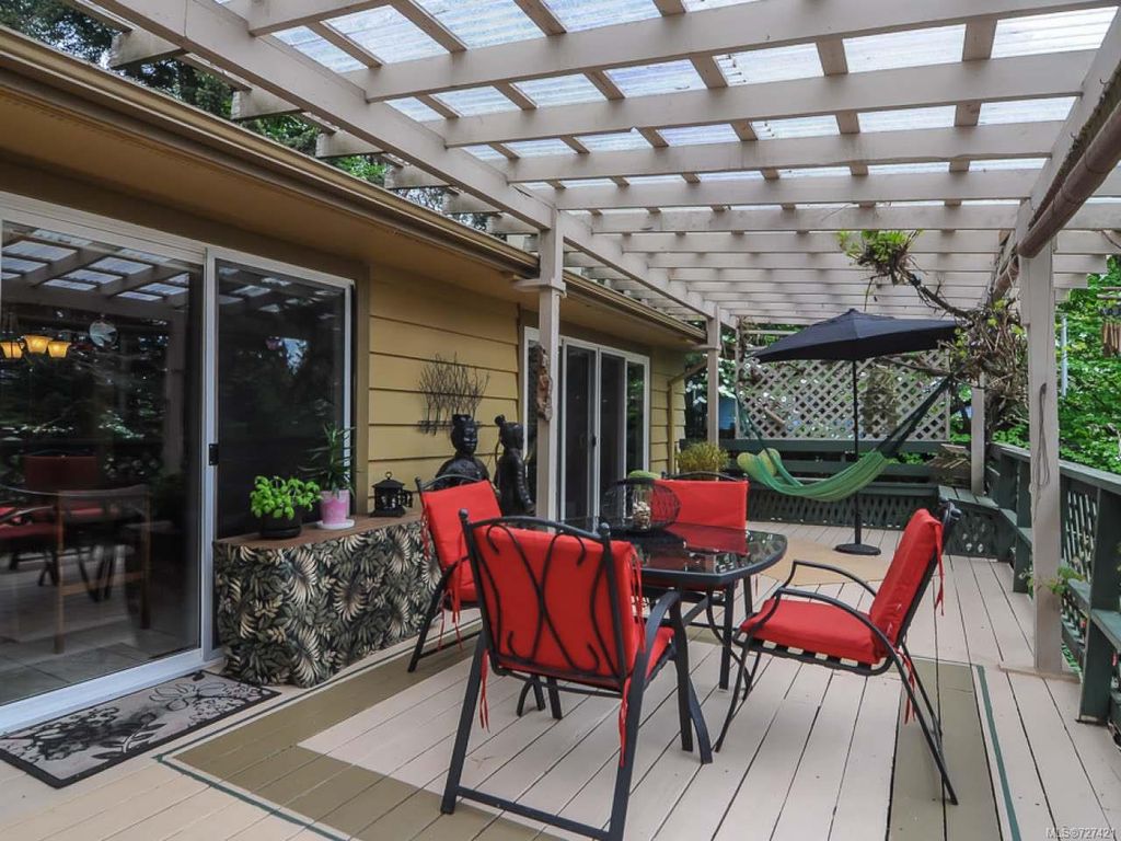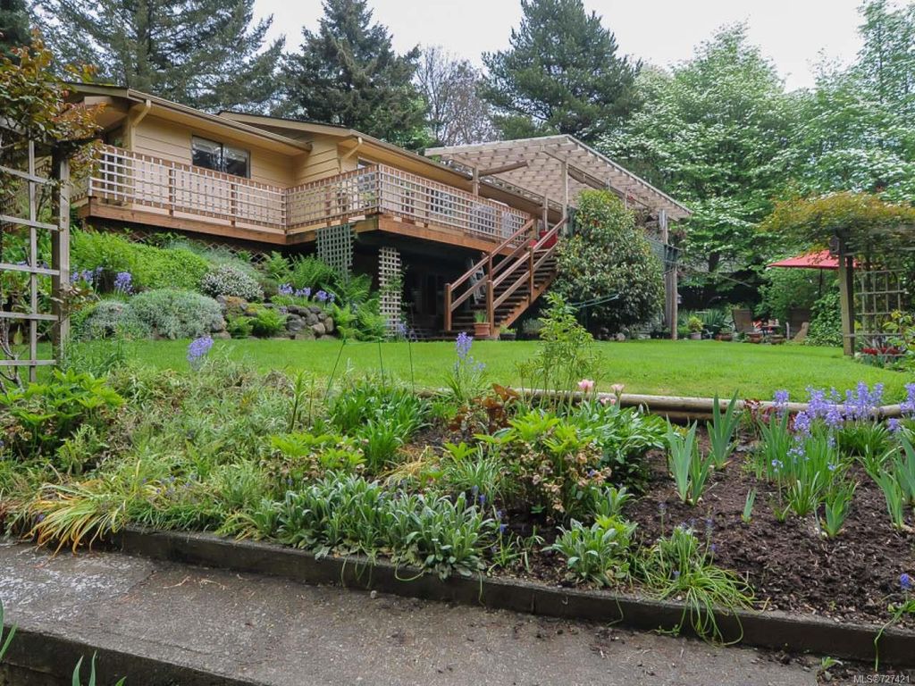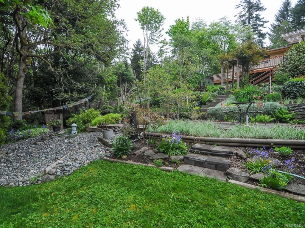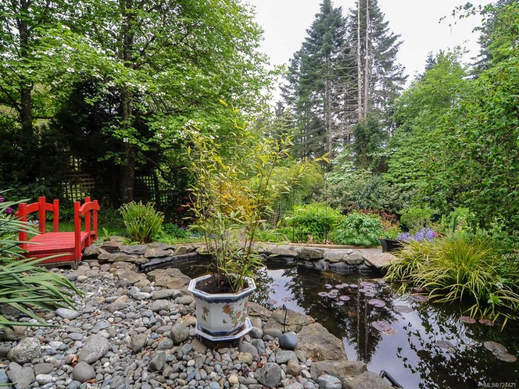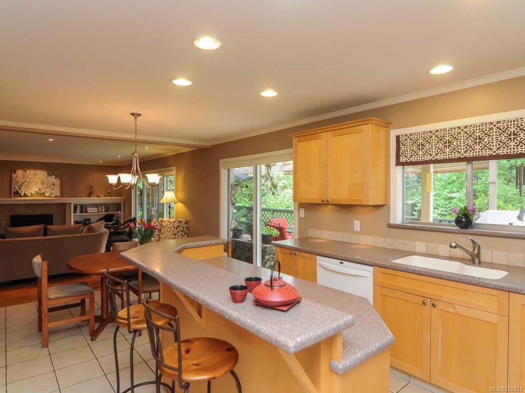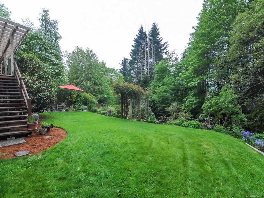 A gorgeous property in the Town of Comox. Private .83 acre lot with wooded area plus water and mountain views depending on the time of the year. A very classy upgraded home with decks and patios galore. It is definitely a home to view. Very nice gardens with such a great feeling. Large living room with fireplace and bookshelves on each side. A large opening to the kitchen/dining area gives the feeling of open concept living. Partially covered spacious deck over looks the backyard with seasonal views.